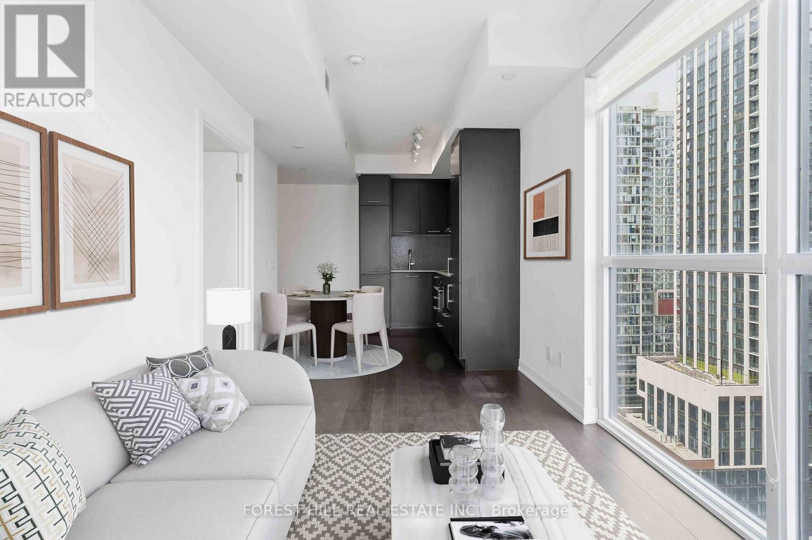 Welcome to your front row seat to King West Living! This stunning 1 bedroom "CORNER UNIT" is wrapped in floor to ceiling windows pouring in natural light all day with incredible unobstructed views! Perched on a high floor, it's the kind of unit that feels right the moment you walk in! The layout is smart, clean & actually usable. With sleek built in appliances & modern finishes throughout. Meticulously kept, it shows like new & is perfect whether you're unwinding at home or hosting friends with a view that does all the talking. Step outside and you're in the heart of it all! Toronto's Entertainment District surrounded by top restaurants, nightlife, the Fi-Di, PATH, Rogers Centre, TTC/Subway/Streetcar. TRULY THE BEST LOCATION with a perfect walk score. (id:50787)