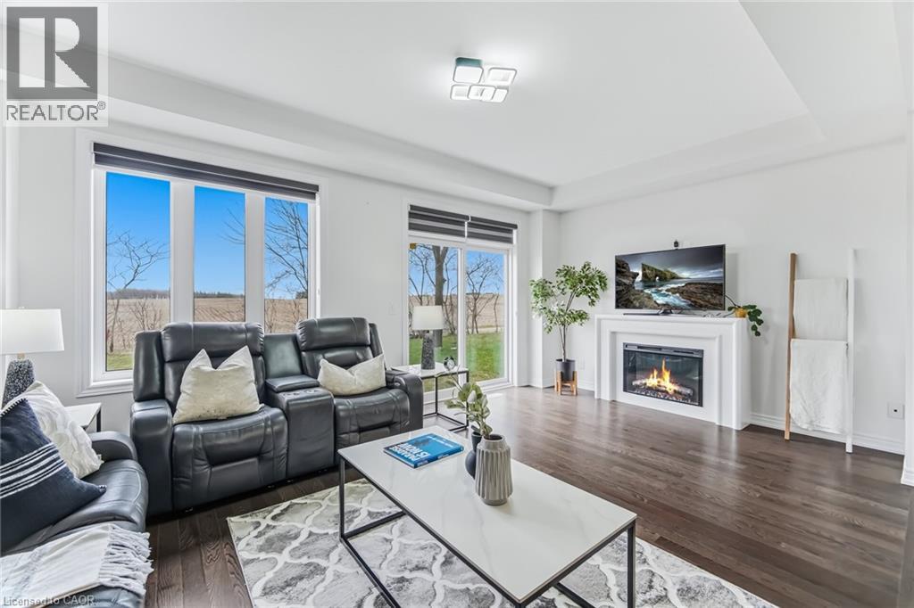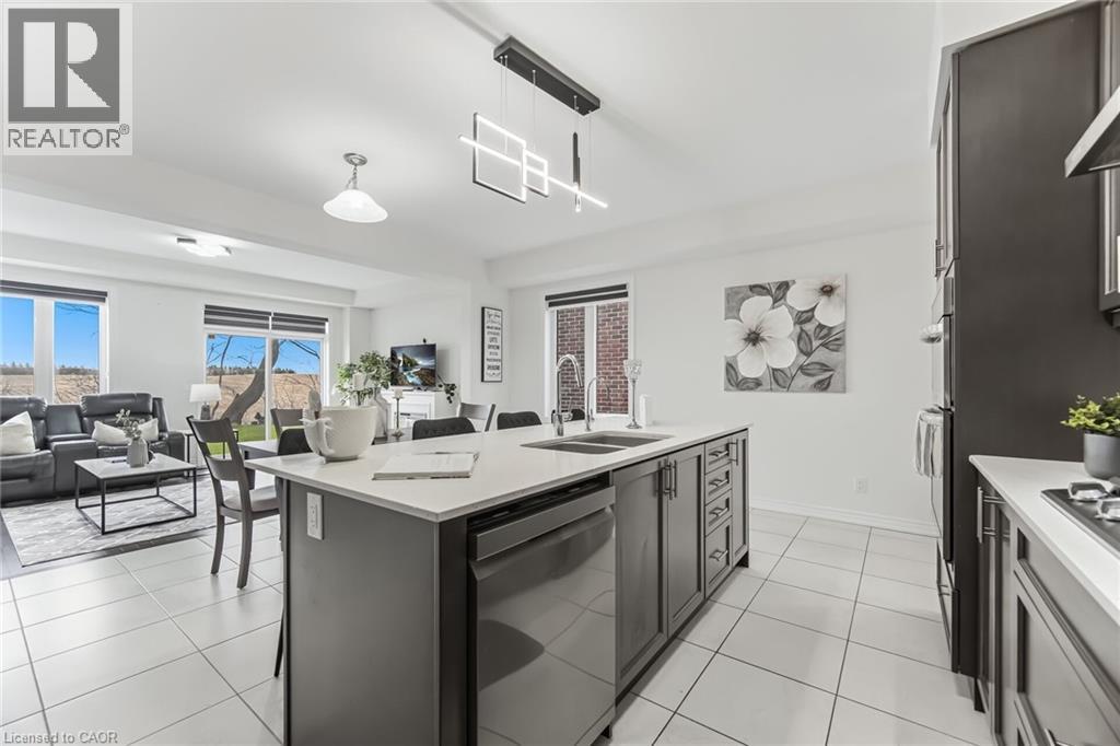 MARVELOUS OPPORTUNITY in the heart of Wallaceton, Huron Park's desirable communities. This stunning end-unit ravine townhome offers nearly 2800 sqft of beautifully finished living space with extra light, space & no rear neighbors. From the moment you step inside & you're greeted by the 9ft ceilings, a bright open-concept layout. Large windows on multiple sides-thanks to the premium end-unit location-flood the home with natural light all day long. At the heart of the home lies a chef-inspired kitchen designed to impress. The seller has invested $15,000 in premium Smart appliances, elevating both functionality & style. Featuring extended cabinetry, quartz countertops & a spacious central island, this kitchen is built for quick morning breakfasts to hosting unforgettable gatherings with family & friends. The adjoining living & dining areas are designed for both comfort & connection. Sliding doors lead to your ravine backyard-a rare with no neighbors behind, peaceful views & the perfect for summer BBQs, morning coffees, or simply unwinding after a long day. Upstairs, the primary suite is truly a retreat of its own. Featuring an elegant tray ceiling, feels grand. With two walk-in closets-his & hers. The ensuite offers a deep soaker tub, a glass-enclosed standing shower & a calm ambiance of relaxation. But what truly sets this apart is the view. As you look out the window, you're greeted with a breathtaking horizon where land meets sky-a daily reminder of peace, growth & possibility. It's more than a room-it's where goals are set, dreams are built & mornings begin with inspiration. The other 3 bedrooms are spacious with large windows & ample closets, plus a 4-pc bath & 2nd floor laundry room. The finished basement with 9ft ceilings offers space for a home theater, gym, office or rec area with 3pc bath, storage, 200 AMP panel. Plus includes interior garage access, driveway parking. Located minutes from top schools, parks, trails, shopping, & transit in a vibrant community. (id:50787)