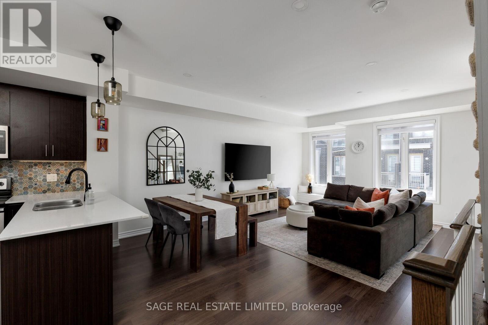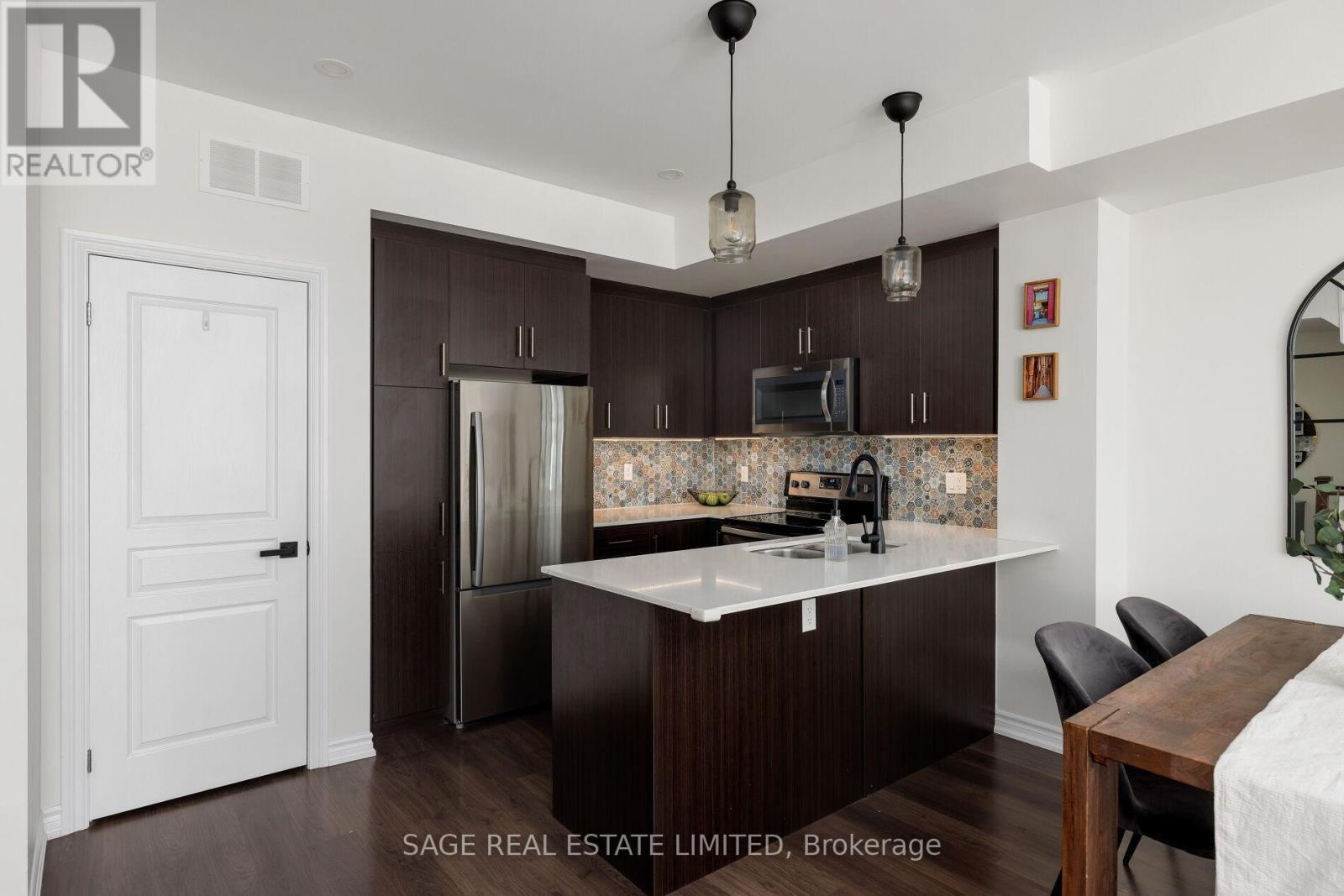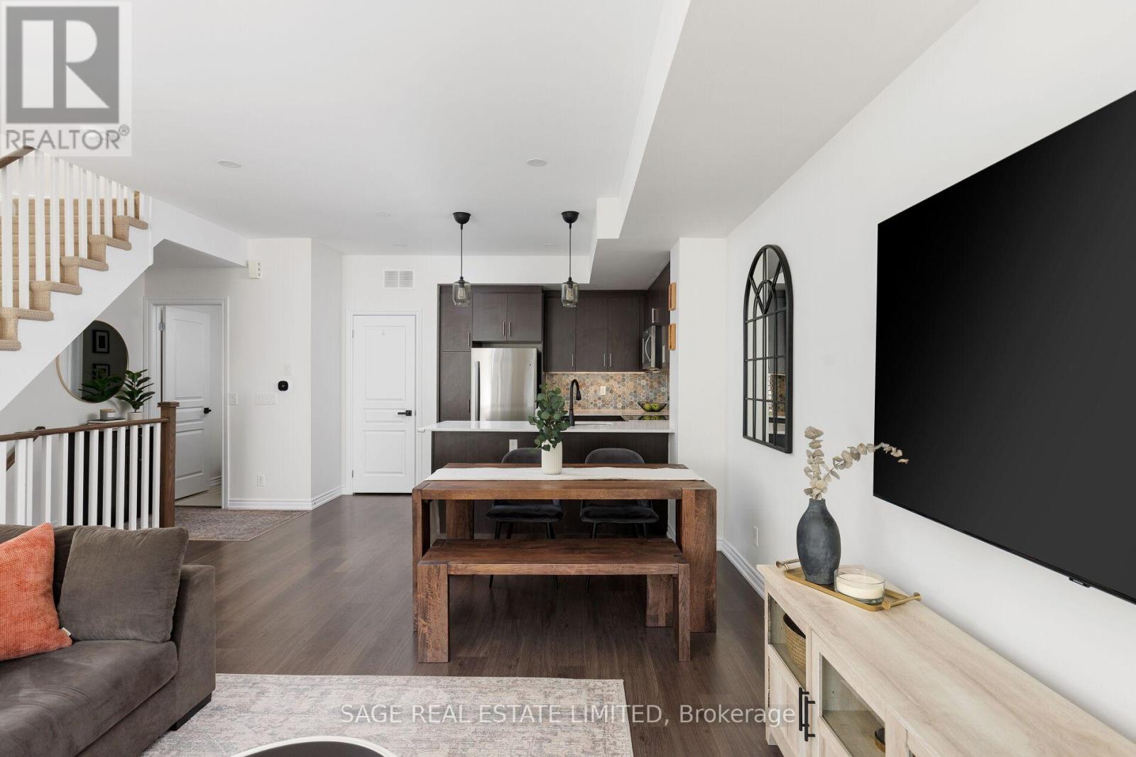 $524.45 MonthlyWhy face anywhere but South? This stunning, move-in ready townhome hits allof the marks and checks all of the boxes. Featuring an open stairwell (no second entry door here!) that leads directly into the most functional of main floors. The beautiful kitchen with oversized breakfast bar and custom backsplash, a true dining room with enough space for each and every gathering, a large living room that fits the comfiest of sectional couches and the perfect little window bench to watch the world go by. Upstairs, you'll find upgraded hardwood floors leading to two lovely bedrooms bathed in all of that south-facing sunlight during the day and custom blackout blinds when it's time to hit the hay. The primary suite fits a King (we're not lying!), along with the perfect ensuite with upgraded vanity/lights/mirror and hardware and sunny juliette walkout. The cherry on top is the jaw-dropping rooftop terrace perfect for a family BBQ afternoon, a girls (or boys'!) night with your favourite cocktail, or a private solo retreat to escape life's stresses. This community is second to none- you have to experience it to believe it. The friendliest of neighbours willing to walk your dog if you're running late from work. A school bus stop at the corner of Long Branch Avenue and Eastwood Park Gardens so you're little ones always have buddies to walk home with. Waterfront living just doesn't get any better than this. Welcome home! (id:50787)