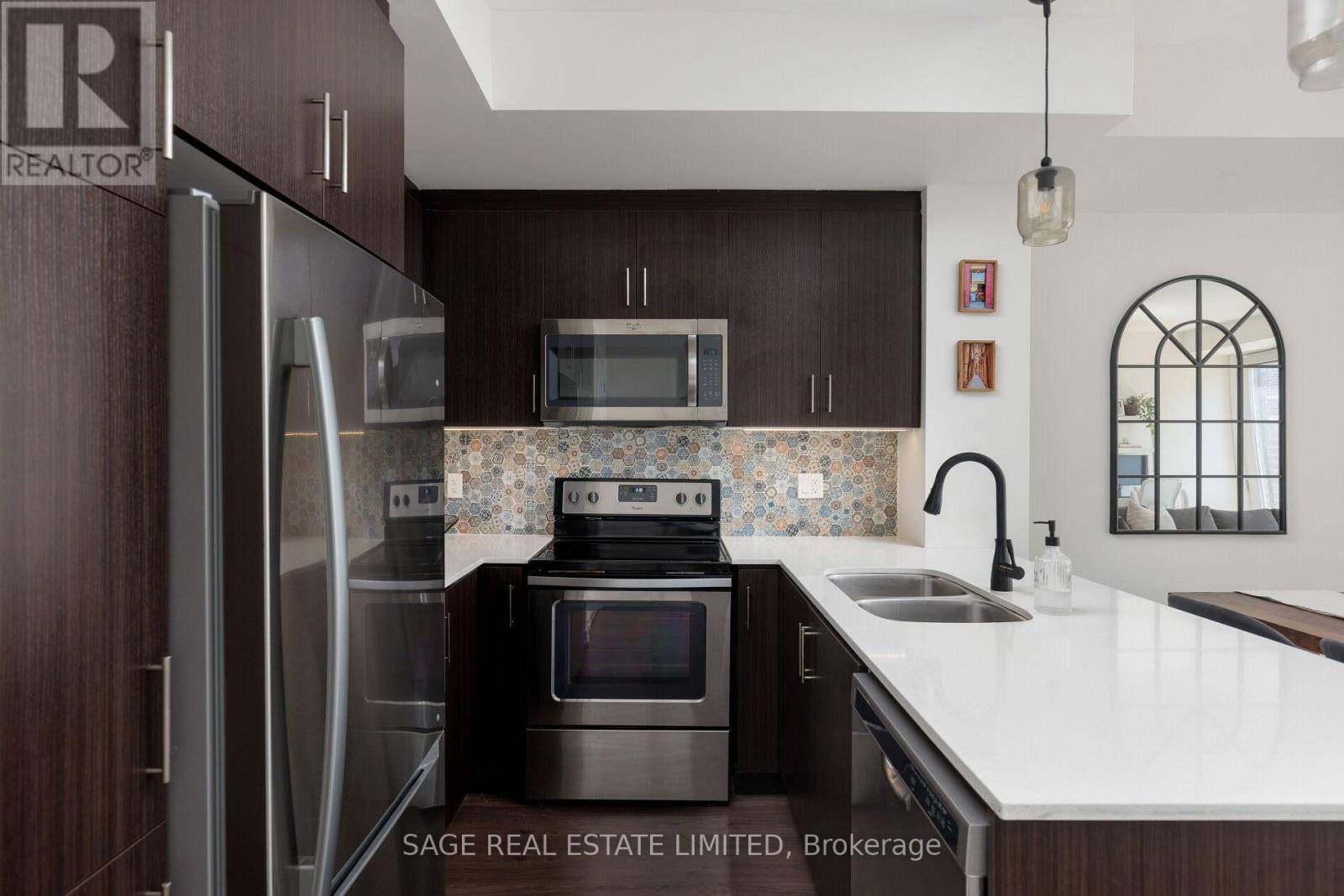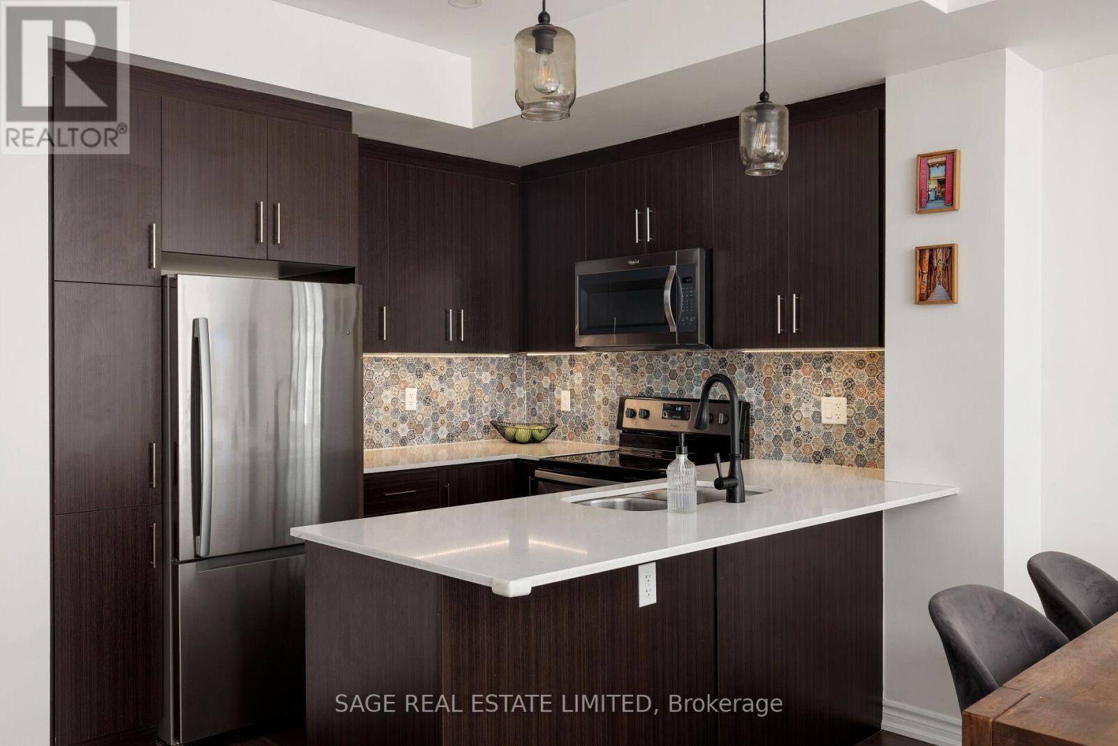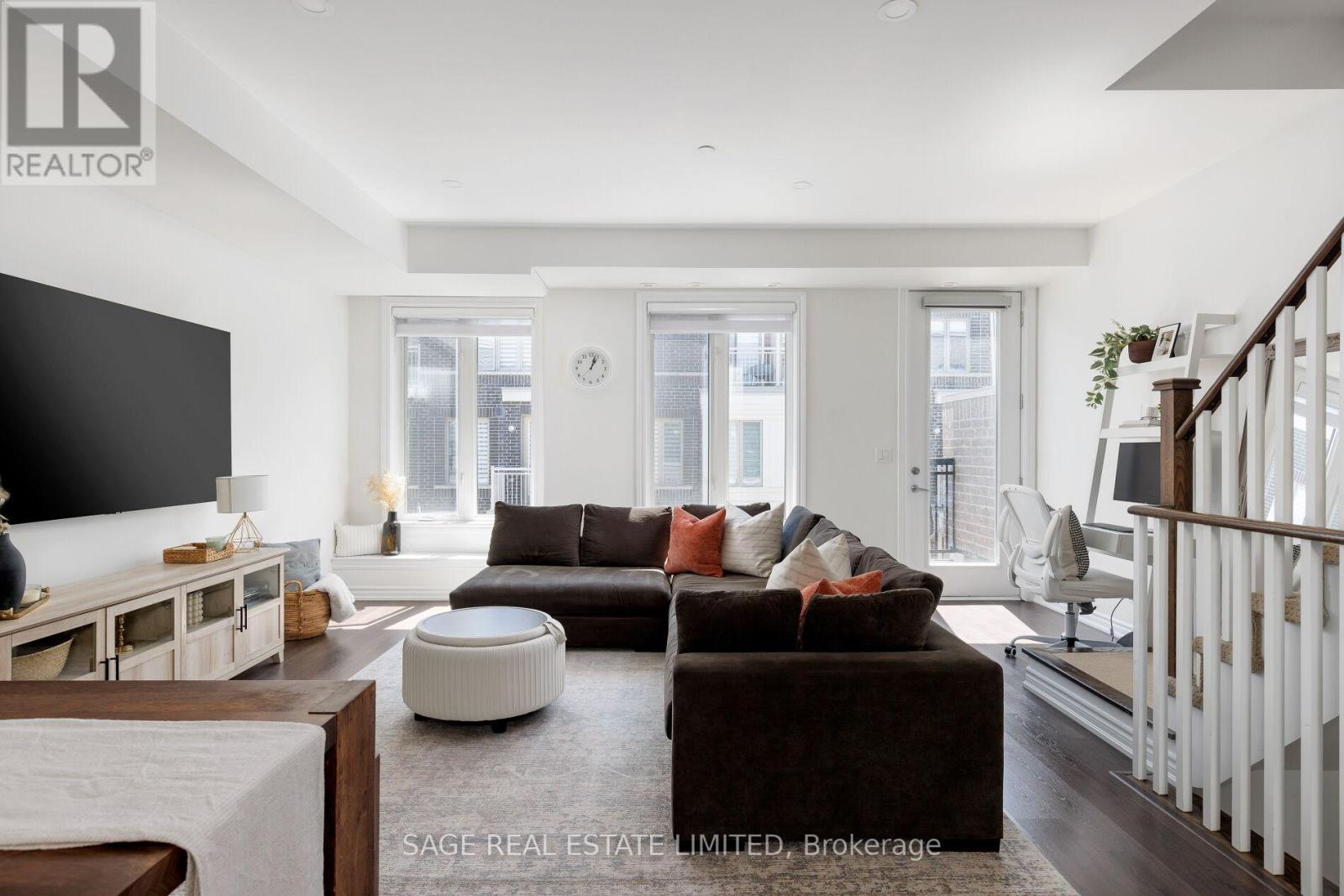 $524.45 MonthlyWhy face anywhere but South? This stunning, move-in ready townhome hits allof the marks and checks all of the boxes. Featuring an open stairwell (no second entry door here!) that leads directly into the most functional of main floors. The beautiful kitchen with oversized breakfast bar and custom backsplash, a true dining room with enough space for each and every gathering, a large living room that fits the comfiest of sectional couches and the perfect little window bench to watch the world go by. Upstairs, you'll find upgraded hardwood floors leading to two lovely bedrooms bathed in all of that south-facing sunlight during the day and custom blackout blinds when it's time to hit the hay. The primary suite fits a King (we're not lying!), along with the perfect ensuite with upgraded vanity/lights/mirror and hardware and sunny juliette walkout. The cherry on top is the jaw-dropping rooftop terrace perfect for a family BBQ afternoon, a girls (or boys'!) night with your favourite cocktail, or a private solo retreat to escape life's stresses. This community is second to none- you have to experience it to believe it. The friendliest of neighbours willing to walk your dog if you're running late from work. A school bus stop at the corner of Long Branch Avenue and Eastwood Park Gardens so you're little ones always have buddies to walk home with. Waterfront living just doesn't get any better than this. Welcome home! (id:50787)