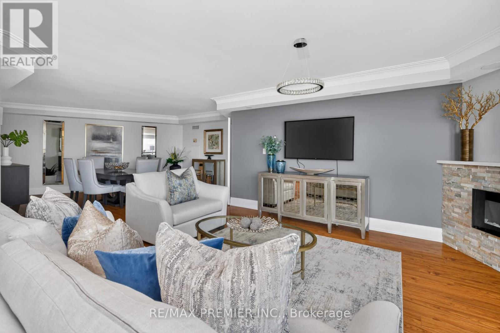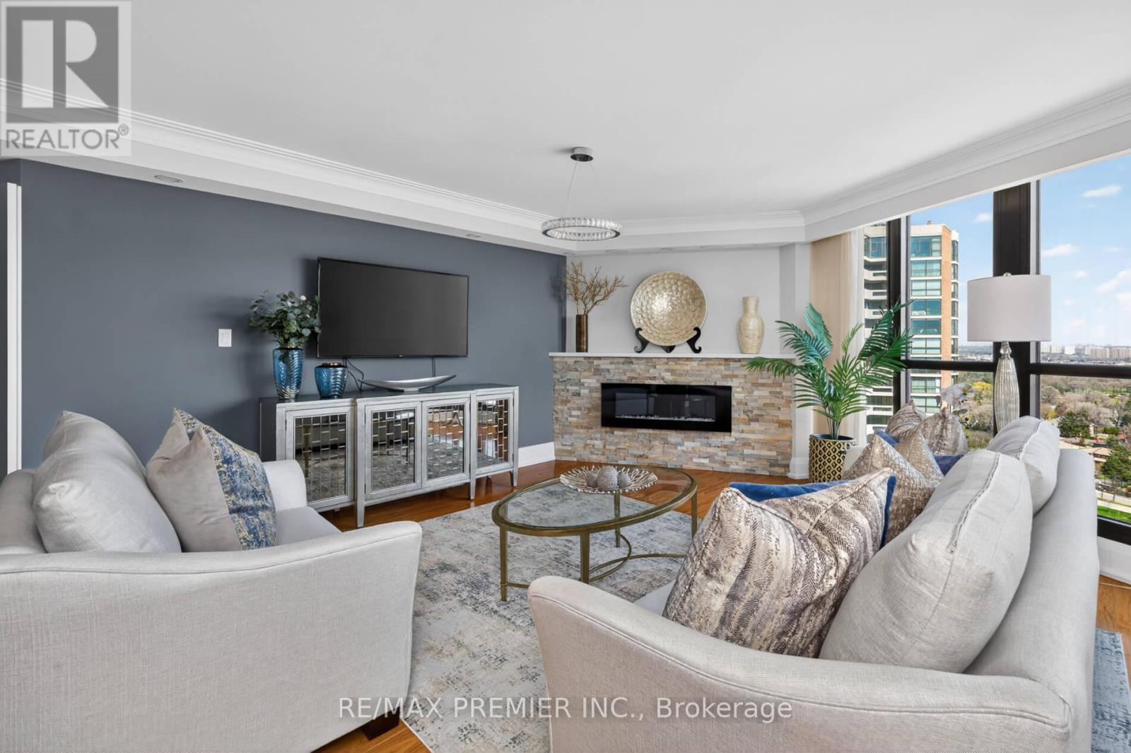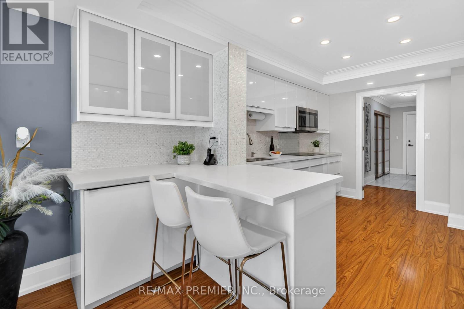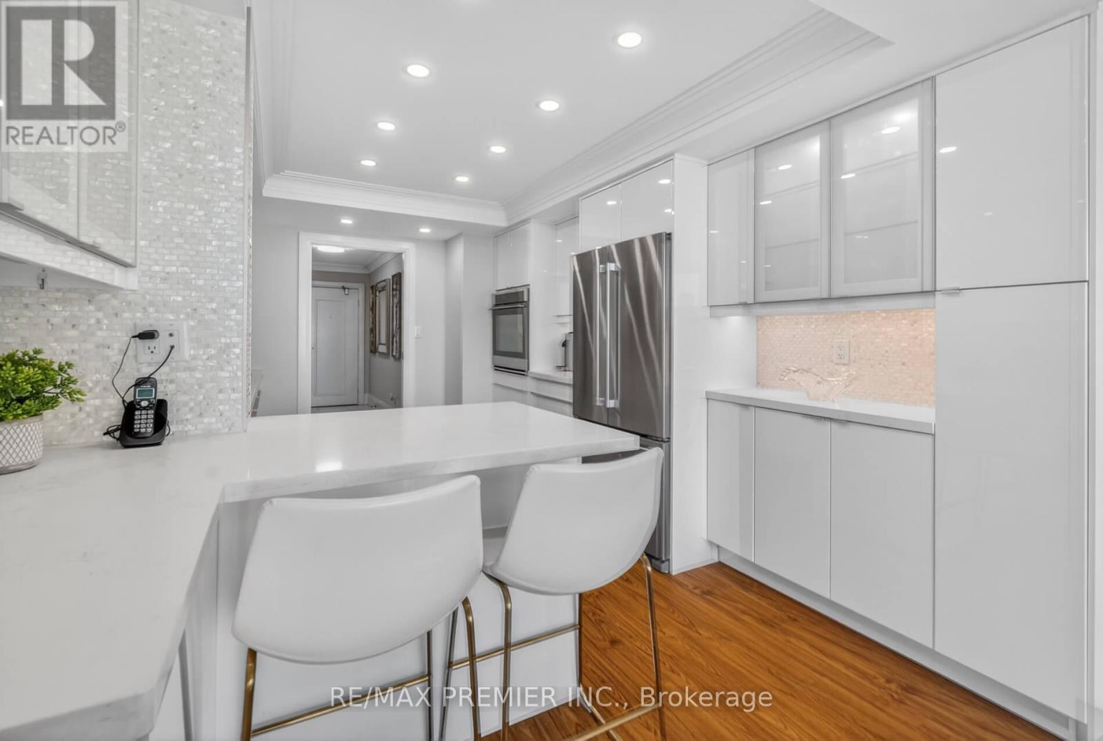 $1,561.42 MonthlyThis 1529 sq ft unique condo plus a large balcony with unobstructed views of the CN Tower & the skyline. Completely renovated with quality materials throughout. Will capture you the moment you enter thru the front door having only 6 units per floor. Situated on almost 10 acres of beautifully landscaped grounds and best amenities including Olympic size indoor pool and outdoor pool, tennis courts with private BBQ area. Walk in and enjoy the beauty of a white lacquer kitchen with build in stainless steel appliances, quartz counters & breakfast bar. Open concept layout with a formal dining room, large living room, smooth ceilings, electric fireplace. Primary bed with 3 pc ensuite with heated floors, built in cabinetry, his & hers closets, & walk out to balcony. Lots of built in cabinetry & heated floors in both baths. Unique in suite storage. Words cannot describe this condo & complex. Maintenance includes everything, gas, hydro, water, internet, cable, home phone & amenities, 24 hr gated security. A must see. Shows 10+++ (id:50787)