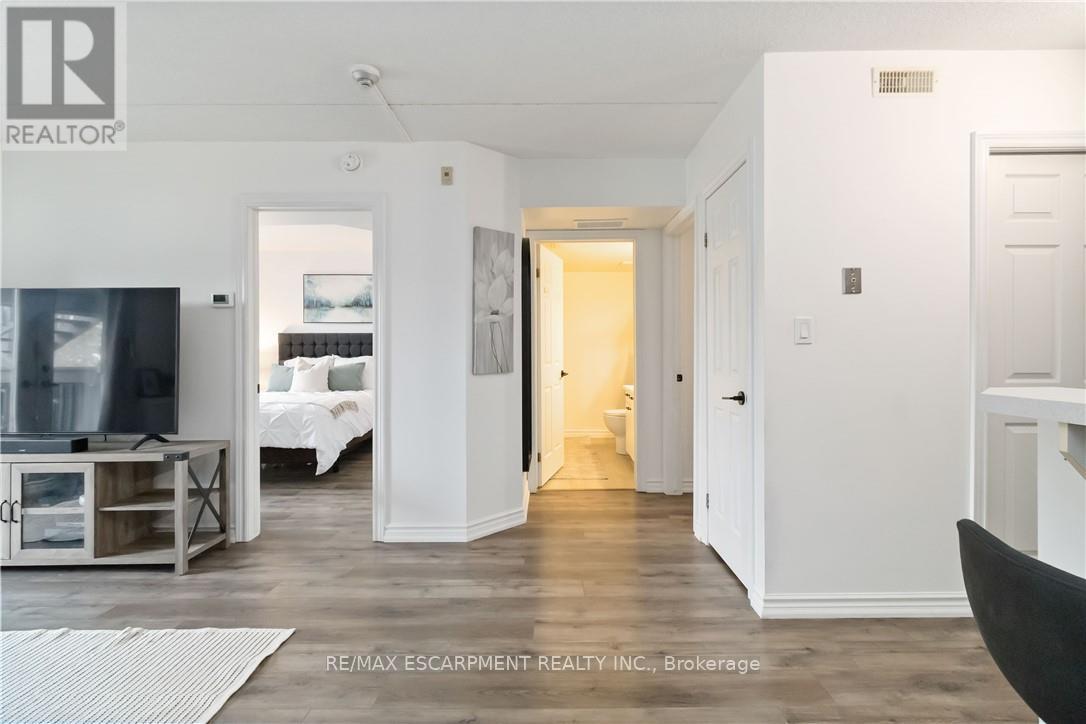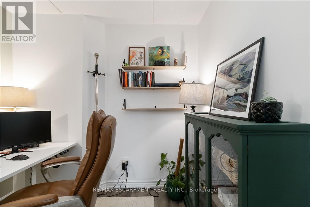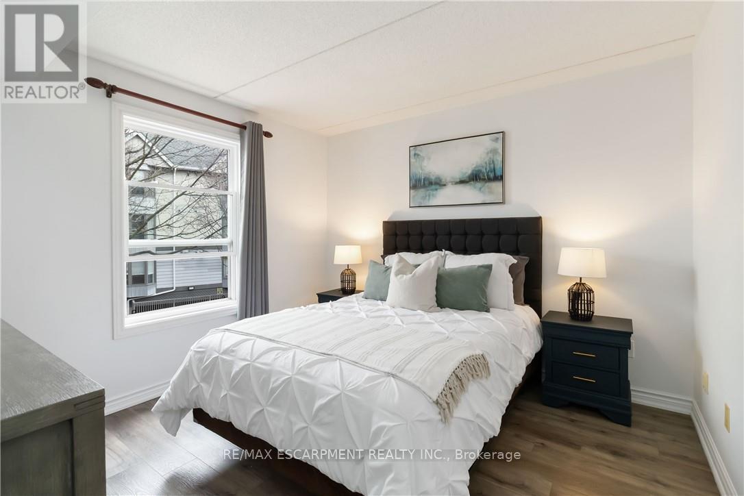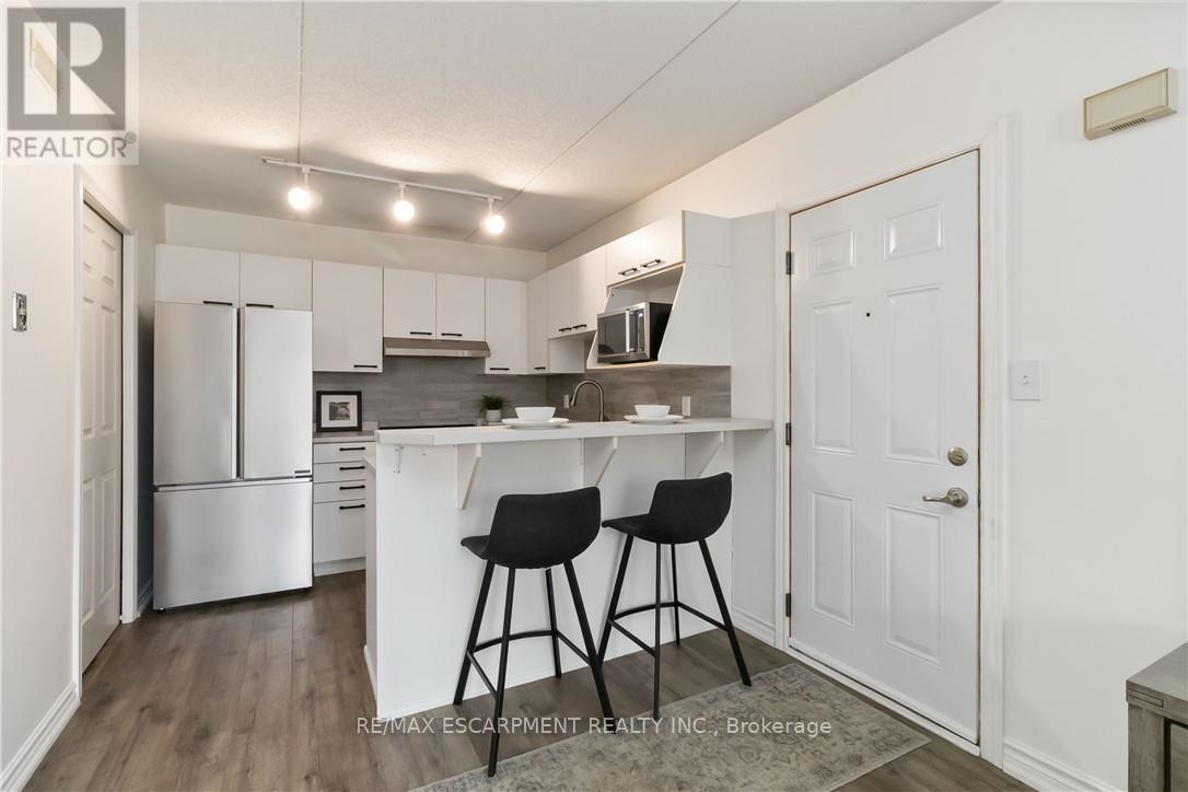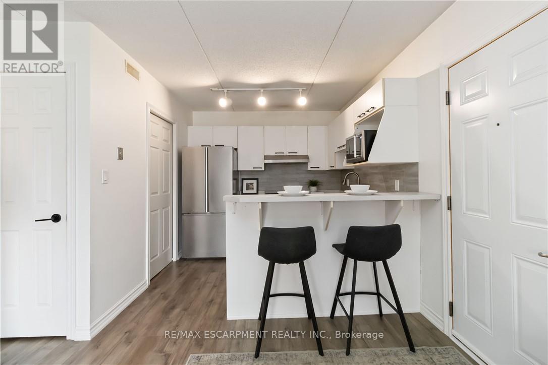$623.59 MonthlyWelcome home to this beautifully appointed open-concept condo, privately nestled in the sought-after Headon Forest community of Burlington. Surrounded by mature trees and tranquil greenery, this bright and inviting one-bedroom plus den residence offers an exceptional blend of style, comfort, and convenience. Designed with modern living in mind, the spacious open-concept layout creates seamless flow between the kitchen, dining, and living areas-ideal for both everyday living and entertaining. The peninsula-style kitchen serves as the heart of the home, offering generous counter space, additional seating, and a natural gathering place for casual meals or hosting guests. The sun-filled living area extends to a private covered balcony, providing a peaceful outdoor retreat to enjoy your morning coffee or unwind at the end of the day. The well proportioned primary bedroom is complemented by a versatile den, perfect for a home office, guest space, or reading nook. A four-piece bath and convenient in-suite laundry enhance everyday functionality. Covered parking and a private locker are included for added comfort and storage. Ideally located close to shopping, restaurants, parks, and everyday amenities, this residence offers refined condo living in one of Burlington's most desirable neighbourhoods (id:50787)