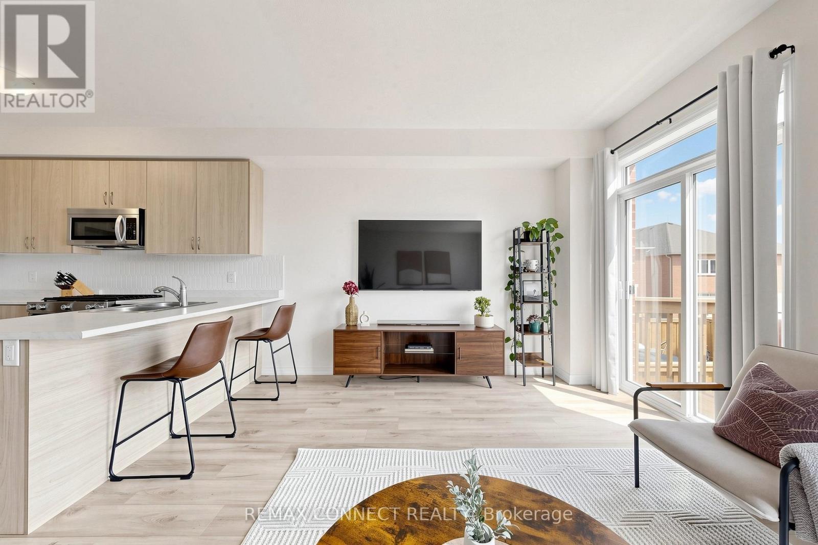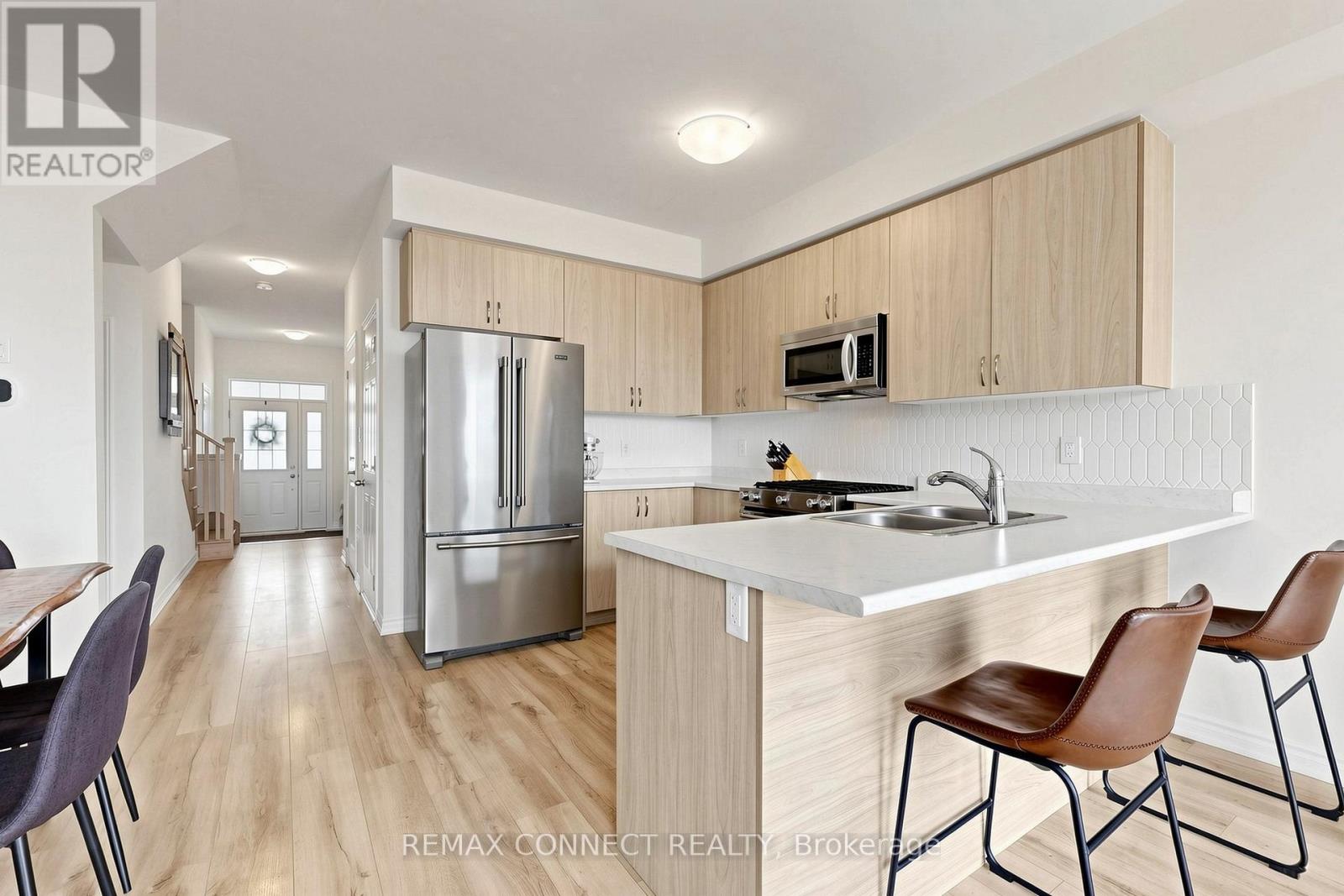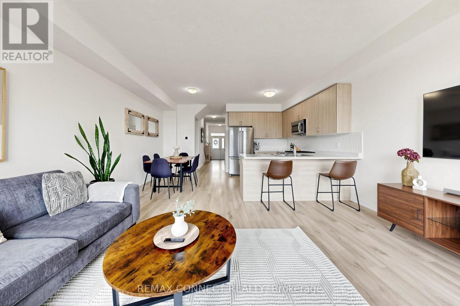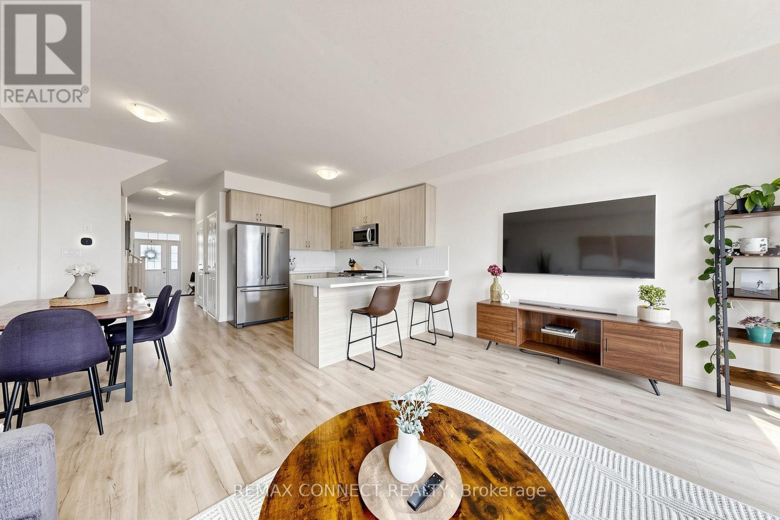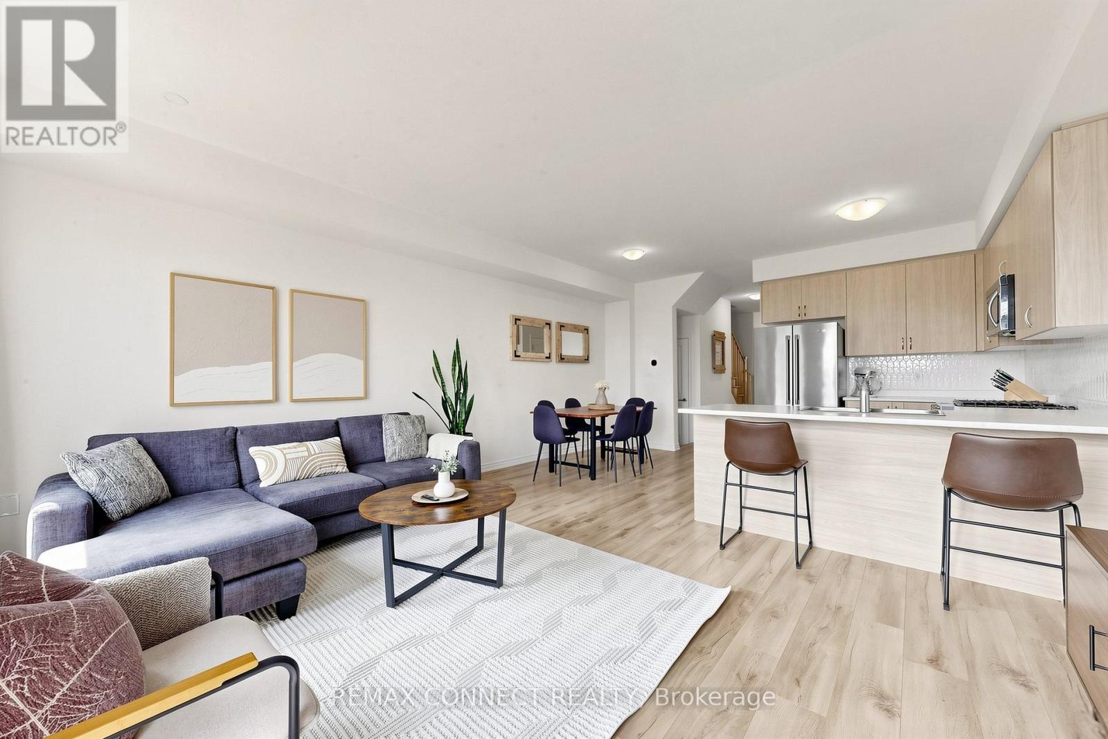 Welcome to this beautiful 3-bedroom townhouse, where style meets everyday comfort. The thoughtfully decorated and spacious layout offers an inviting living and dining area perfect for both entertaining and relaxing. The well-designed kitchen blends function and sophistication while the large breakfast bar creates the perfect place for morning coffee, guests to chat, or kids to do homework. Upstairs, three generous bedrooms provide ample space for families, guests, or a home office, as well as the convenience of a large laundry room steps from the bedrooms. The primary "retreat" suite is spacious with built in tailored closet storage and a spa-like deep soaker tub and separate shower in the ensuite. The finishings boast upgraded kitchen cabinetry with custom backsplash, upgraded laminate throughout main floor and upper hall and upgraded tiles throughout. The main floor has 9' ceilings and large oversize windows, which give a nice airy feel to the open space. Step outside to your large fenced yard, ideal for outdoor dining and entertaining, children, or pets, creating a seamless extension of your living space. This unit also offers a rare private backyard access from the garage, as well as garage access to the house. Walking distance to all amenities - groceries, shopping, restaurants, and a short drive to Innisfil Beach Park where you can enjoy all the fun of summer and winter activities on beautiful Lake Simcoe. Perfectly suited for those seeking a move-in ready home with elevated design, this townhouse delivers comfort, style, and convenience in one exceptional package. (id:50787)