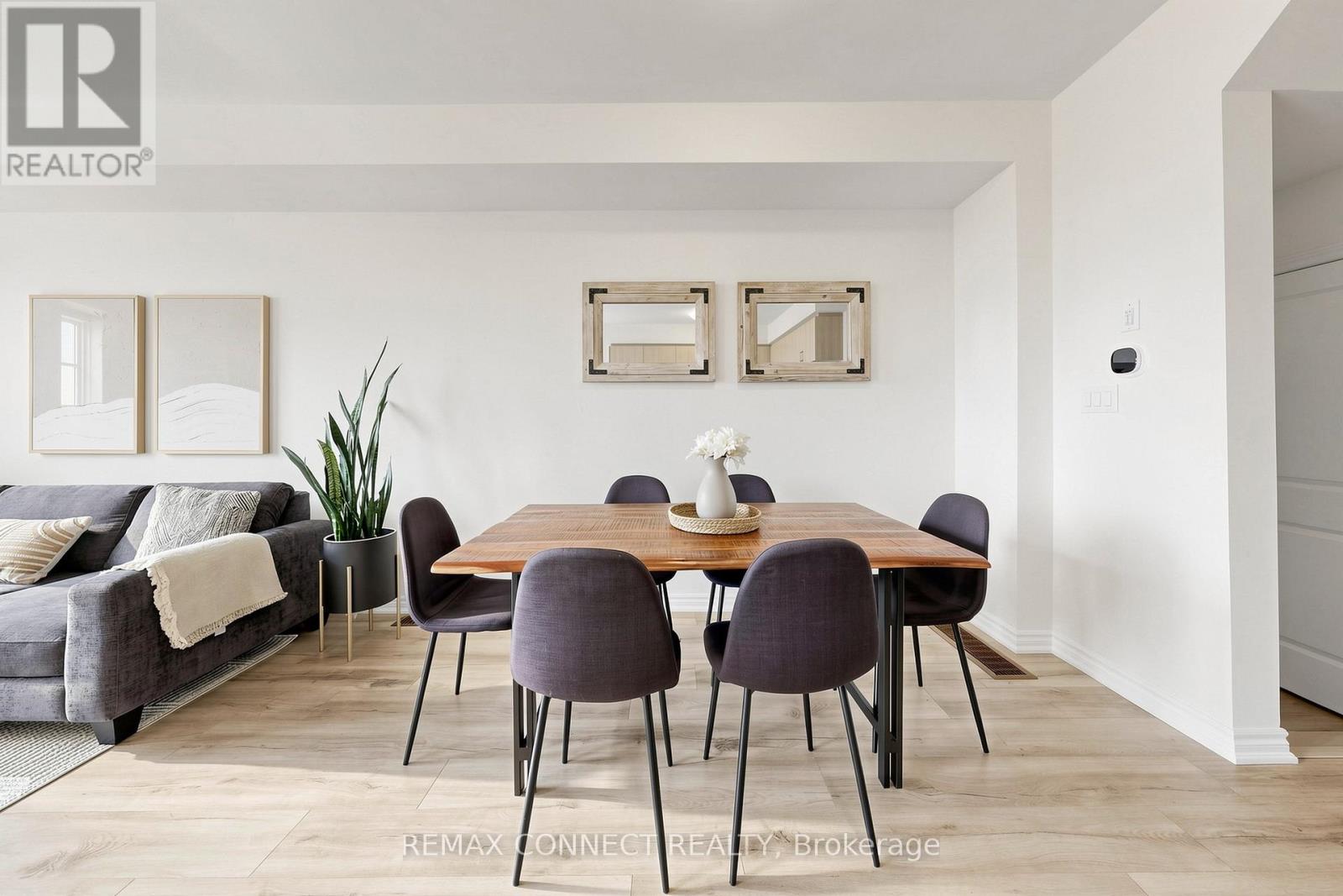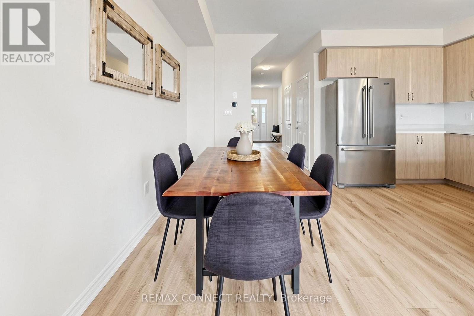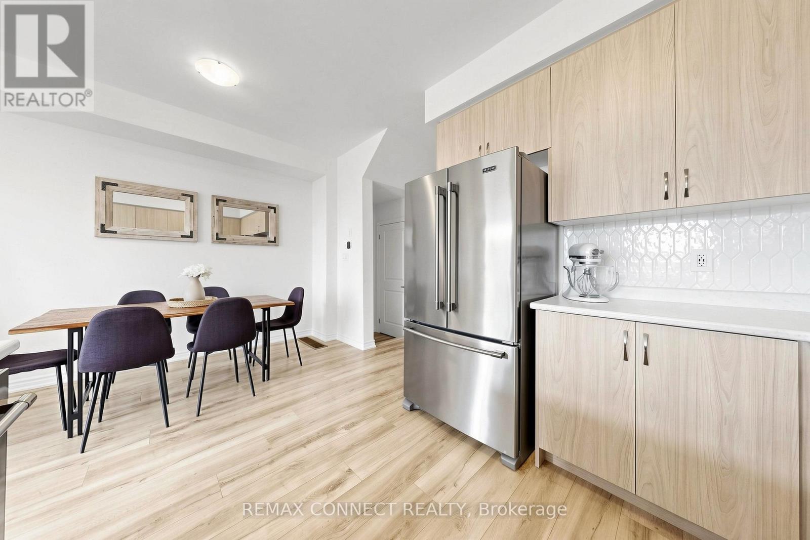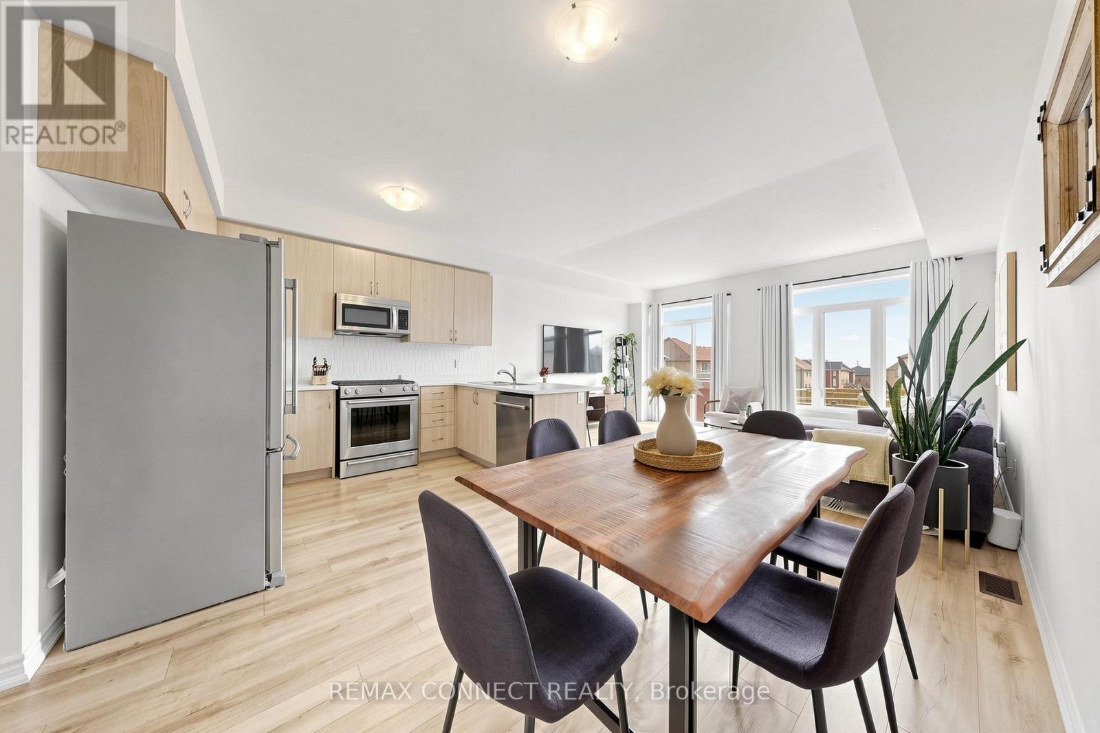 Welcome to this beautiful 3-bedroom townhouse, where style meets everyday comfort. The thoughtfully decorated and spacious layout offers an inviting living and dining area perfect for both entertaining and relaxing. The well-designed kitchen blends function and sophistication while the large breakfast bar creates the perfect place for morning coffee, guests to chat, or kids to do homework. Upstairs, three generous bedrooms provide ample space for families, guests, or a home office, as well as the convenience of a large laundry room steps from the bedrooms. The primary "retreat" suite is spacious with built in tailored closet storage and a spa-like deep soaker tub and separate shower in the ensuite. The finishings boast upgraded kitchen cabinetry with custom backsplash, upgraded laminate throughout main floor and upper hall and upgraded tiles throughout. The main floor has 9' ceilings and large oversize windows, which give a nice airy feel to the open space. Step outside to your large fenced yard, ideal for outdoor dining and entertaining, children, or pets, creating a seamless extension of your living space. This unit also offers a rare private backyard access from the garage, as well as garage access to the house. Walking distance to all amenities - groceries, shopping, restaurants, and a short drive to Innisfil Beach Park where you can enjoy all the fun of summer and winter activities on beautiful Lake Simcoe. Perfectly suited for those seeking a move-in ready home with elevated design, this townhouse delivers comfort, style, and convenience in one exceptional package. (id:50787)