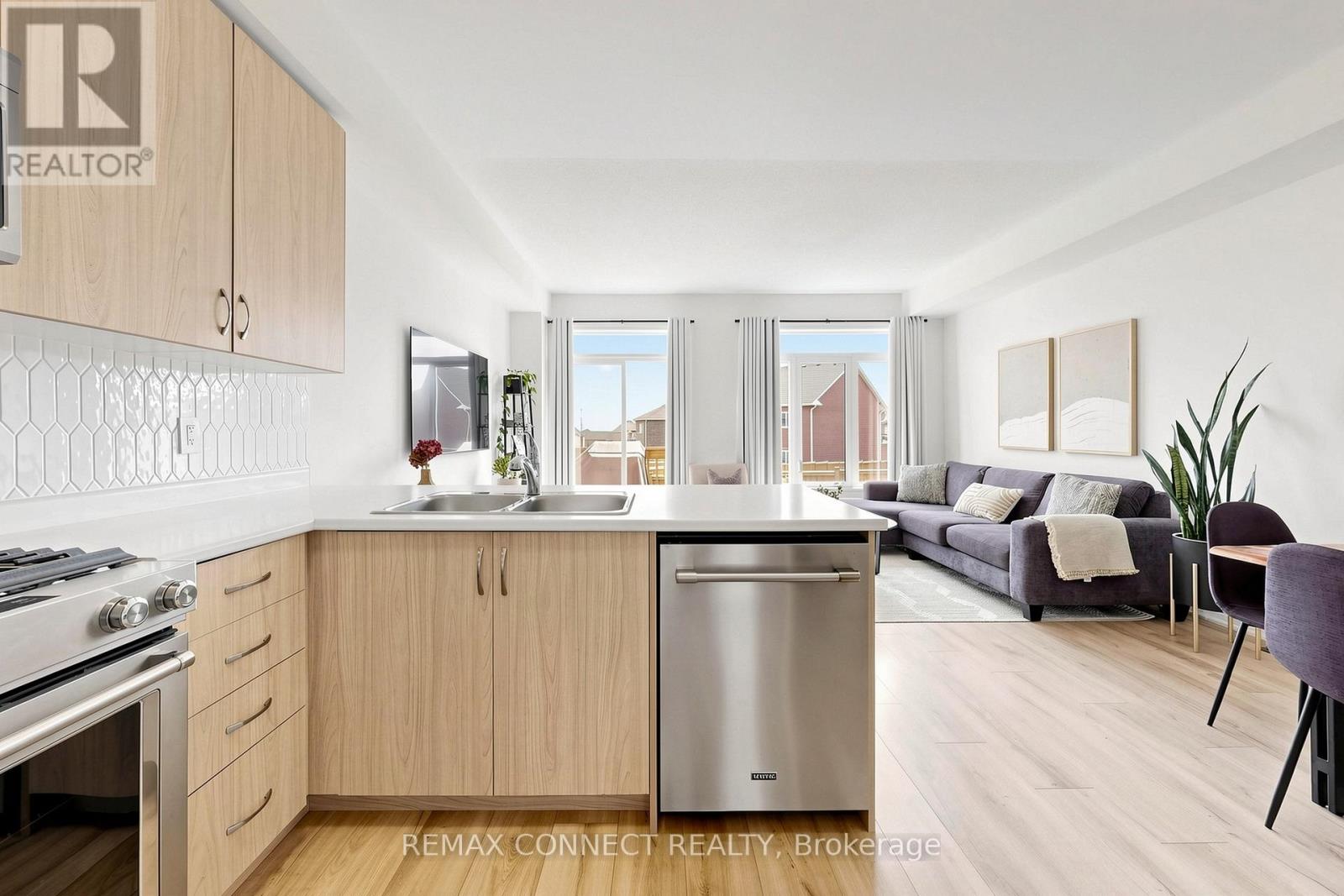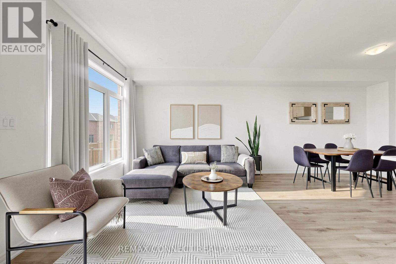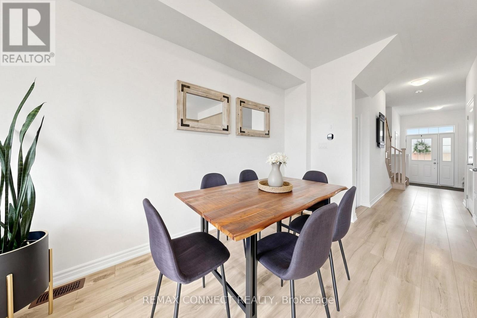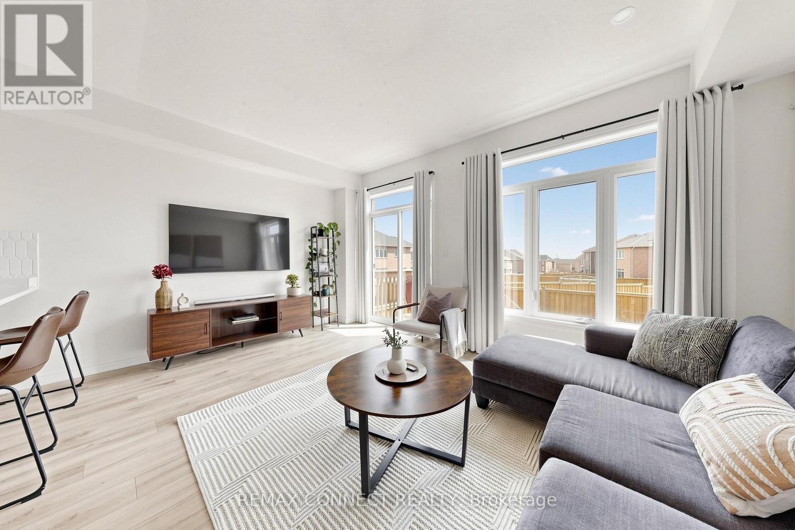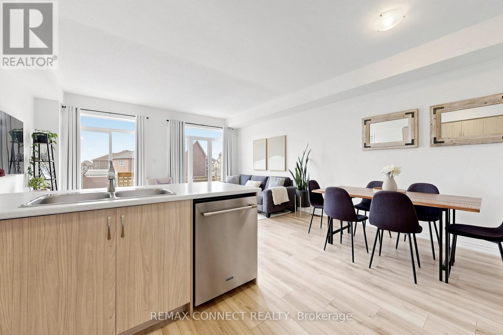 Welcome to this beautiful 3-bedroom townhouse, where style meets everyday comfort. The thoughtfully decorated and spacious layout offers an inviting living and dining area perfect for both entertaining and relaxing. The well-designed kitchen blends function and sophistication while the large breakfast bar creates the perfect place for morning coffee, guests to chat, or kids to do homework. Upstairs, three generous bedrooms provide ample space for families, guests, or a home office, as well as the convenience of a large laundry room steps from the bedrooms. The primary "retreat" suite is spacious with built in tailored closet storage and a spa-like deep soaker tub and separate shower in the ensuite. The finishings boast upgraded kitchen cabinetry with custom backsplash, upgraded laminate throughout main floor and upper hall and upgraded tiles throughout. The main floor has 9' ceilings and large oversize windows, which give a nice airy feel to the open space. Step outside to your large fenced yard, ideal for outdoor dining and entertaining, children, or pets, creating a seamless extension of your living space. This unit also offers a rare private backyard access from the garage, as well as garage access to the house. Walking distance to all amenities - groceries, shopping, restaurants, and a short drive to Innisfil Beach Park where you can enjoy all the fun of summer and winter activities on beautiful Lake Simcoe. Perfectly suited for those seeking a move-in ready home with elevated design, this townhouse delivers comfort, style, and convenience in one exceptional package. (id:50787)