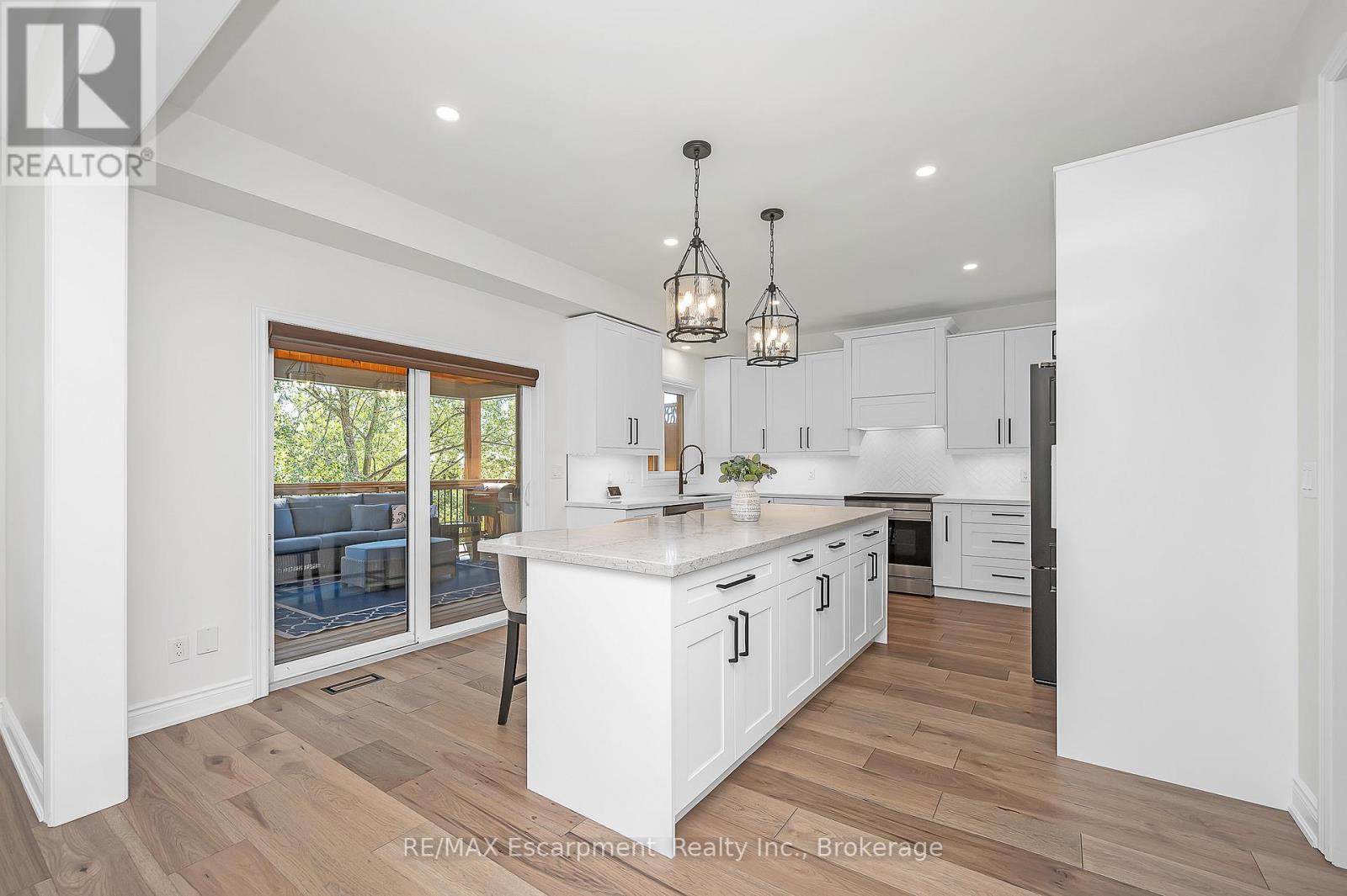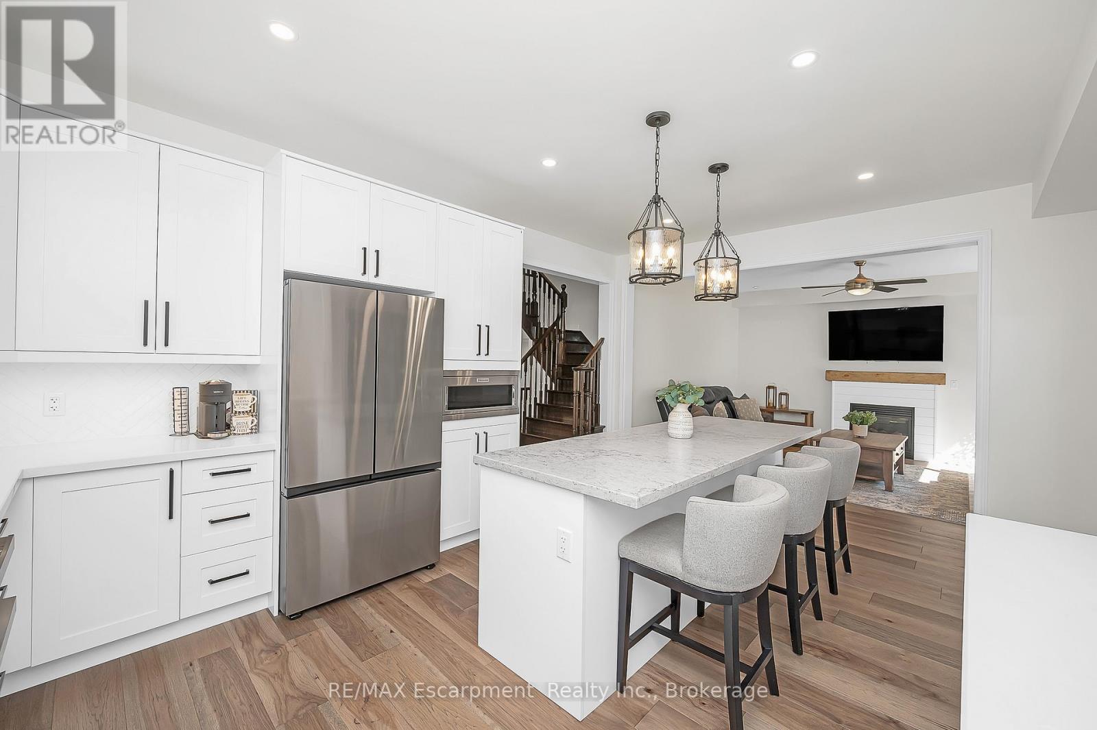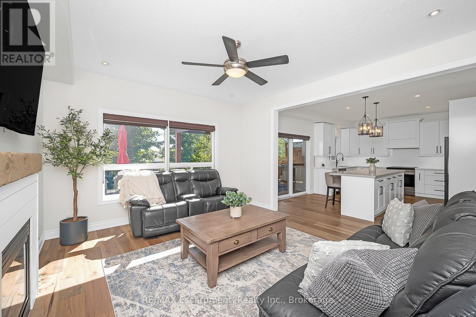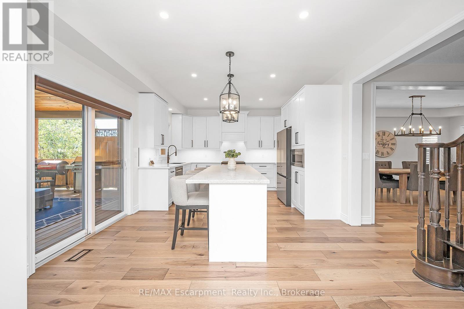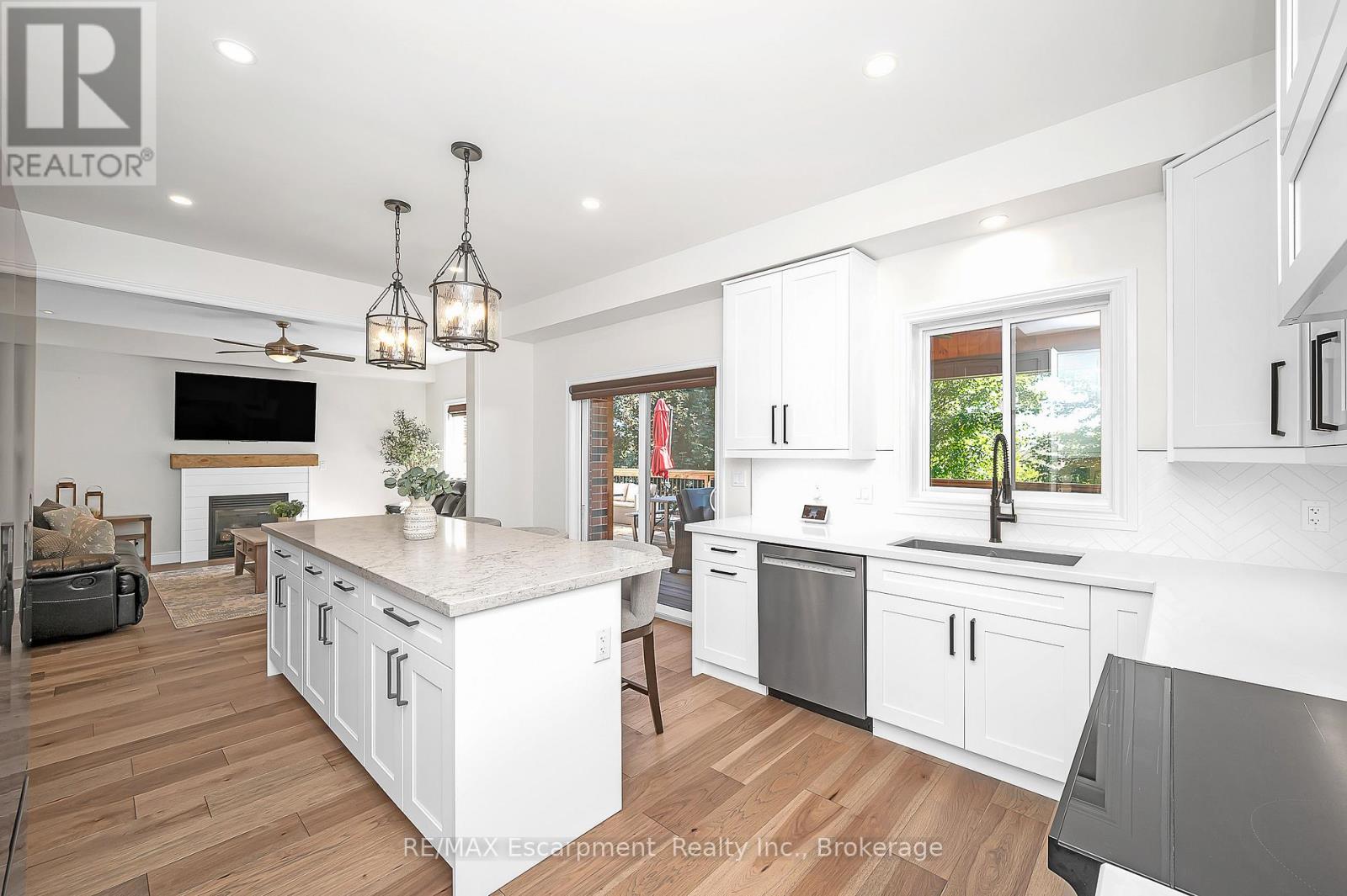 Welcome to this beautifully updated detached two-storey home in the heart of Ayr, the lot is nearly 200' deep and has a bright walk-out basement. With 4 bedrooms, 4 bathrooms, and extensive 2024 renovations, this home blends modern comfort with everyday functionality. The main level showcases a stunning transformation with engineered hardwood and tile flooring, a newly redesigned kitchen with cabinetry, coffee bar, and stainless steel appliances, plus a stylishly renovated powder room. The open-concept layout flows seamlessly from the dining room into the living room, where an oversized window and cozy fireplace create a warm and inviting atmosphere. A sliding door leads to the deck with a custom enclosure (2020)perfect for morning coffee or evening entertaining. Practical touches include a spacious laundry room and new front entry door (2024). Upstairs, the primary suite offers a large walk-in closet and a fully renovated spa-like ensuite (2024) with double vanity, stand alone tub and glass shower. Three additional bedrooms and a refreshed full bathroom provide space for family and guests. The fully finished walk-out basement adds even more living space, featuring an oversized recreation room with fireplace, a wet bar, a renovated full bathroom, and a dedicated home office (2024). Sliding doors open to a private patio, expanding your entertaining options. The backyard is truly exceptional, offering expansive green space for play, gardening, or future outdoor upgrades. Additional highlights include a heated and fully insulated garage, upgraded electrical panel (2024), soffits with switch-operated outlets for holiday lighting, and a reinforced, wired area ready for a hot tub. With its thoughtful upgrades, modern finishes, and an incredible lot, this Ayr home is move-in ready and designed for years of enjoyment. (id:50787)