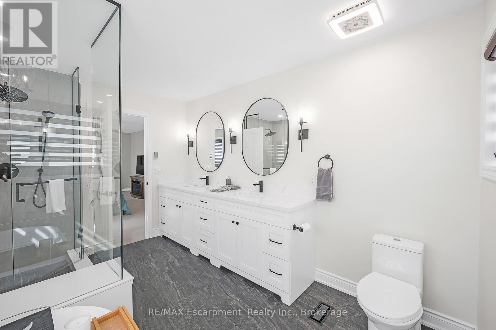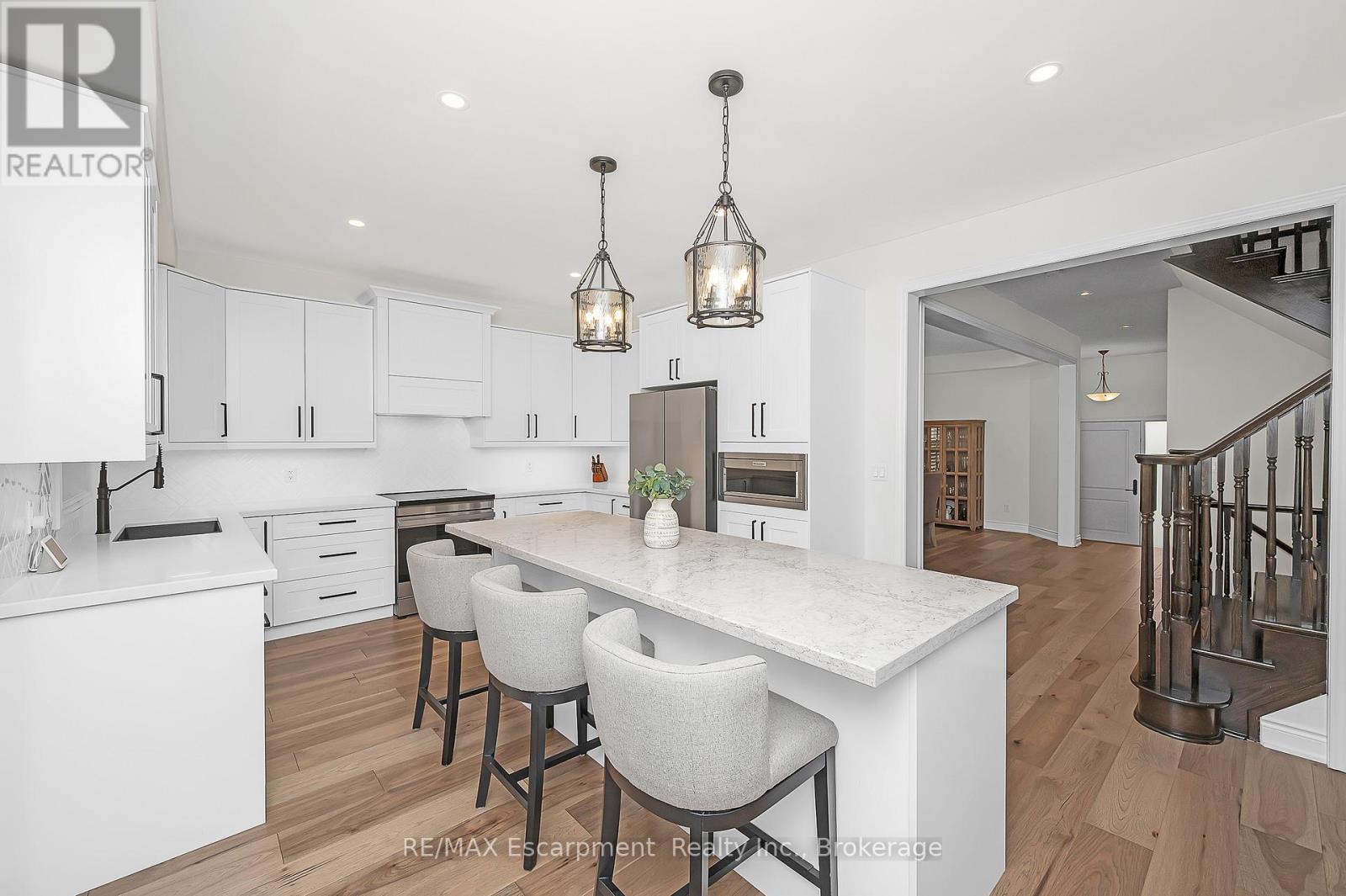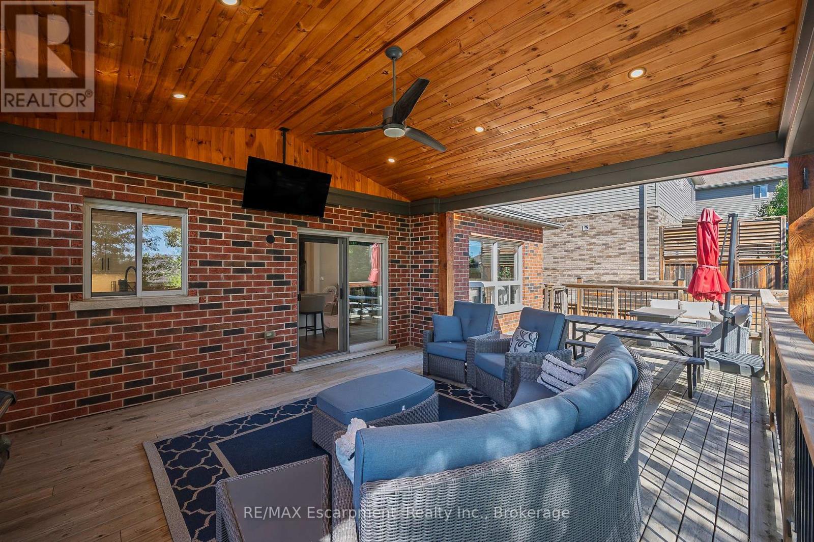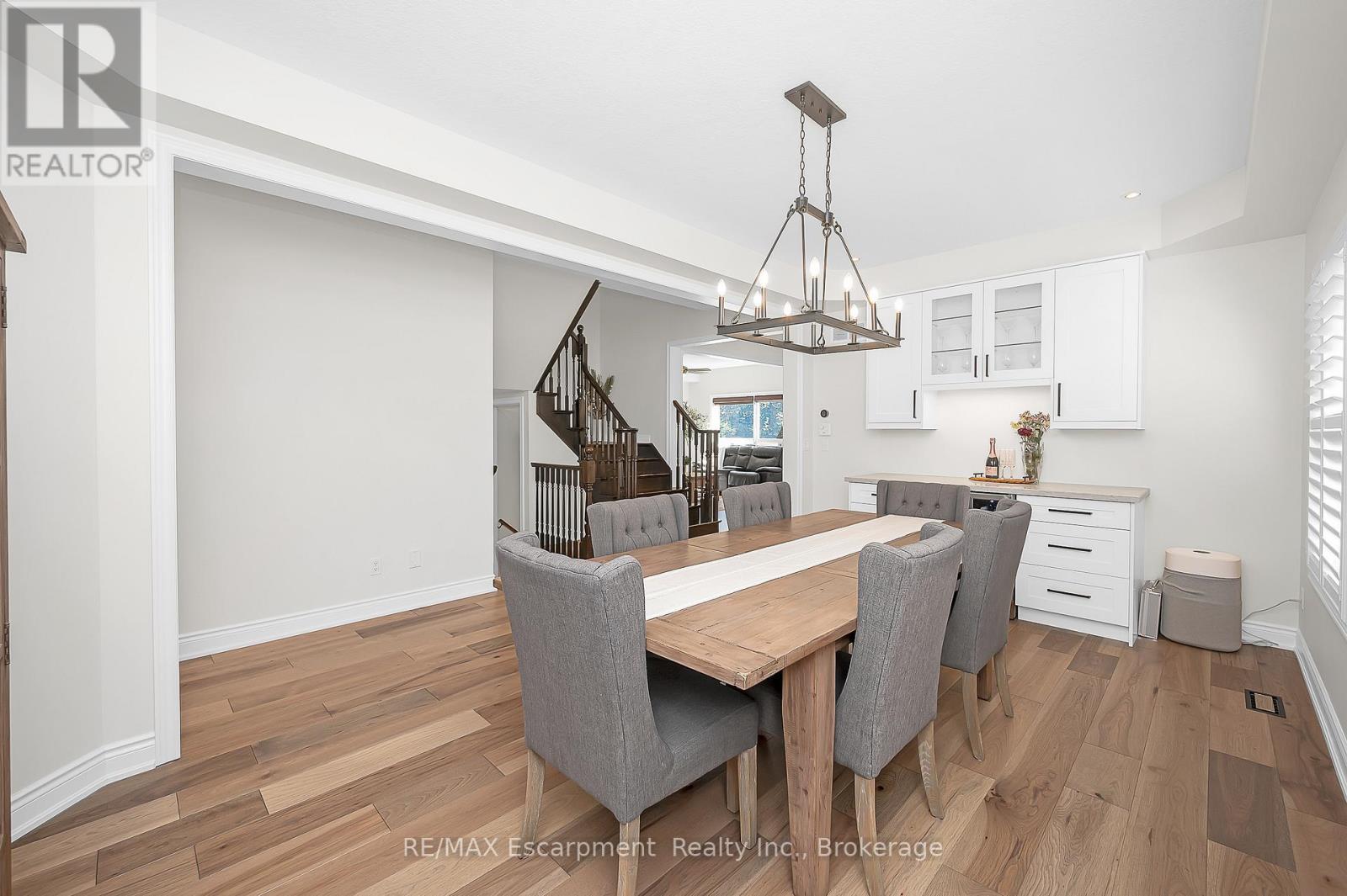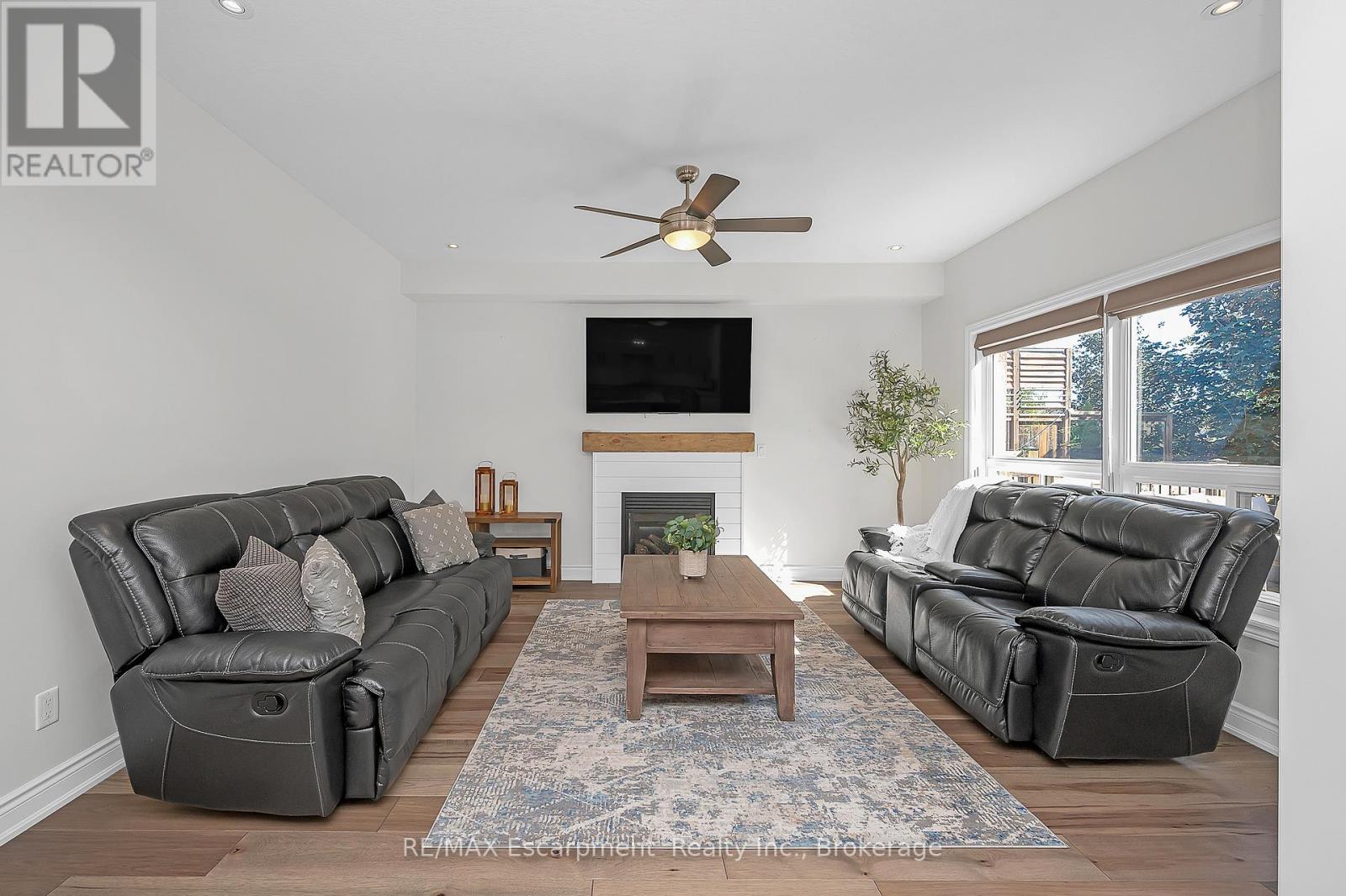 Welcome to this beautifully updated detached two-storey home in the heart of Ayr, the lot is nearly 200' deep and has a bright walk-out basement. With 4 bedrooms, 4 bathrooms, and extensive 2024 renovations, this home blends modern comfort with everyday functionality. The main level showcases a stunning transformation with engineered hardwood and tile flooring, a newly redesigned kitchen with cabinetry, coffee bar, and stainless steel appliances, plus a stylishly renovated powder room. The open-concept layout flows seamlessly from the dining room into the living room, where an oversized window and cozy fireplace create a warm and inviting atmosphere. A sliding door leads to the deck with a custom enclosure (2020)perfect for morning coffee or evening entertaining. Practical touches include a spacious laundry room and new front entry door (2024). Upstairs, the primary suite offers a large walk-in closet and a fully renovated spa-like ensuite (2024) with double vanity, stand alone tub and glass shower. Three additional bedrooms and a refreshed full bathroom provide space for family and guests. The fully finished walk-out basement adds even more living space, featuring an oversized recreation room with fireplace, a wet bar, a renovated full bathroom, and a dedicated home office (2024). Sliding doors open to a private patio, expanding your entertaining options. The backyard is truly exceptional, offering expansive green space for play, gardening, or future outdoor upgrades. Additional highlights include a heated and fully insulated garage, upgraded electrical panel (2024), soffits with switch-operated outlets for holiday lighting, and a reinforced, wired area ready for a hot tub. With its thoughtful upgrades, modern finishes, and an incredible lot, this Ayr home is move-in ready and designed for years of enjoyment. (id:50787)