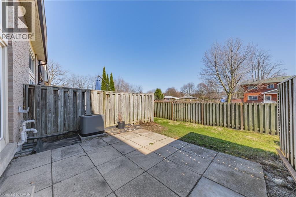 Step inside and be welcomed by impressive 20-foot cathedral ceilings in the living room, complemented by expansive floor-to-ceiling windows and sliding glass doors that fill the space with natural light and provide seamless access to the outdoor patio. The second level is designed for entertaining, featuring a stylish kitchen with shaker-style cabinetry, stainless steel appliances, and pot lights. Its open-concept layout flows effortlessly into the dining area, highlighted by a modern glass overlook to the living room below. A solid oak staircase leads to the third level, where you’ll find a spacious primary bedroom with his-and-hers closets, along with two additional bedrooms and a beautifully renovated 4-piece bathroom complete with clean finishes, elegant tile work, and new glass shower doors. The basement offers a dedicated laundry area and an abundance of storage, ensuring everything has its place. Additional upgrades include a new A/C (2020), blinds throughout, painted drywall in the garage, and garage floor refinished with concrete in 2023. Outdoor enhancements include a fully redone backyard patio (2023) and a brand-new front door (2023), adding both style and functionality. Located in a highly sought-after neighbourhood, this home is just steps from public transit, Heise Park, scenic biking trails, excellent schools, and Conestoga College. A spacious shared green space offers the perfect setting for kids, pets, and outdoor enjoyment. (id:50787)