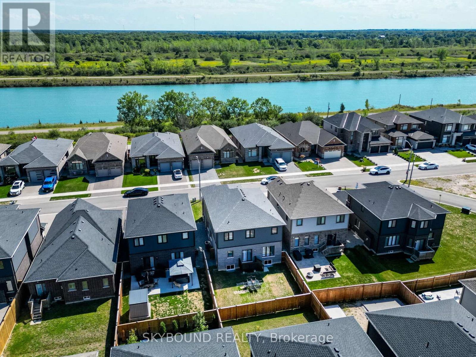 Welcome home to modern elegance on one of the most desirable streets near the historic Welland Canal in the prestigious Hunters Pointe neighbourhood. This luxurious 4-bedroom, 3.5-bathroom home with over 3,600 sq ft of total space across all three levels including the basement has everything today's buyers are seeking. Built in 2021, this home has since been impeccably upgraded beyond builder-basic finishes. Step inside to a bright open-concept layout where the family room with an electric fireplace serves as a striking centerpiece for family gatherings. The eat-in kitchen is a chef's dream featuring a large island, new quartz countertops, a large sink with garburator, stainless steel appliances, a gas stove, and sliding doors leading to the fully fenced backyard.The dining room flows seamlessly into the living room, creating a bright and inviting space perfect for entertaining and everyday living.Upstairs, the primary bedroom offers a luxurious retreat with a spa-inspired 5-piece ensuite featuring double sinks, quartz countertops, a glass shower, soaker tub, a generous walk-in closet, and wardrobes.Thoughtful upgrades include modernized bathrooms with new plumbing fixtures, countertops and lighting, new day-and-night blinds in the bedrooms and hallway, California shutters on the main floor, a designer front door, a security alarm and camera monitoring system.The basement is partially finished with a 3-piece bathroom, while the remaining space is ready for your personal design.Additional features include second-floor laundry, direct access to the garage from the main floor, a convenient side entrance, and an owned tankless water heater. Discover your perfect haven just steps from the scenic waterways, nature trails, and views of the Canal, while benefiting from convenient access to Highway 406. Don't miss this exceptional home in a prime location! (id:50787)