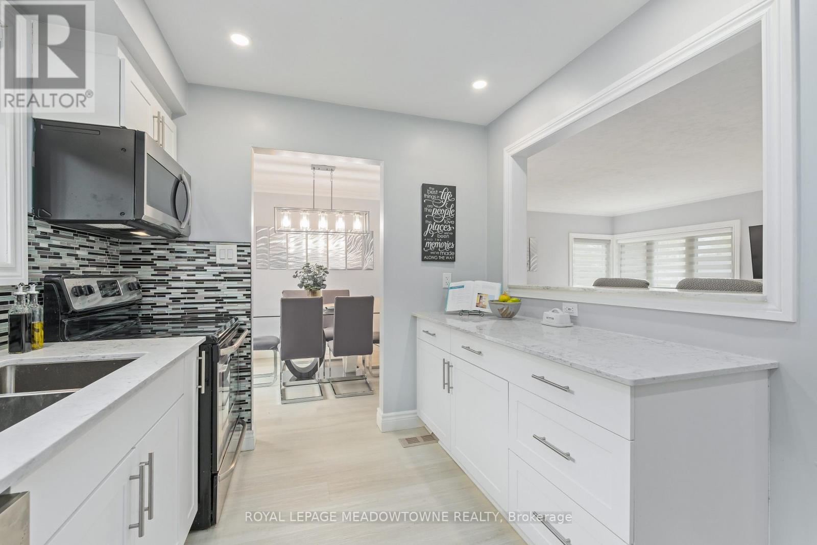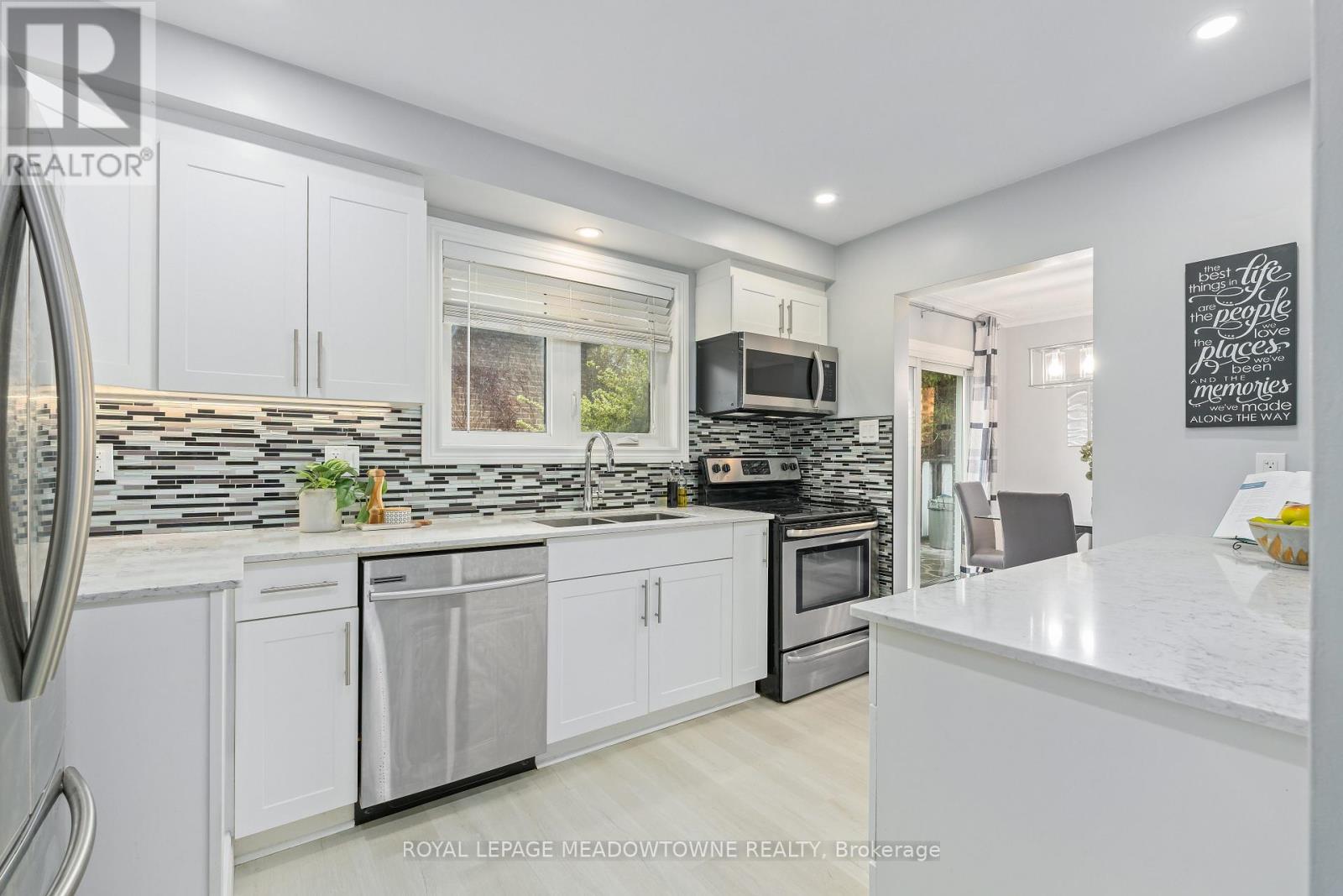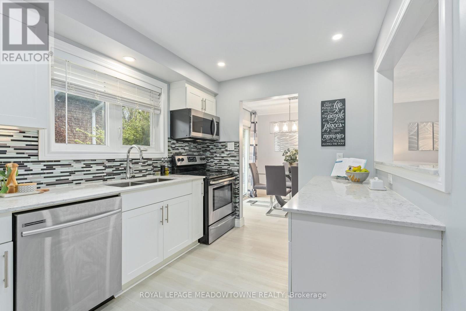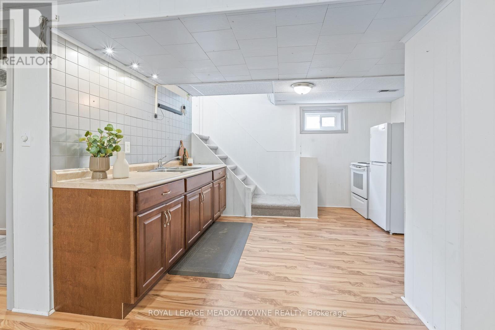 Charming, move-in-ready bungalow in the heart of town, thoughtfully updated with stylish modern finishes throughout. This inviting home offers a bright and functional layout, perfect for both everyday living and entertaining. The beautifully updated white kitchen features granite countertops, a classic ceramic backsplash, and ample cabinetry, all overlooking the living and dining areas. Large windows with quality window coverings flood the home with natural light, creating a warm and welcoming atmosphere. The dining room includes a convenient walkout to a private patio-ideal for outdoor dining, relaxing, or hosting guests. The main level offers three bedrooms and a renovated bathroom. The finished lower level adds incredible versatility, making it ideal for extended family, in-laws, or guests. With its own side entrance, this space includes a bedroom, full bathroom, and a kitchenette, along with plenty of room for a recreation area or additional living space. Recent updates include a water softener (2025) and air conditioning (2018). Outside, the property offers parking for up to six vehicles and a large, practical shed-perfect for storage, hobbies, or tools. Ideally located close to shopping, excellent schools, parks, and the mall, this home offers both convenience and lifestyle. A fantastic opportunity to own a well-maintained, updated bungalow in a prime location-simply move in and enjoy! (id:50787)