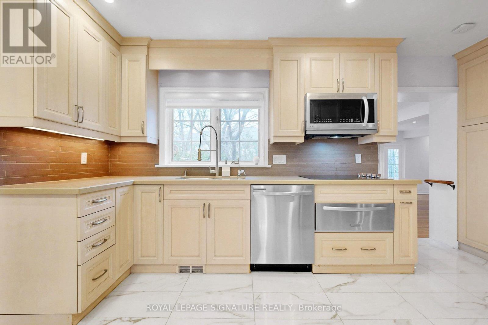 Welcome To 24 Laureleaf Road, an exquisite and charming home located in the distinguished neighbourhood of Bayview Glen. Move into the neighbourhood that brings luxurious living, top rated schools and expansive parks, all in one private enclave of beauty and prominence. This home is ideal for both family living and entertainment. The incredible sized lot is one that is hard to beat at 130 X 157 ft. The interior of the home boasts upgrades and finishes that are both stately and timeless. Beautiful hardwood floors adorn almost every corner of the home, each washroom has been upgraded with modern finishes and touches, the kitchen is equipped with modern stainless-steel appliances and stone countertop and flush mount pot lights. Convenience and ease also factor into this elegant home with laundry facilities available both on the second floor and in the traditional basement laundry room. A truly great room with a fireplace is where your entire family will gather to enjoy and celebrate holidays and togetherness. The Primary bedroom features an ensuite washroom and large walk-in closet. The basement is finished with a full bathroom and plenty of space for guest or kids play area or home gym. The three-car parking garage provides plenty of space and height for anything you may park or store. The backyard feels like you are in your own private outdoor retreat. There is plenty of room for a pool and still have green space and patio space for your summer barbecues. A new roof (2025) and newly installed irrigation system complete with investment in sublime landscaping that puts your mind and soul at ease. If moving in is not what you are looking for, the potential for building your own custom home is there for you if you choose to with a large total gross lot size of over 15,000 sqft. Your opportunities abound with what you can do at 24 Laureleaf but it is a rare opportunity to acquire a gem like this one. (id:50787)