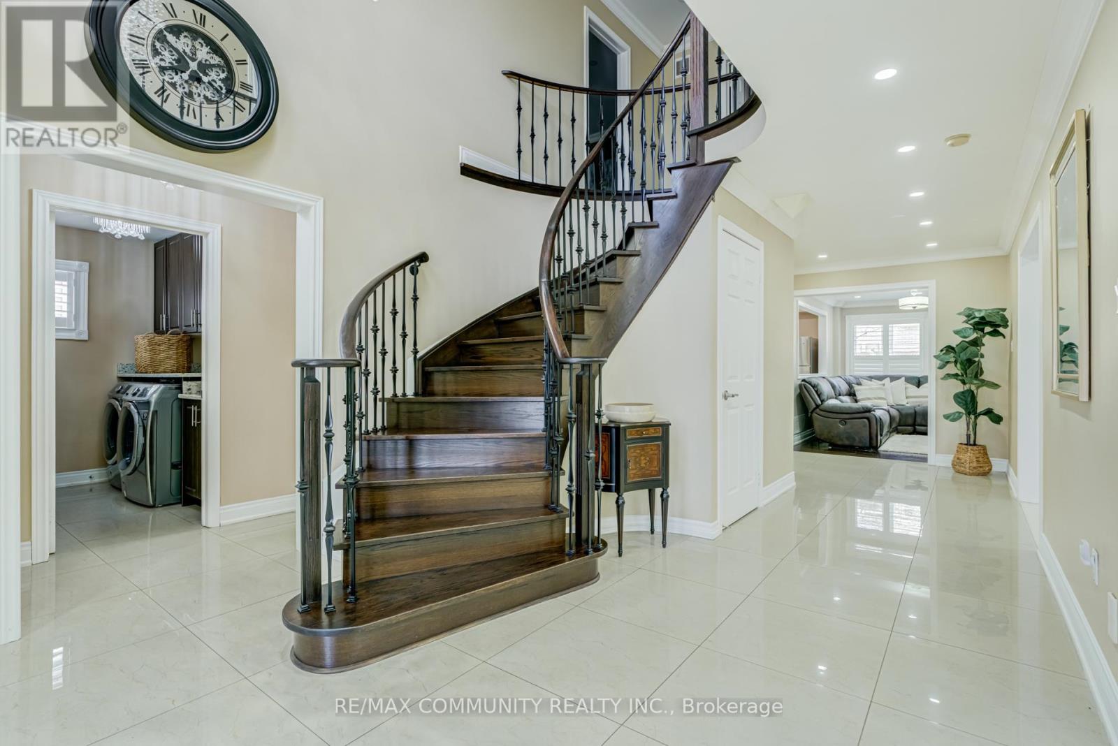Impeccably Maintained Executive 2-Storey Detached Home in One of Markham's Most Sought-After Communities. Situated on an impressive 55 ft wide lot, this rare offering is one of the largest executive models in the area, featuring approximately 3,469 sq ft above grade plus a fully finished basement - offering over 5,100 sq ft of total living space. Step into a grand double-door entry that opens to a stunning interior highlighted by a dramatic spiral staircase, pot lights, crown moulding, and smooth ceilings throughout the main and second levels. The expansive open-concept living and dining areas create the perfect setting for entertaining and family gatherings. The gourmet kitchen showcases upgraded cabinetry, granite countertops, and a walk-out to a beautifully interlocked backyard - ideal for seamless indoor-outdoor living. Retreat to the spacious primary bedroom featuring an oversized walk-in closet and a fully renovated 5-piece ensuite, complete with a premium full stone shower panel for a spa-like experience. The basement offers a separate entrance and includes 1 bedroom, a 4-piece bathroom, and a rough-in for a kitchen. Equipped with a video doorbell system and approved for business use by the City of Markham, it presents excellent potential for a home-based business or additional living space. Unbeatable location - just a short walk to major shopping including Walmart, RONA, and a wide variety of restaurants, offering ultimate everyday convenience. Ideally located close to top-rated schools, parks, and public transit. (id:50787)