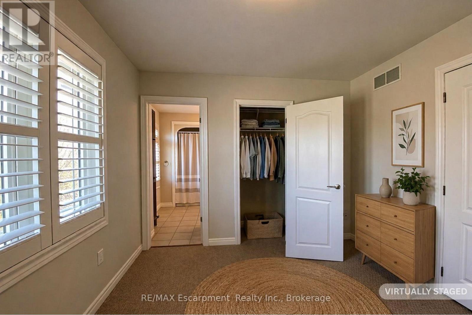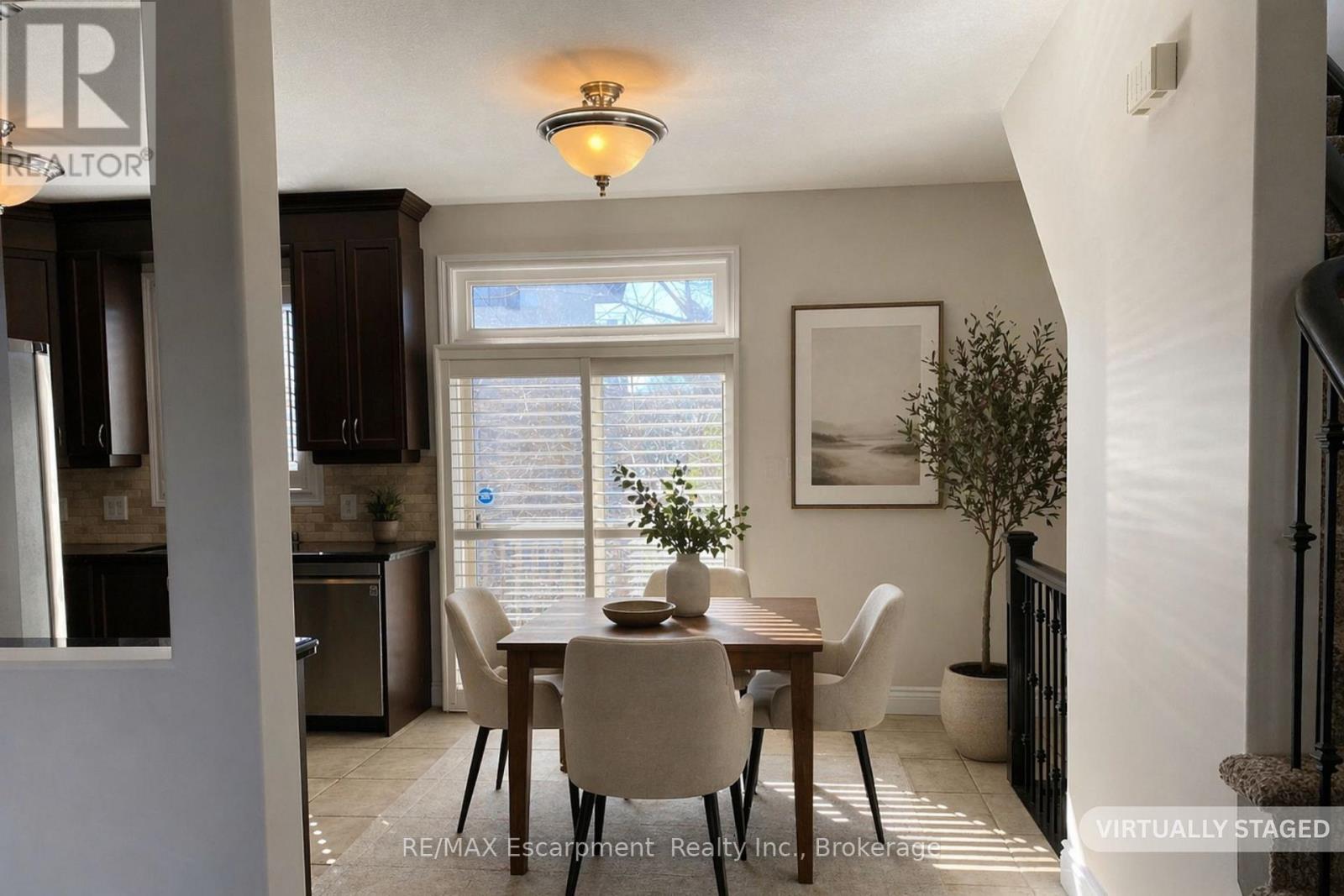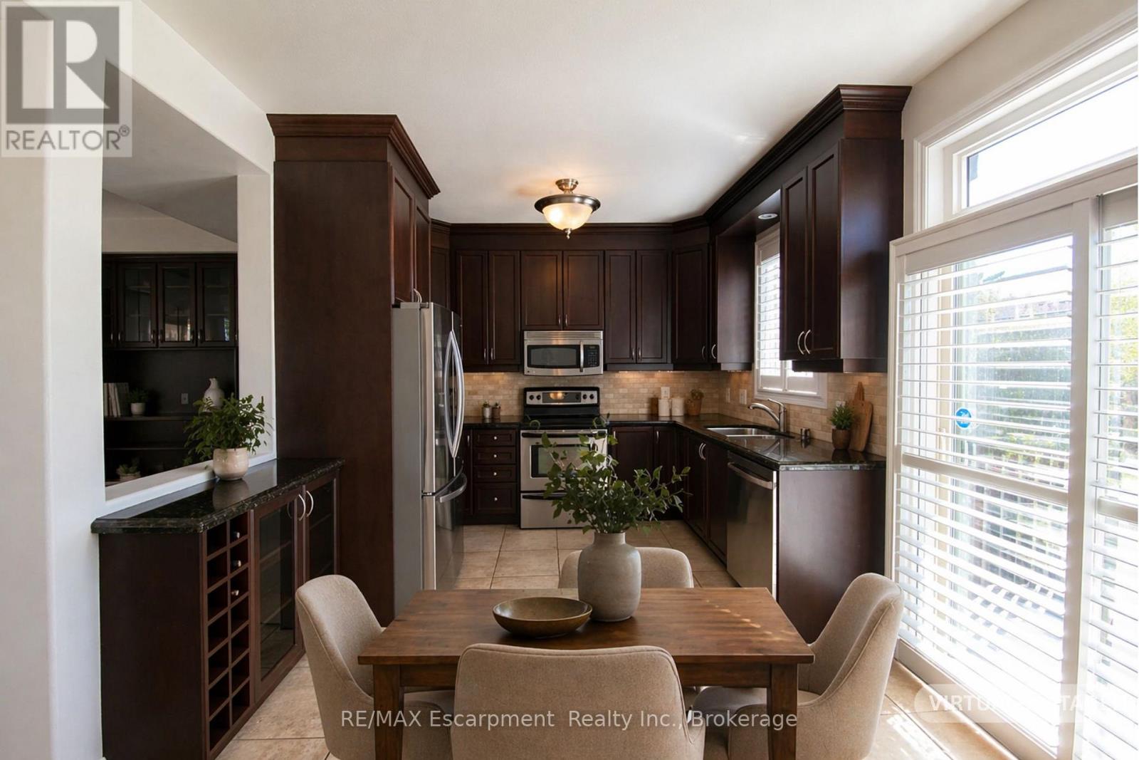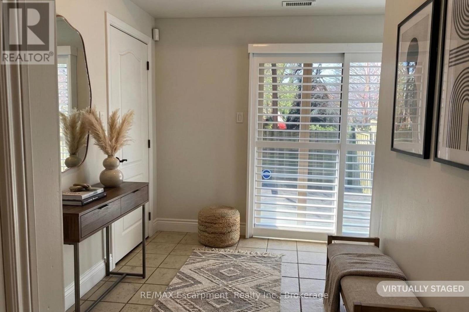 Beautiful and RARE FREEHOLD, END UNIT townhome in South Central Burlington. Walking distance to the lake, Spencer Smith Park and downtown! Offering 2 beds and 2 + 1 baths. This spacious, bright property functions more like a semi detached than a townhome, offering a wrap around covered porch, side yard access to the back and tons of extra sunlight from its side windows! The entry level provides a large foyer with 2 closets, a powder room, direct access to the garage, and a bonus space for an office or gym with a walk out to a private enclosed backyard. Climb the staircase to the second level, which features iron pickets, cut outs for decorative items and a large window. Here you will find high ceilings, a large eat-in kitchen with granite counters and stainless steel appliances, plus a walk out to a private BBQ deck where on a clear day with the leaves off the trees you can get a view of the water! The kitchen and dining space naturally flows into a wide living room with hardwood floors, grand windows and a built in cabinet that can accomodate a 60 inch TV. The bedroom level provides 2 large bedrooms, each with their own ensuite bathroom, lots of closet space (deep walk -in closet in one) and convenient upstairs laundry! Owned Tankless Water Heater. Roof 2020. Perfectly situated. Close to all amenities, hospital, transportation, parks, and schools. From its romantic porch to it's lovely stone facade and large corner lot with gardens, this property is sure to delight any buyer! A++ Professionals in Place as Tenants are month to month but willing to stay. (id:50787)