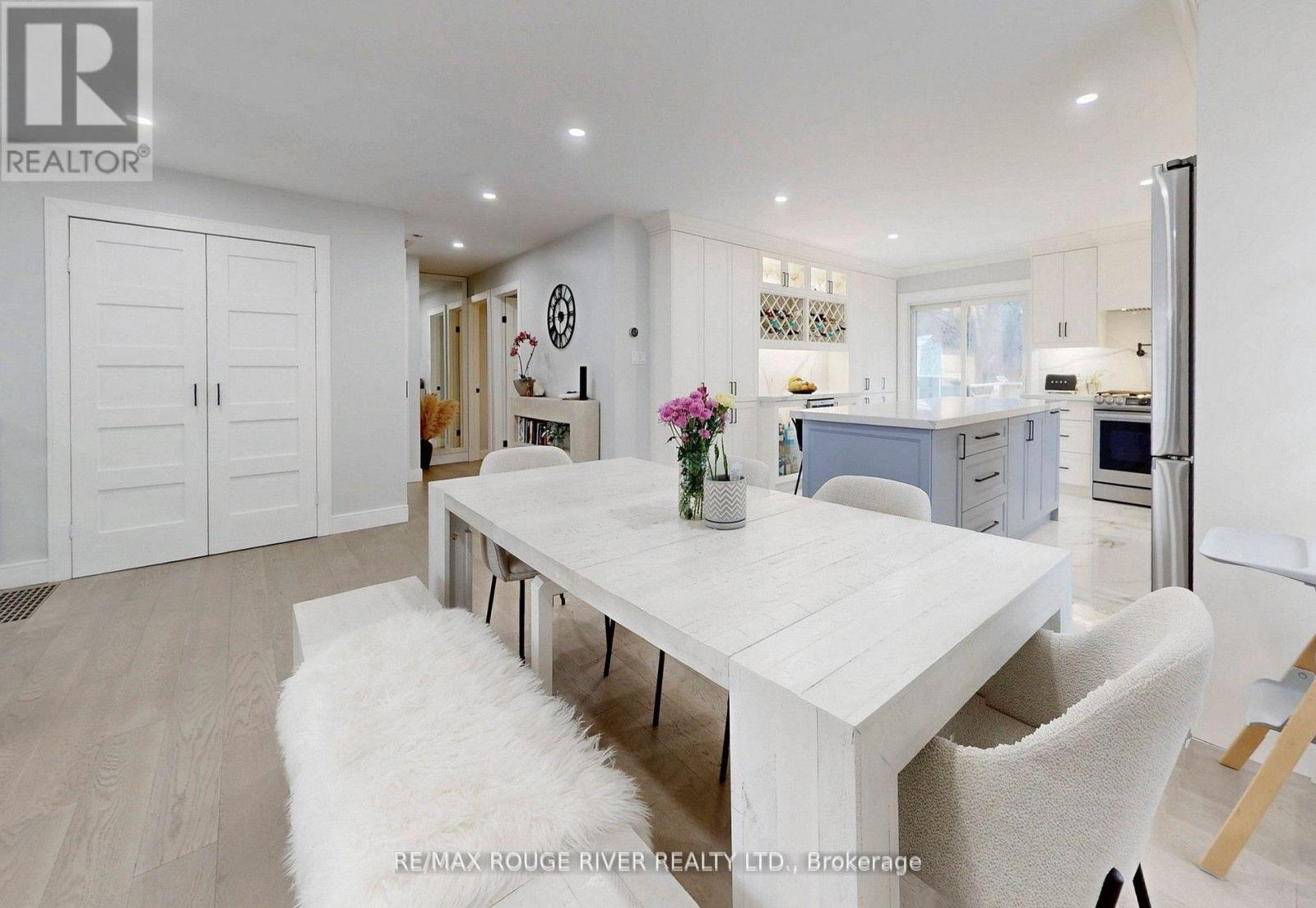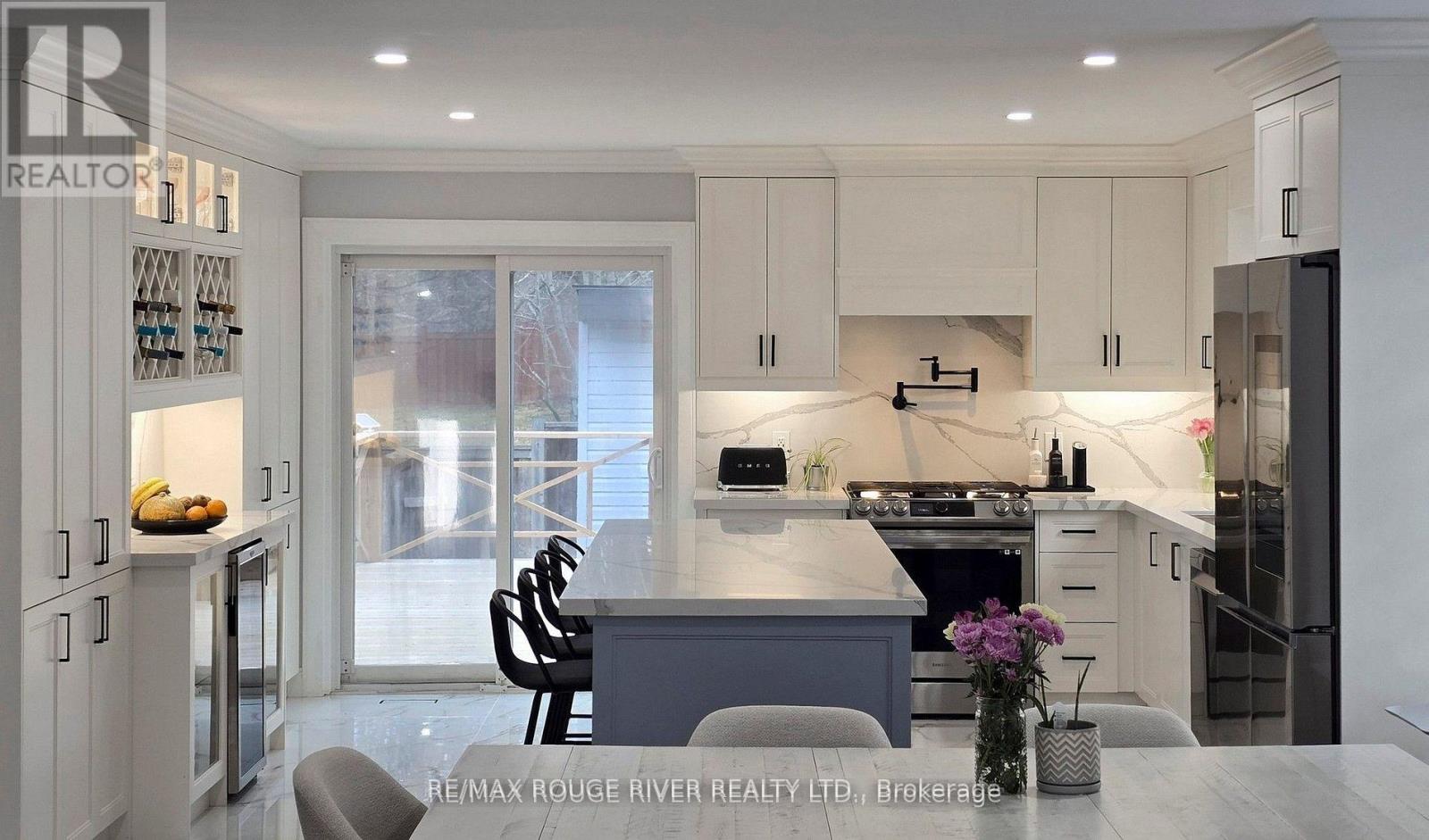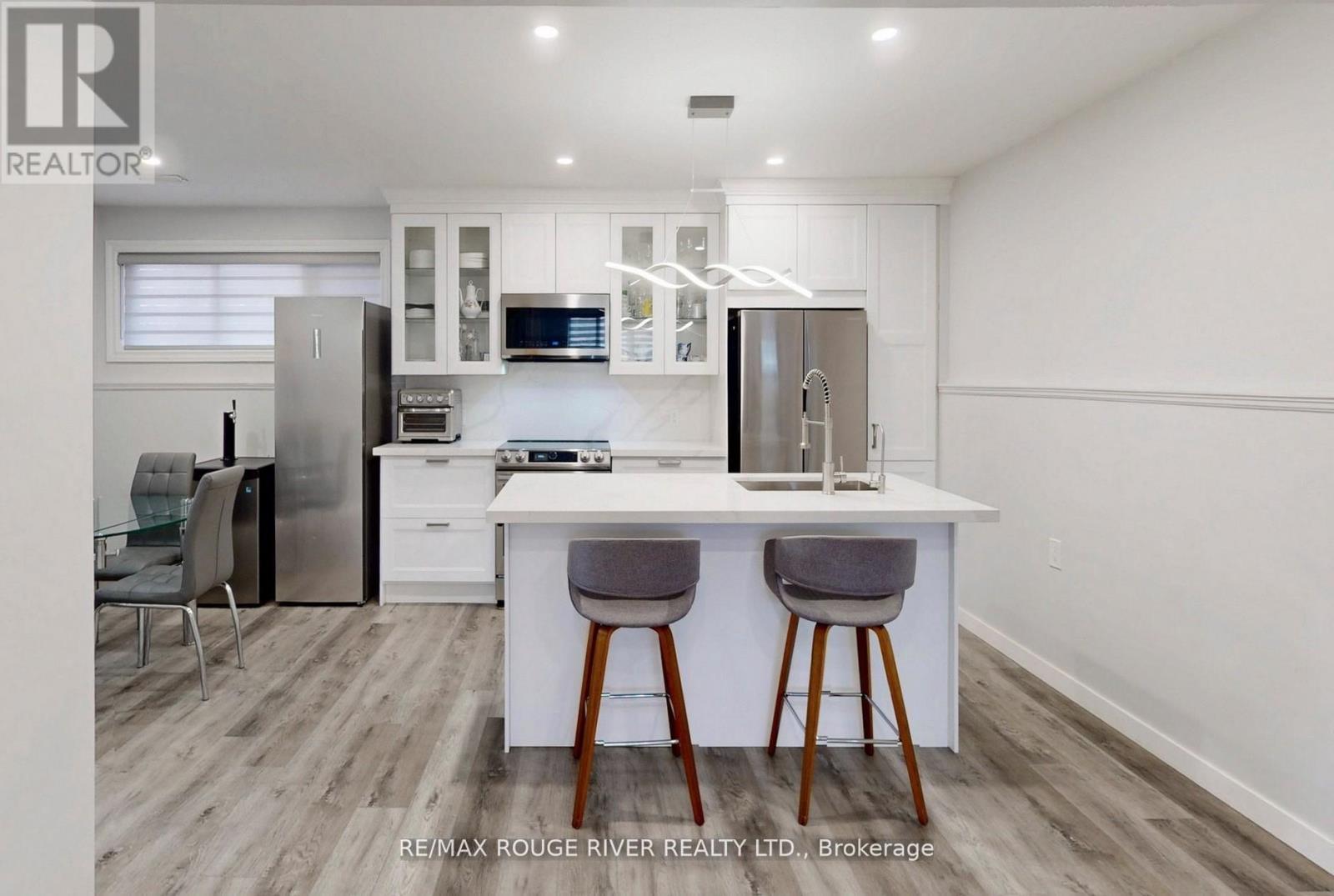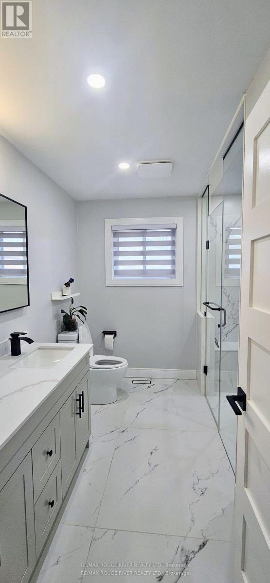 Welcome to this beautifully updated 3+1 bedroom, 2 full bath fully renovated and modern raised bungalow, perfectly situated on a large sun-filled lot, with a stream running along the north side offering a sense of tranquility. Parking for up to five vehicles, a generous backyard, greenhouse, spacious shed with electrical power, and a newly renovated deck (2024). This property is designed for both relaxation and functionality. Step inside to discover a thoughtfully designed open-concept main floor where style meets comfort. The custom open concept kitchen is a true showstopper, featuring luxurious finishes, quartz countertops, crown molding, gas range, pot filler, bar fridge, built-in wine rack, and a large island with an integrated breakfast bar-ideal for casual meals or entertaining guests. The seamless flow into the dining and living areas is accented by engineered hardwood flooring throughout creating a warm and inviting atmosphere. Unwind in the spa-inspired modern 3-piece bathroom complete with heated floors, dual sinks, and a spacious walk-in shower-your personal retreat at the end of the day! The professionally finished lower level offers incredible versatility with a separate ground-level entrance, high ceilings, and above-grade windows that flood the space with natural light. This level includes a large recreation room, an additional bedroom, 3 piece bathroom, and a modern kitchen with updated stainless steel appliances, making it perfect for multi-generational living or excellent income potential. A rare opportunity to own a home that truly combines comfort, elegance, and flexibility in a serene natural setting. (id:50787)