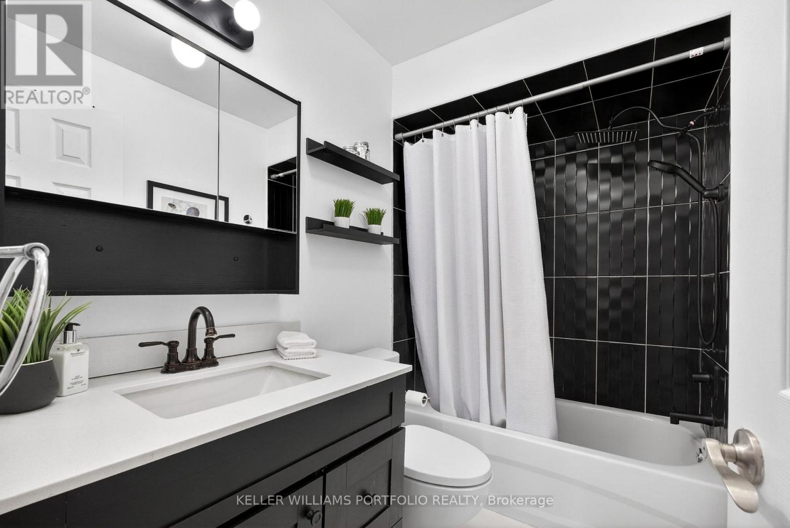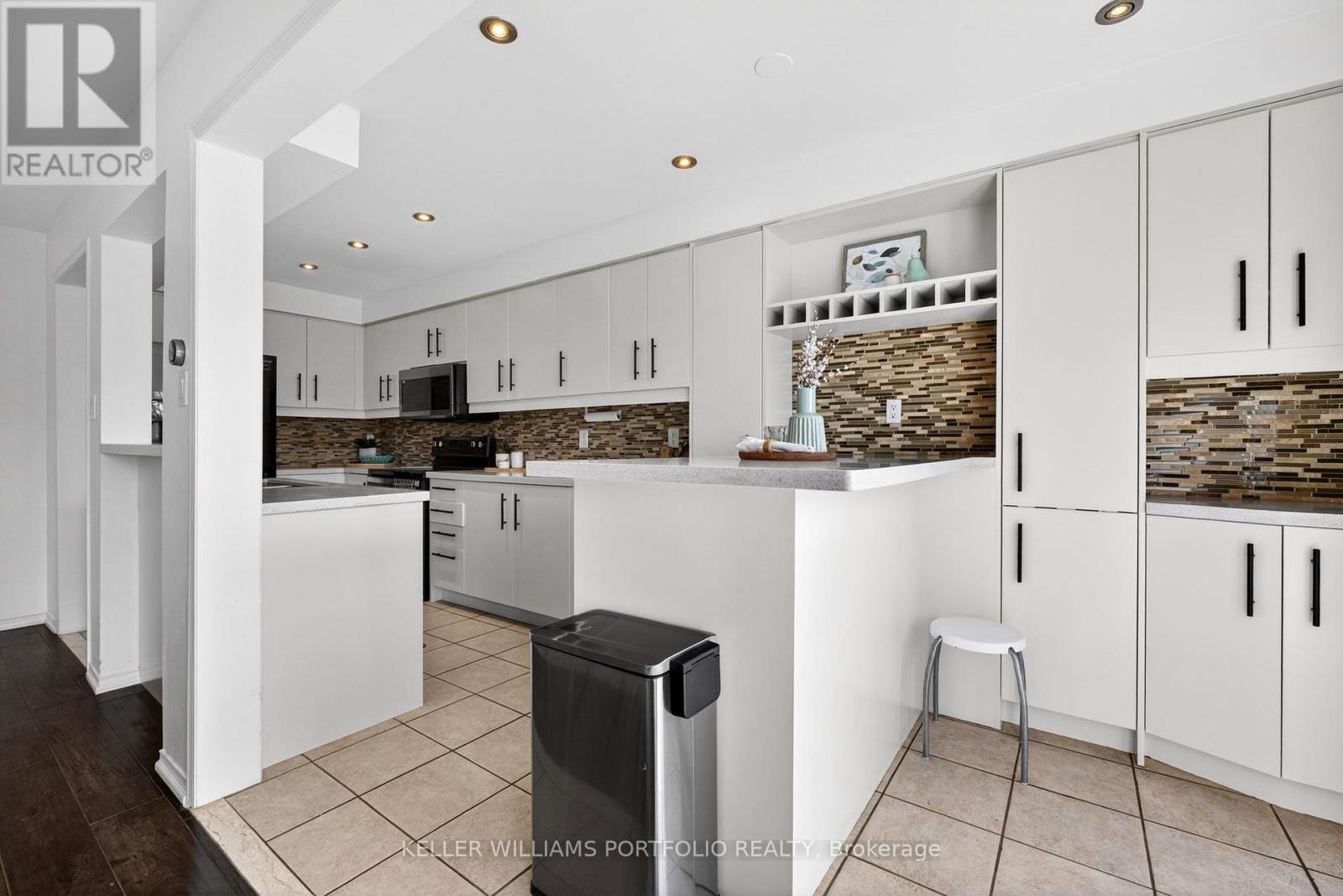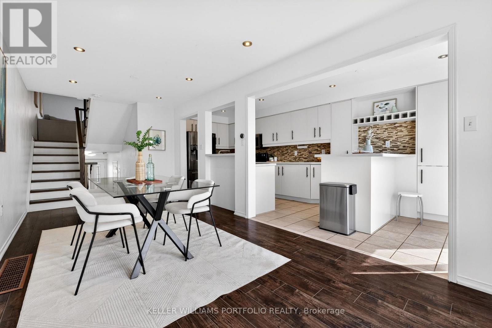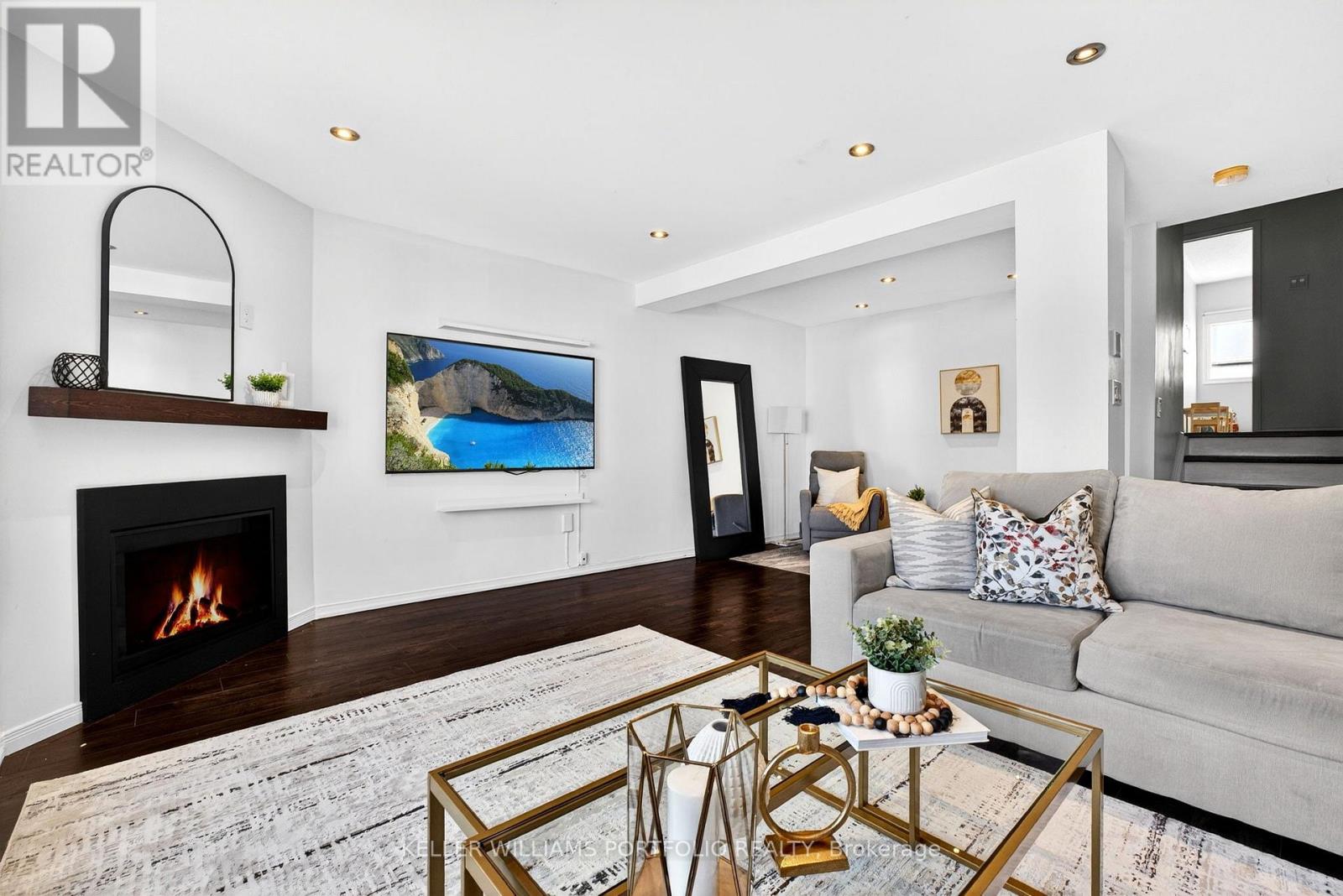 Space to grow, comfort to stay. There's a certain ease that comes with having the right amount of space in all the right places-and this Central Mississauga condo townhome delivers exactly that. Designed for growing families who need flexibility without sacrificing convenience, this 3+1 bedroom, 3-bath layout unfolds across multiple levels, creating natural separation between living, entertaining, and recharging.The main floor brings everyone together. An updated kitchen with quartz countertops and a breakfast bar flows seamlessly into the dining area, making everyday moments - morning routines, homework sessions, casual dinners-feel connected and effortless. Step out to your private deck and shared green space, where kids can burn off energy while you unwind or host a relaxed evening outdoors.Upstairs, a spacious family room anchored by a gas fireplace offers a cozy setting for movie nights or quiet downtime. The additional rooms adapt as life evolves, whether you need extra bedrooms, a dedicated office, or creative space. At the top, the primary suite feels tucked away and peaceful, complete with a walk-in closet and private ensuite. This is a home that moves with you, thoughtfully designed for real life, in a location that keeps everything within reach. Engineered hardwood throughout. (id:50787)