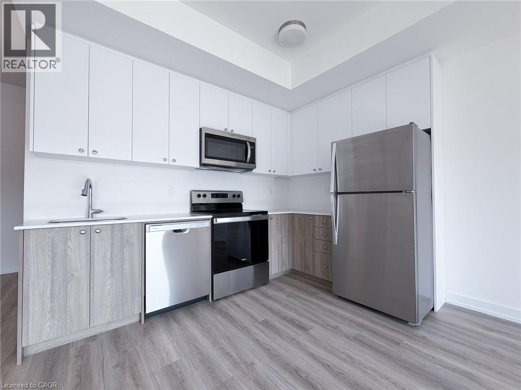 Welcome to this brand new, never lived in stacked townhome available for rent in one of Kitchener’s most desirable areas. This modern unit offers 2 bedrooms and 2.5 bathrooms with a bright open concept main floor designed for comfortable everyday living. The main level features a contemporary kitchen with stainless steel appliances, extended cabinetry, and quartz countertops that open to a spacious living area. A sliding door provides access to a private balcony, perfect for enjoying your morning coffee or relaxing in the evening. A convenient powder room is also located on the main floor. Upstairs you will find the primary bedroom with its own ensuite bathroom with glass shower. The second bedroom is served by a separate full bathroom on the same level. Laundry is also conveniently located upstairs. Ideally situated close to public transit, shopping, banks, schools, parks, walking trails, and other everyday amenities, with quick access to major highways for an easy commute. (id:50787)