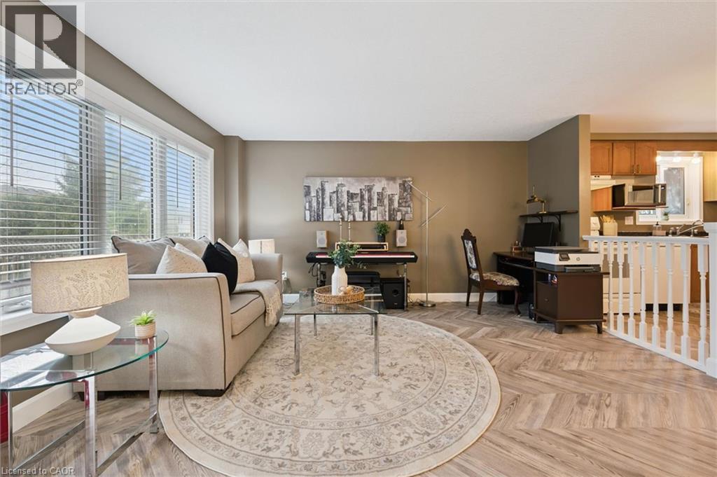 NO CONDO FEES! Beautiful END UNIT, freehold townhouse in a prime Waterloo location! Attached only on the one side, allowing for easy backyard access and backing onto a walkway. This lovely home offers added privacy and a spacious open concept layout. Ideally situated close to both universities, Uptown Waterloo, Downtown Kitchener, major highway access, grocery stores, Tim Hortons, and more. From the moment you arrive, you'll notice the impressive curb appeal featuring, a stamped concrete with double wide driveway and exposed aggregate concrete accents fits 4 cars. Inside, the main floor features new flooring (2026), a convenient 2-piece bathroom, and a bright open-concept layout with a functional kitchen, island, and dining area. The spacious living room offers double glass doors leading to the private backyard. Upstairs, you'll find 3 spacious bedrooms, including a primary bedroom with vaulted ceilings and a large walk-in closet. The updated 5-piece bathroom features double sinks and a new vanity. The finished basement adds even more living space with a cozy rec room, a 3-piece bathroom with a new vanity, laundry area, and plenty of storage. Freshly painted with modern décor throughout, this move-in ready home is a must-see! (id:50787)