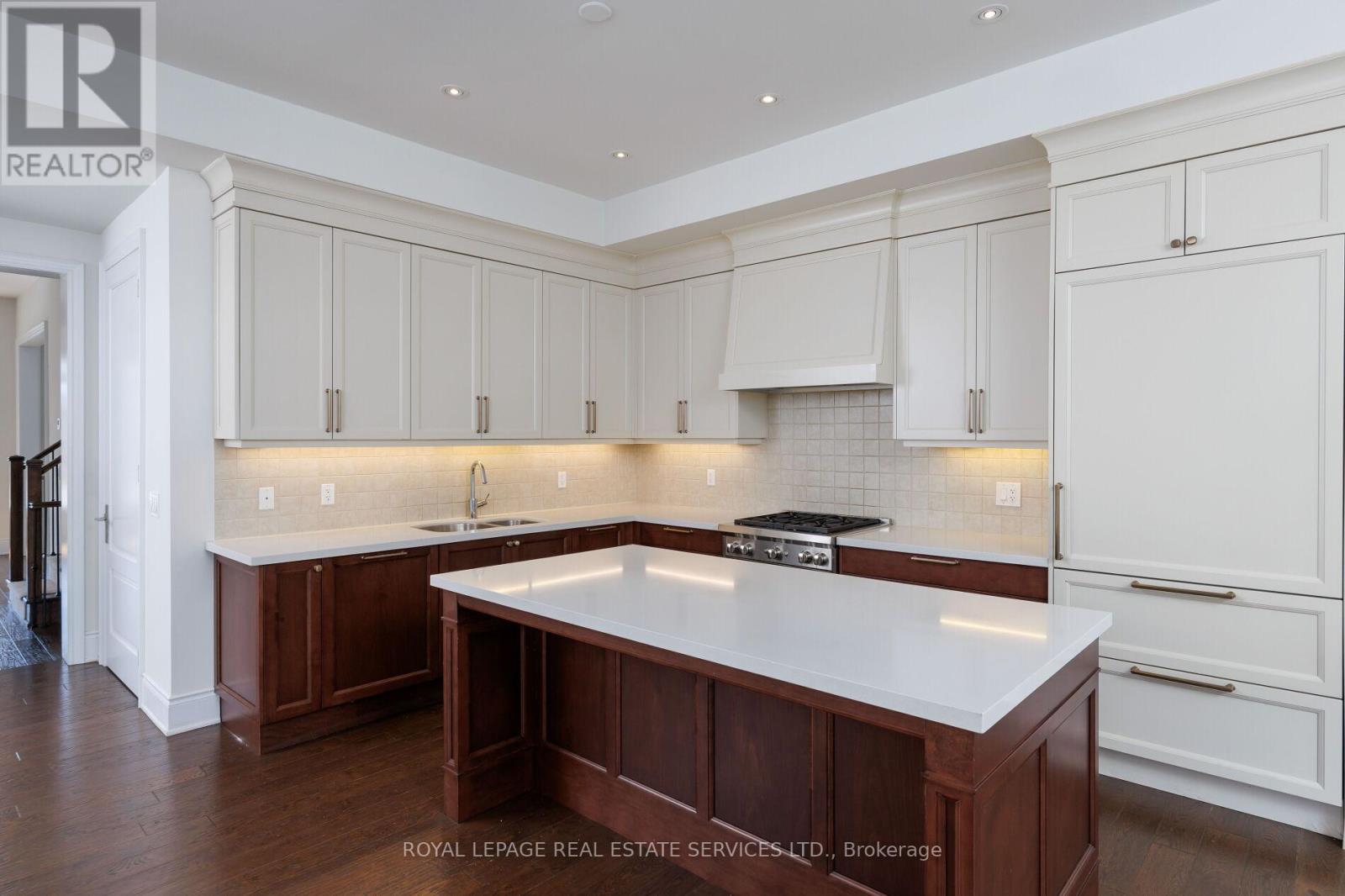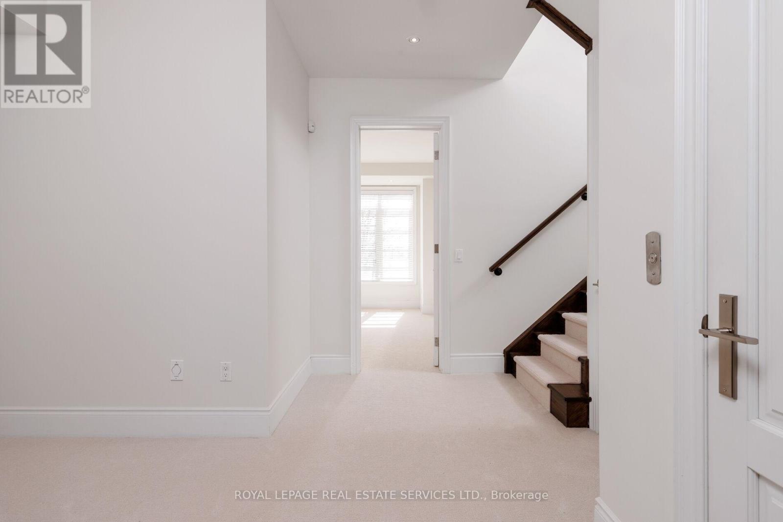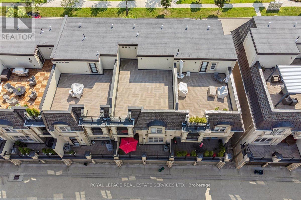 Location and luxury converge in central Oakville's prestigious Royal Oakville Club, where this exceptional Fernbrook-built designer townhome showcases sophisticated living space, complete with a private elevator, three walkouts, and an expansive rooftop terrace ideal for upscale entertaining. Superior craftsmanship is evident throughout, with hand-scraped hardwood flooring, 9' and 10' ceilings, deep baseboards, an elegant oak staircase with iron pickets, pot lighting, designer tiles, and stone countertops. The main level offers grand principal rooms, including an oversized formal living/dining room and an impressive family room that share a striking two-sided gas fireplace. Indulge in the chef-inspired kitchen featuring custom two-tone cabinetry with under-cabinet lighting, premium Sub-Zero and Wolf appliances, quartz counters, and a large island. The bright breakfast room opens to a partially covered terrace with composite wood flooring for effortless indoor-outdoor living. Upstairs comprises, three beautiful bedrooms, two full bathrooms, and a convenient laundry room. The luxurious primary retreat offers a private balcony, oversized walk-in closet, and spa-like 5-piece ensuite with freestanding soaker tub and a glass shower. The versatile ground level offers a fourth bedroom,new broadloom, wet bar, full 4-piece bathroom, and mudroom with inside access to the double garage. Enjoy sun-filled days and starlit evenings on the private rooftop terrace, all within walking distance to Lake Ontario, downtown Oakville, fine dining, cafés, and boutique shopping-an unparalleled blend of elegance, convenience, and lifestyle. (id:50787)