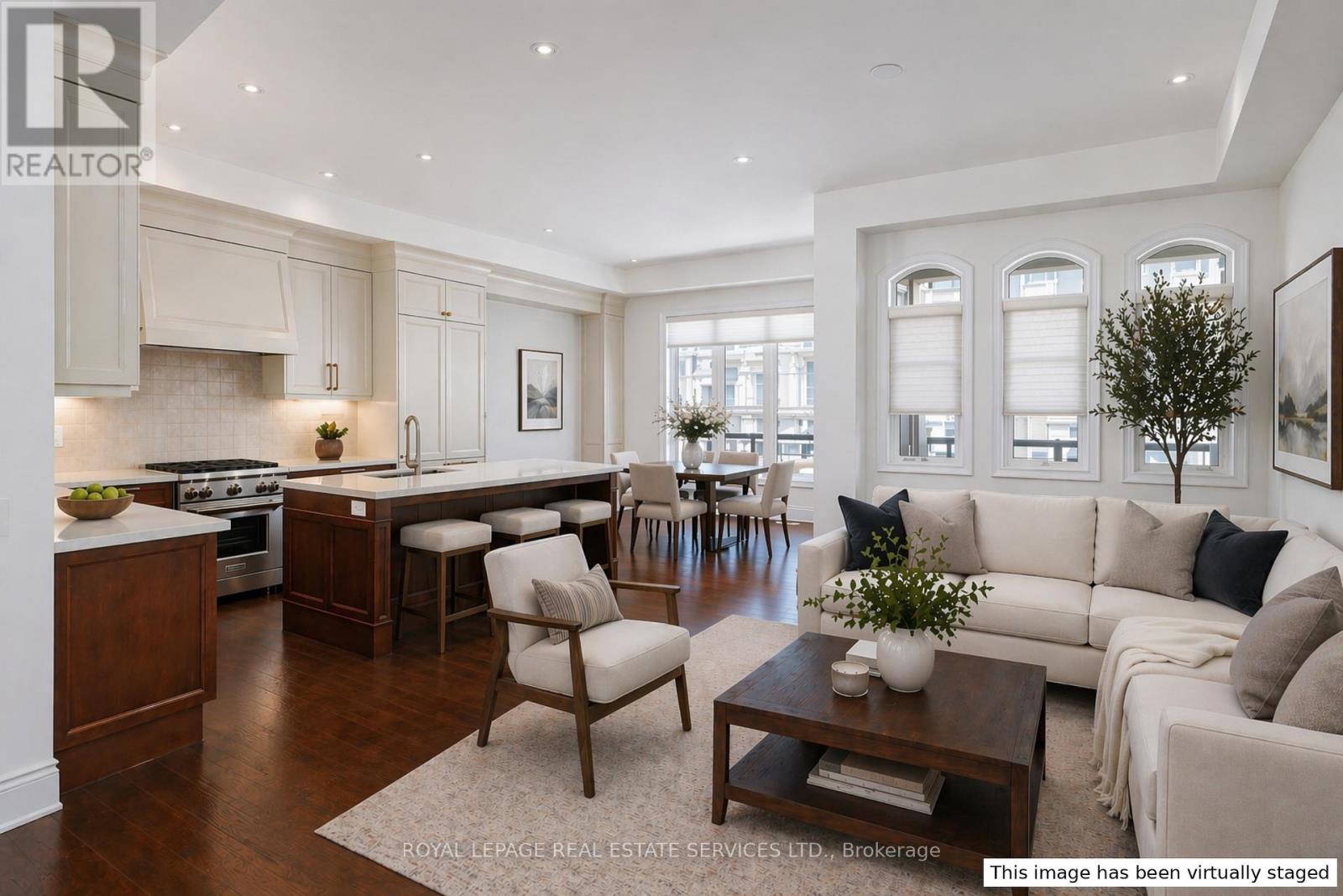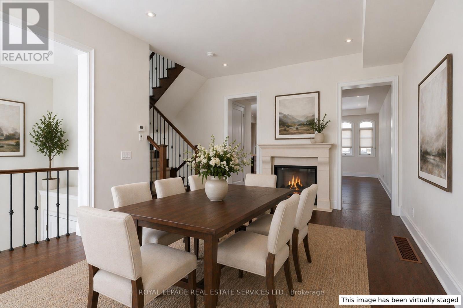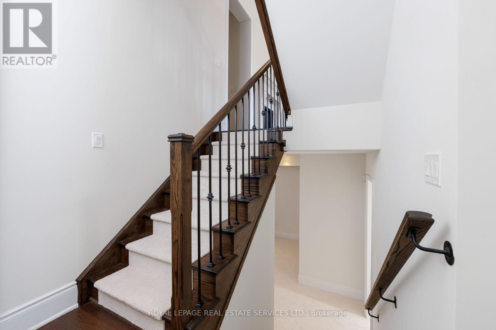 Location and luxury converge in central Oakville's prestigious Royal Oakville Club, where this exceptional Fernbrook-built designer townhome showcases sophisticated living space, complete with a private elevator, three walkouts, and an expansive rooftop terrace ideal for upscale entertaining. Superior craftsmanship is evident throughout, with hand-scraped hardwood flooring, 9' and 10' ceilings, deep baseboards, an elegant oak staircase with iron pickets, pot lighting, designer tiles, and stone countertops. The main level offers grand principal rooms, including an oversized formal living/dining room and an impressive family room that share a striking two-sided gas fireplace. Indulge in the chef-inspired kitchen featuring custom two-tone cabinetry with under-cabinet lighting, premium Sub-Zero and Wolf appliances, quartz counters, and a large island. The bright breakfast room opens to a partially covered terrace with composite wood flooring for effortless indoor-outdoor living. Upstairs comprises, three beautiful bedrooms, two full bathrooms, and a convenient laundry room. The luxurious primary retreat offers a private balcony, oversized walk-in closet, and spa-like 5-piece ensuite with freestanding soaker tub and a glass shower. The versatile ground level offers a fourth bedroom,new broadloom, wet bar, full 4-piece bathroom, and mudroom with inside access to the double garage. Enjoy sun-filled days and starlit evenings on the private rooftop terrace, all within walking distance to Lake Ontario, downtown Oakville, fine dining, cafés, and boutique shopping-an unparalleled blend of elegance, convenience, and lifestyle. (id:50787)