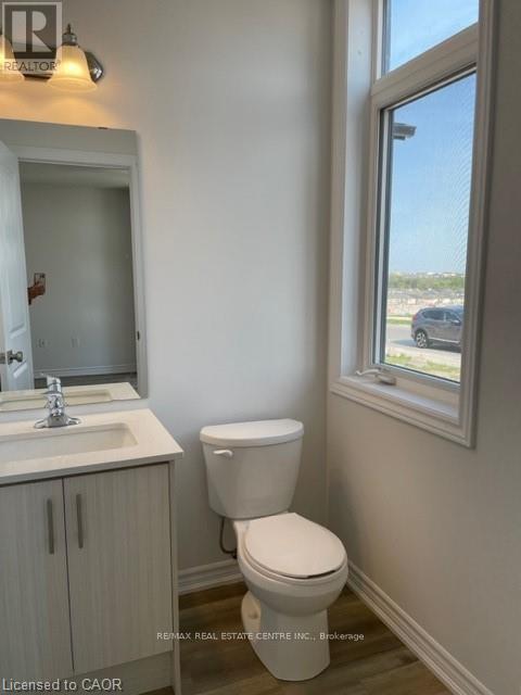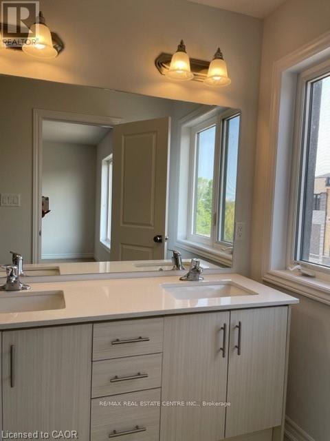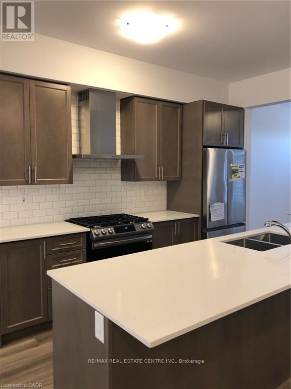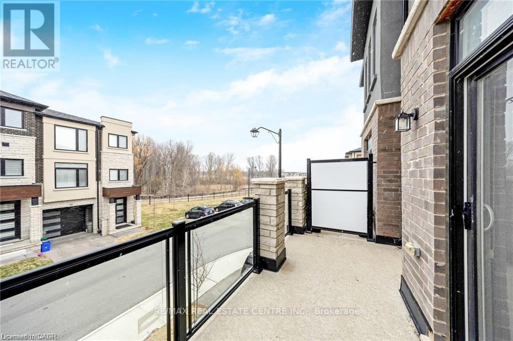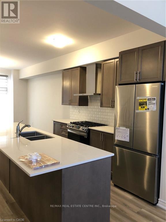 Welcome Home to this bright & beautiful Modern Executive 3 story Townhouse in Hespeler Cambridge. This luxurious home is tastefully upgraded featuring 3 Bedrooms + Den (ideal for an office space or a 4th bedroom) , 4 Washrooms, high ceiling, open concept contemporary layout, large balcony & parking space for 2 cars. The home features entrance from the front & rear side. The main floor offers a Den which can be put to multiple uses such as home office, entertainment room, family room, Den, Bedroom, ect. It also offers powder room with upgraded vanity with stone counter. The main floor offers extra storage space, closets, and access to the attached garage. The 2nd floor features a beautiful open concept layout with a big living room, upgraded kitchen with oversized breakfast island & pantry (upgrades include; tall cabinets, oversized island, solid countertop, modern backsplash, Stainless Steel Chimney, Stainless Steel Samsung Appliances including Gas Stove), dining area, walkout to beautiful balcony, second powder room & high ceiling. The 3rd floor offers Primary bedroom with upgraded En-suite (double vanity with solid countertop, standing shower with glass enclosure) & a big walk-in closest along with 2 other decent sized bedrooms & laundry. Thousands of $$ spent on tasteful upgrades for the tenant to enjoy and take pride in living (stair walls converted to railings for openness, all door & cabinet knobs & handles, kitchen & bathroom countertops, ensuite with standing shower & glass door, zebra blinds, auto garage door opener, water softener, to list few). The Common Element fees that the owner will pay includes snow removal & grass cutting of the common areas. Additionally, the following are included in the rent; High Efficiency Furnace, HRV, Air Conditioner, Tankless Hot Water Heater, Water Softener, Air Purifier & Smart Thermostat, Auto Garage Opener. Prime Location close to all amenities, schools, parks, trails, pond, shopping, restaurants, Expressway & HWY 401! (id:50787)