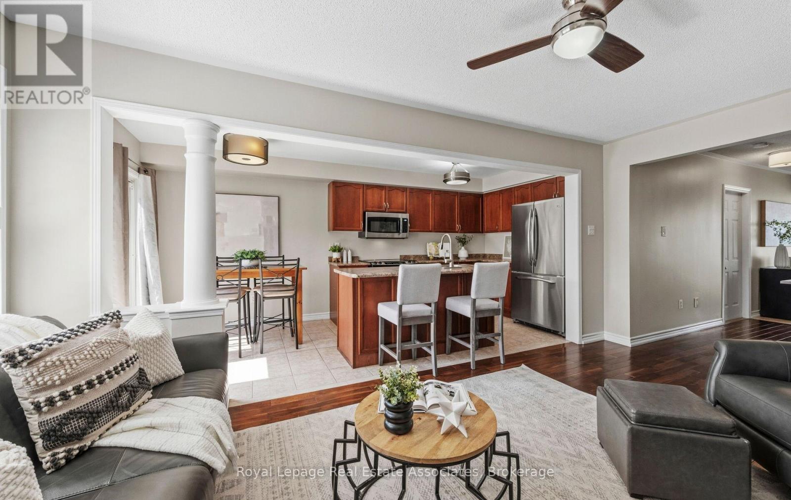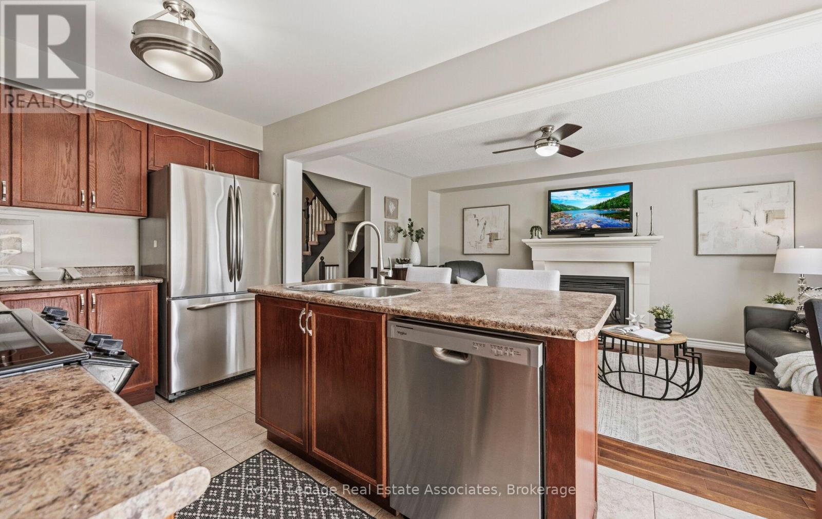 Stunning, meticulously maintained, and truly move in ready! This sun filled, all brick 3 bedroom, 3 bathroom semi-detached home is ideally situated on a quiet, family-friendly crescent in highly desirable Georgetown South. The home offers 3 generously sized bedrooms, including 2 spacious 4 piece bathrooms upstairs. (The ensuite in the primary bedroom and the main bathroom), checking all your boxes. The bright kitchen features a centre island, ample cabinetry and flexible space for both; a separate dining table or eating casually at the island. Beautiful upgrades include California shutters throughout and 3 fireplaces that provide exceptional warmth, while barely using the furnace in the winter - a cost savings. A convenient powder room on the main floor is one of everyone's favourite features along with garage access from inside the house. The open concept main floor is filled with natural light and features a walkout to a beautifully landscaped backyard with a deck, large patio area and gazebo, ideal for entertaining or relaxing outdoors. The professionally finished basement adds valuable living space, perfect for a playroom, home office, or cozy retreat, along with additional storage rooms for added convenience. Additional highlights include a large linen closet on the 2nd floor, central vac system and a driveway which is easy to widen. With no homes directly across, enjoy added privacy and abundant visitor parking. Unbeatable location in South Georgetown; just steps to parks, trails, schools, shopping, and the rec centre, with easy access for commuting. (id:50787)