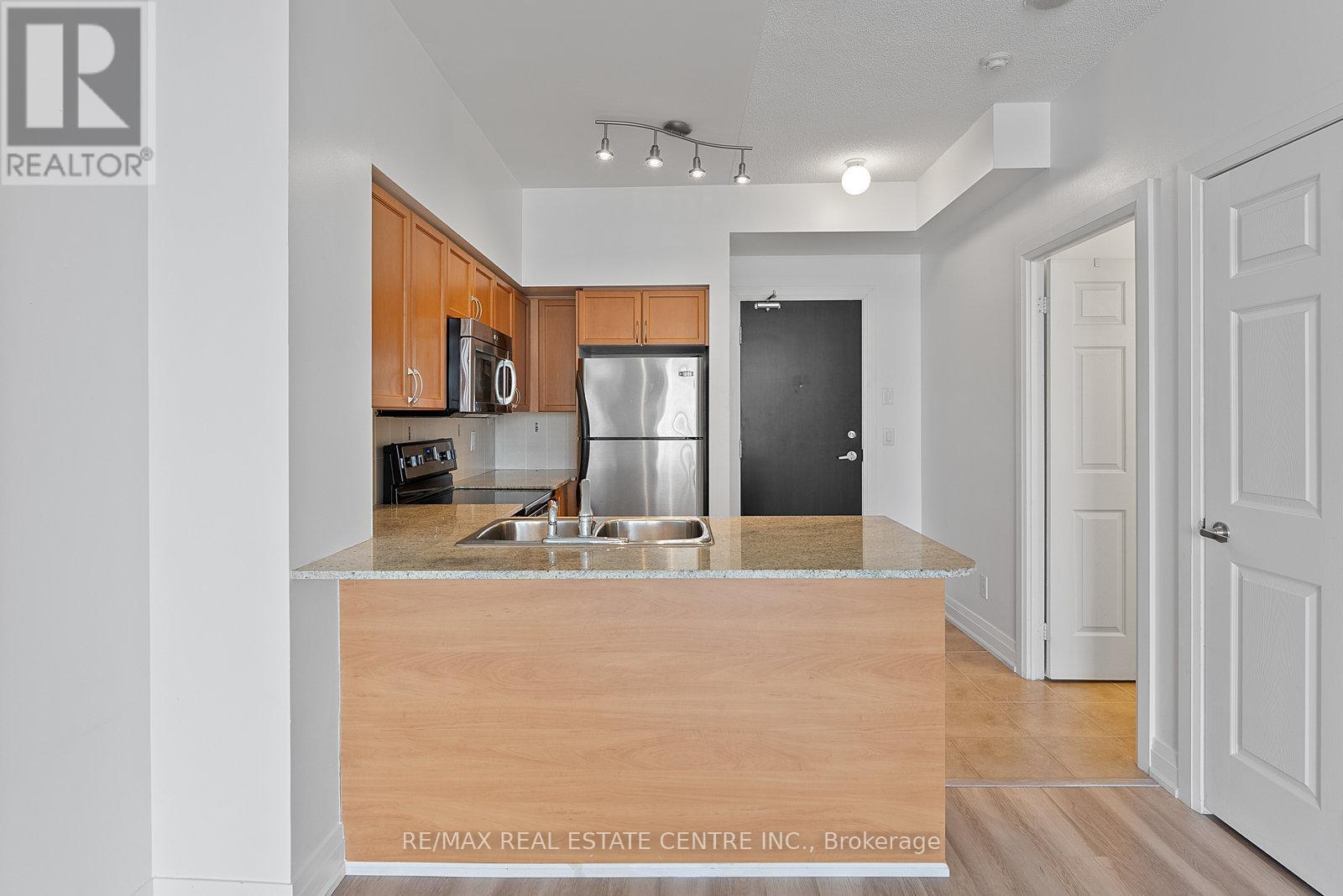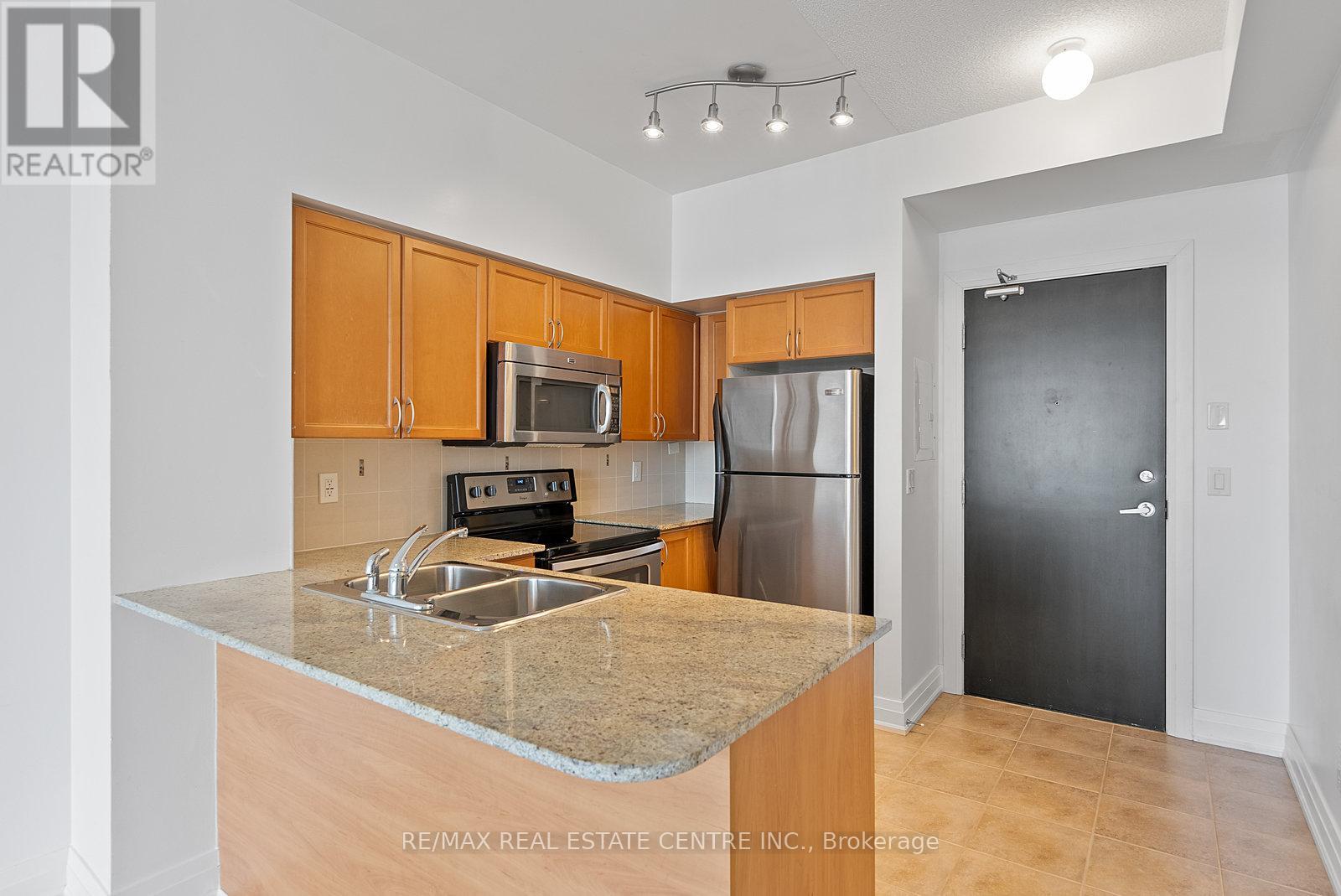 Live in the heart of Mississaugas vibrant City Centre! This bright and modern 1-bedroom condo on the 26th floor offers beautiful north-facing views and an open balconyperfect for enjoying sunsets. Featuring a functional open-concept layout with stylish vinyl flooring throughout, a sleek kitchen with granite countertops and stainless steel appliances, and a spacious bedroom with large windows for plenty of natural light. Enjoy top-tier building amenities including an indoor pool, gym, party room, guest suites, and more. Just steps from Square One, Celebration Square, Sheridan College, public transit, restaurants, and parks. Includes 1 underground parking spot and a lockerboth conveniently located on the same floor! (id:50787)