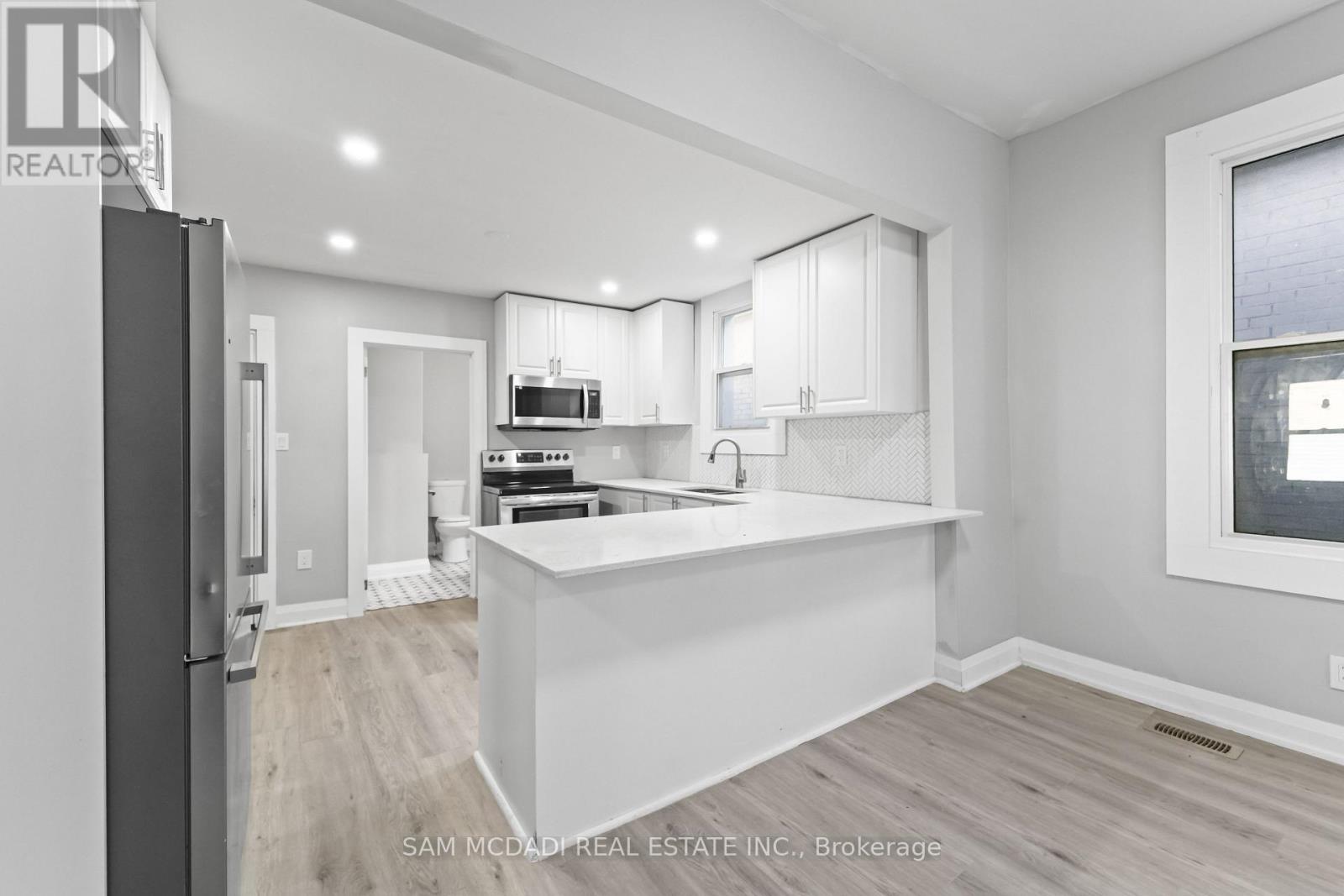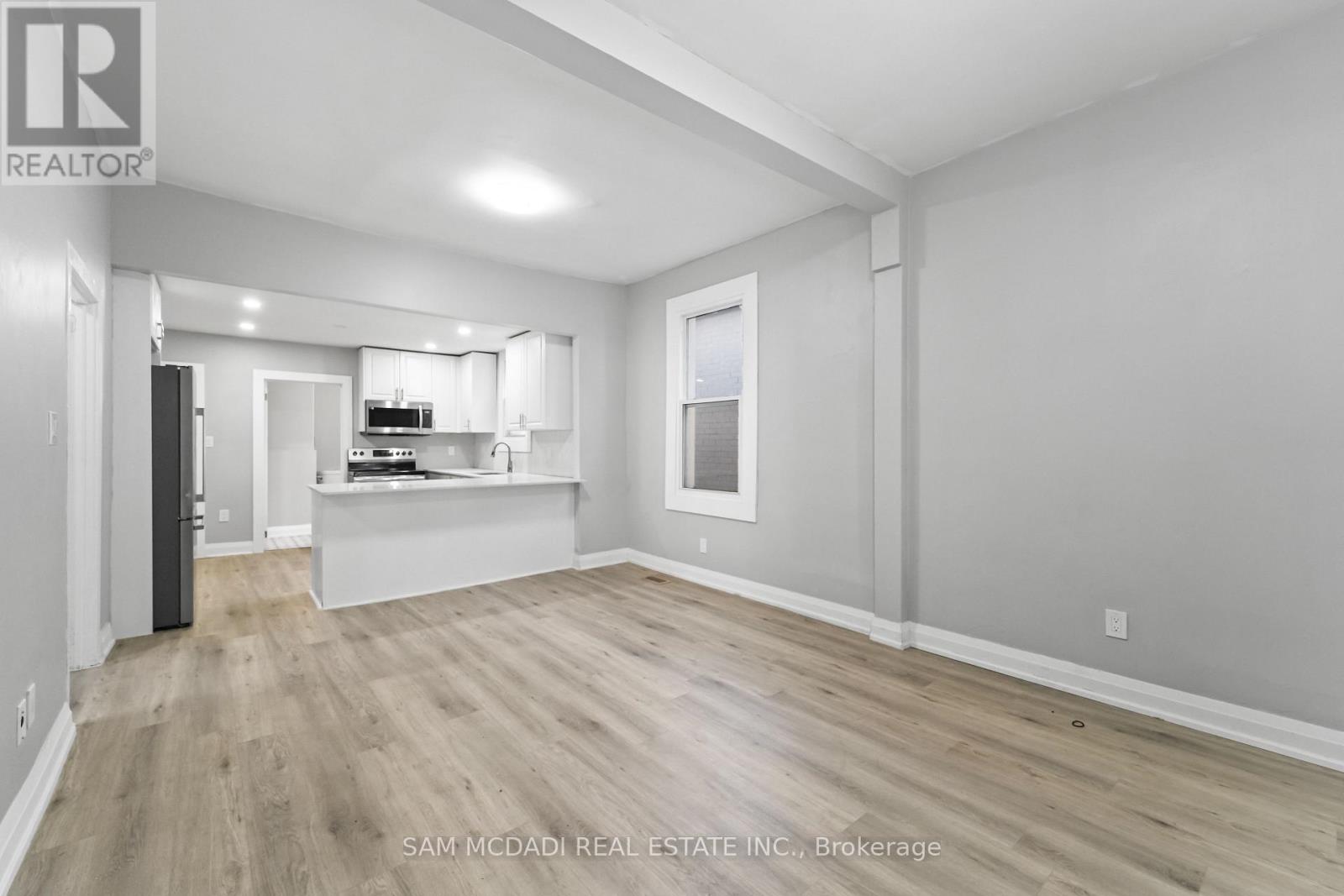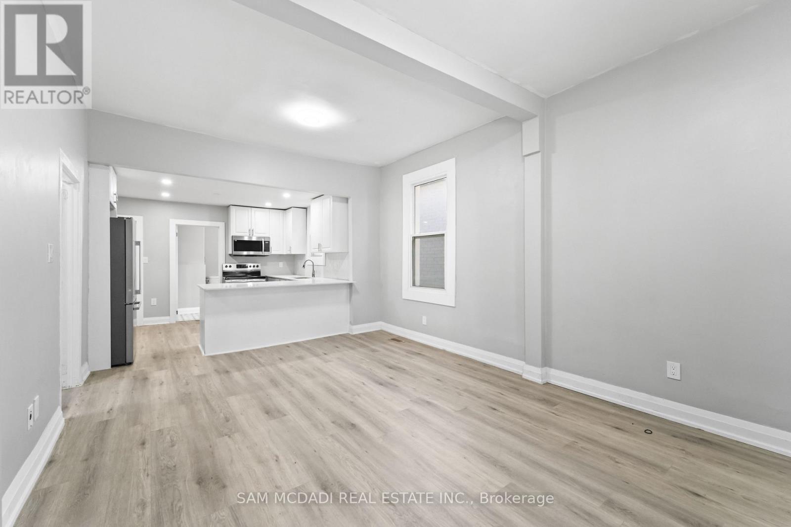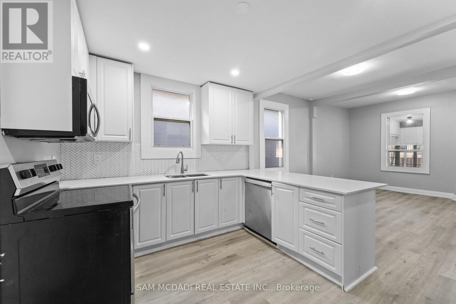 Welcome to this stunning, sun-filled home featuring a seamless open-concept layout and high ceilings throughout. The modern interior boasts premium laminate flooring and a chef-inspired kitchen complete with quartz counter top and a chic custom back splash. Each of the three spacious bedrooms includes ample closet storage, complemented by large windows that invite natural light. Enjoy the convenience of an upgraded 3-piece bathroom with a sleek standing shower. Outside, the massive driveway easily accommodates 4 vehicles.Note: Tenant to pay 60% of utilities. Shared Laundry. (id:50787)