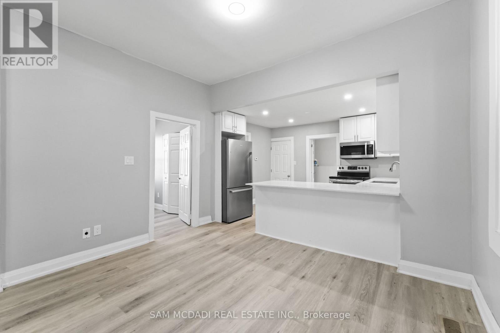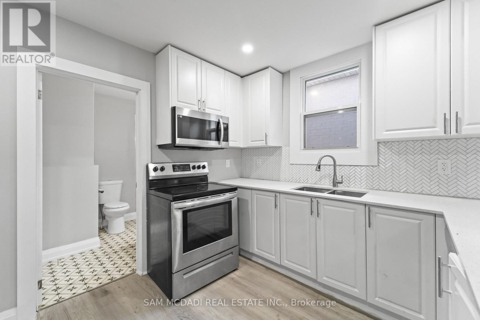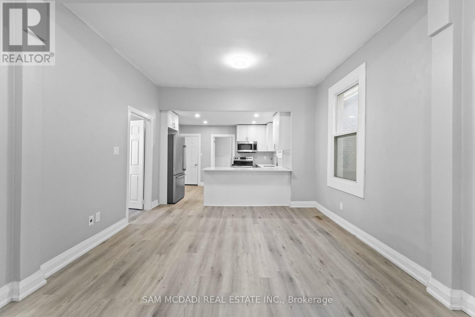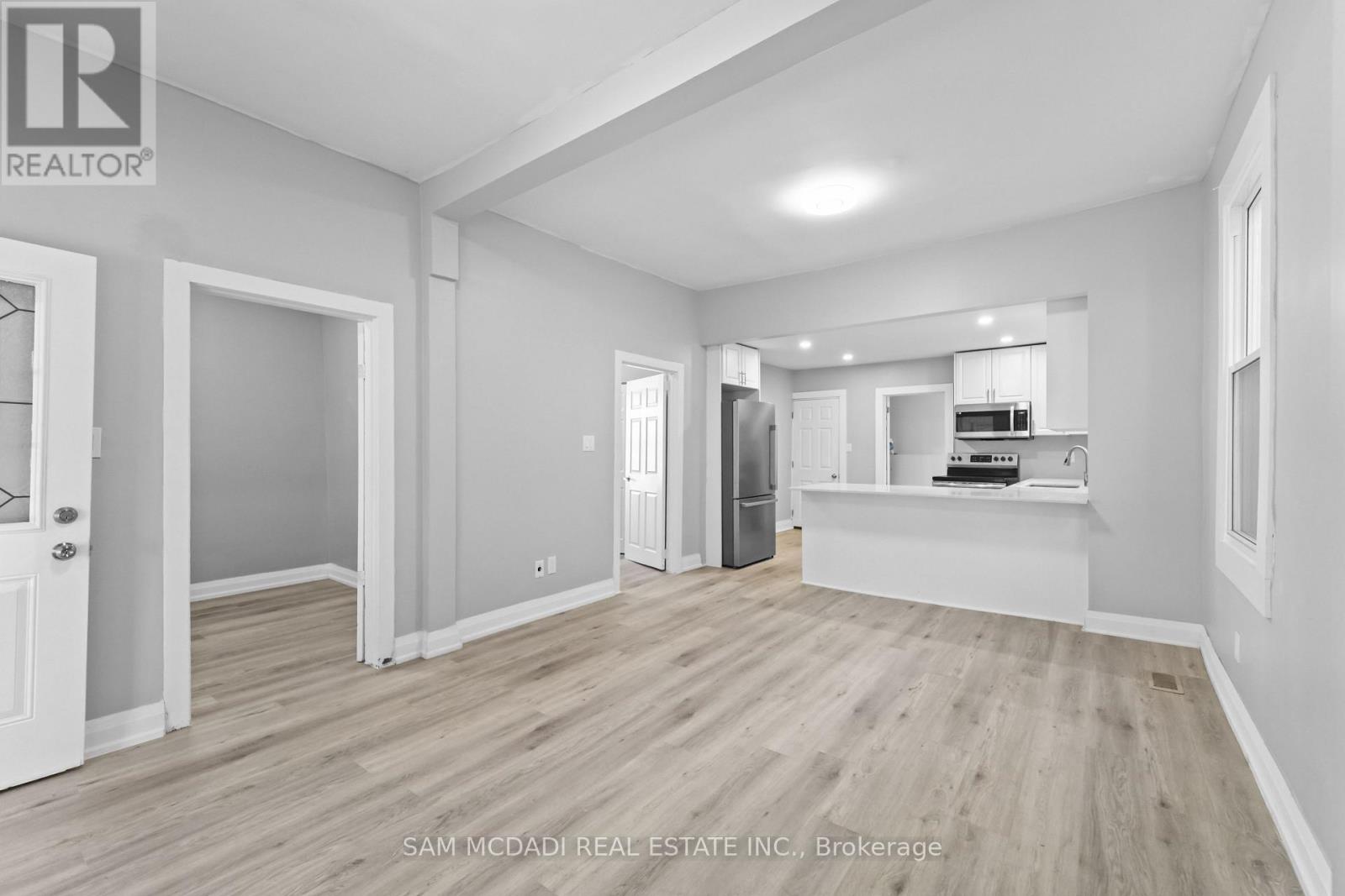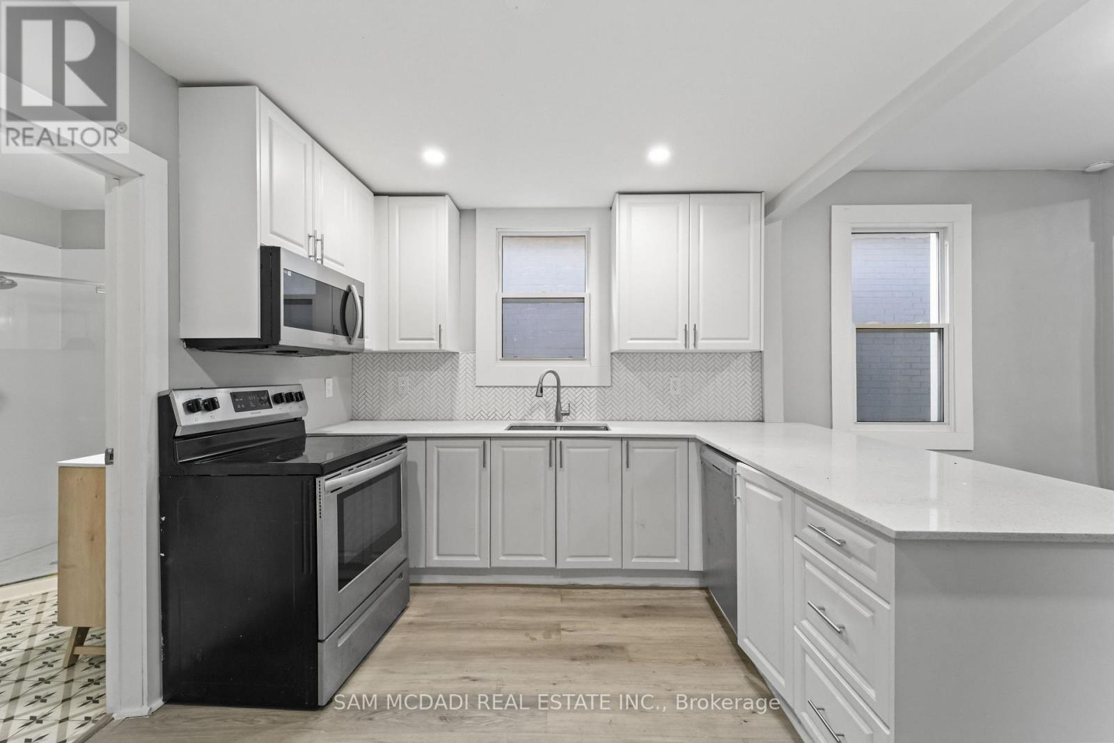 Welcome to this stunning, sun-filled home featuring a seamless open-concept layout and high ceilings throughout. The modern interior boasts premium laminate flooring and a chef-inspired kitchen complete with quartz counter top and a chic custom back splash. Each of the three spacious bedrooms includes ample closet storage, complemented by large windows that invite natural light. Enjoy the convenience of an upgraded 3-piece bathroom with a sleek standing shower. Outside, the massive driveway easily accommodates 4 vehicles.Note: Tenant to pay 60% of utilities. Shared Laundry. (id:50787)