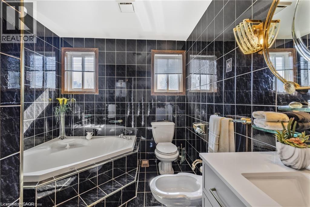 Located in the heart of mature Aldershot, this 1 owner all-brick two-storey home is set on a rare 1.88-acre lot backing onto peaceful, treed green space, offering excellent privacy and connection to nature. Offering approximately 5000 sq ft of total living space, this home is ideally suited for large or multi-generational families, offering a versatile layout with five bedrooms, four full bathrooms, and two full kitchens. The main level features spacious principal rooms, including a formal dining area, private office/den, and a welcoming family room with fireplace. The bright eat-in kitchen includes a large island, stainless steel appliances, and deck overlooking the expansive backyard. Upstairs, you’ll find four generously sized bedrooms, including a primary bathroom with walk-in closet and a 5-piece ensuite. The finished walkout basement adds incredible flexibility, complete with a second kitchen, additional bedroom, full bath, and a large recreation space with fireplace ideal for in-law living, extended family, or potential income support. The property also offers ample parking with a double car garage and an impressive driveway accommodating up to 8 vehicles. This solid, well-maintained home offers tremendous potential to update or customize Just minutes to Hidden Valley Park, LaSalle Park, Aldershot GO Station, major highways, schools, and amenities this is a rare opportunity to own a property of this size and setting within the city. (id:50787)