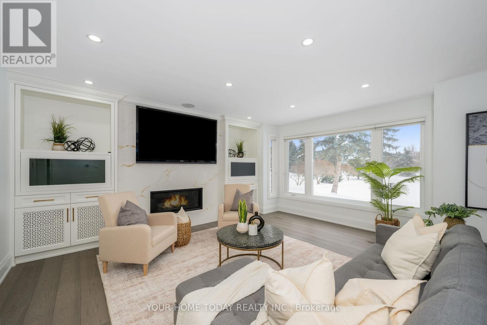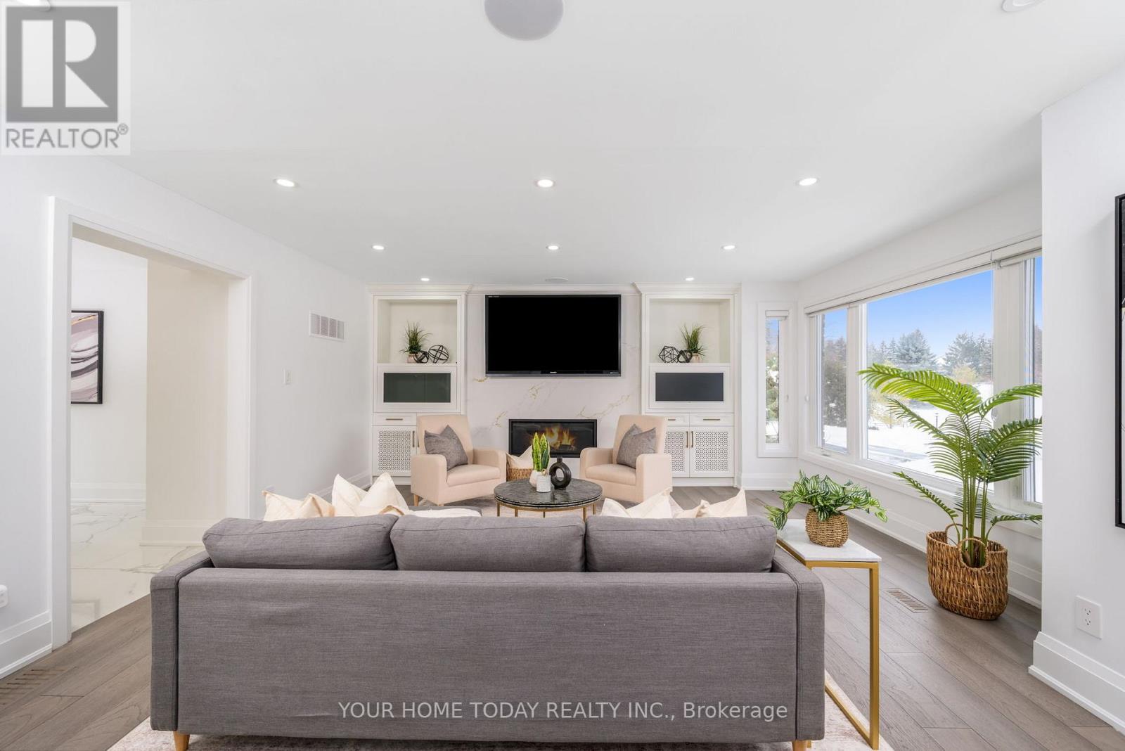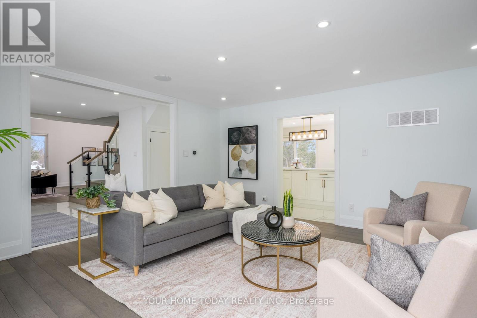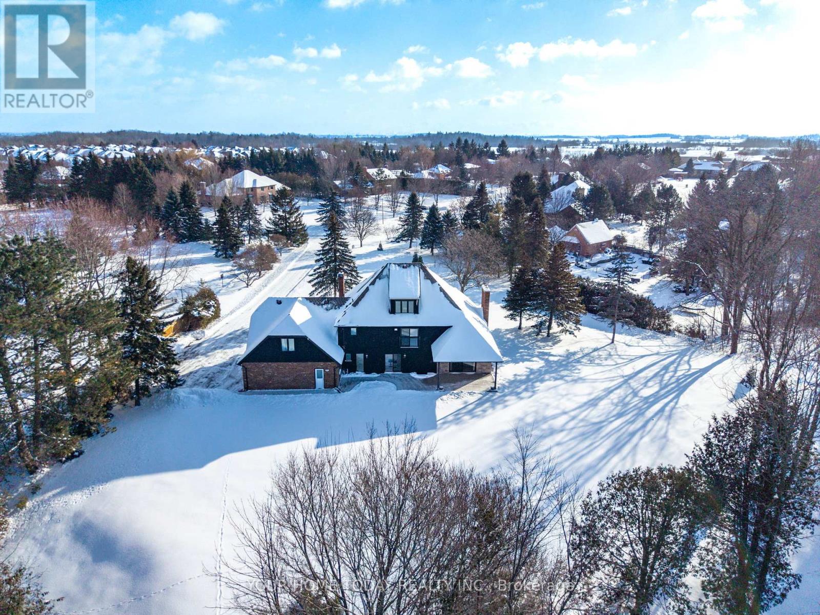 Situated in a quiet executive enclave and set well back from the road on a private and breathtaking, 1.5 acre lot with no homes directly behind, this striking custom-built home offers classic design enhanced by exceptional modern updates. Extensively renovated over the past five years with designer flair and meticulous attention to detail, the home showcases gorgeous, engineered hardwood and ceramic flooring, abundant pot lighting and a consistent upscale aesthetic throughout. At the heart of the home is a chef-inspired kitchen featuring an oversized island with waterfall edge and seating, quartz countertops and premium appliances. Floor-to-ceiling cabinetry with glass accents and a walkout to the patio complete this stunning space. The inviting family room offers a toasty fireplace framed by custom built-in shelving, while the combined living and dining rooms impress with vaulted ceilings, expansive windows, and a striking fireplace set against an eye-catching feature wall. A sleek glass-railed staircase leads to the upper level where four generously sized bedrooms and a loft await. The upper foyer is both stylish and functional, featuring built-in organizers for added storage and a large window that fills the space with natural light. The primary retreat includes a walk-in closet with custom organizers, a decadent ensuite and access to a finished loft area above the garage - perfect as a sitting room, office or studio. A second primary suite enjoys ensuite access to another beautifully appointed bathroom and built-in closet organizers. Two additional bedrooms share a lavish main bath. The unfinished basement offers a wide-open canvas ready to be customized to suit your needs. Parking is plentiful with space for 10 vehicles in the driveway plus an attached 3 car garage. Ideally located close to schools, parks, trails, recreation centre, shopping and more with easy access to main roads for commuters. This is executive living at its finest! (id:50787)