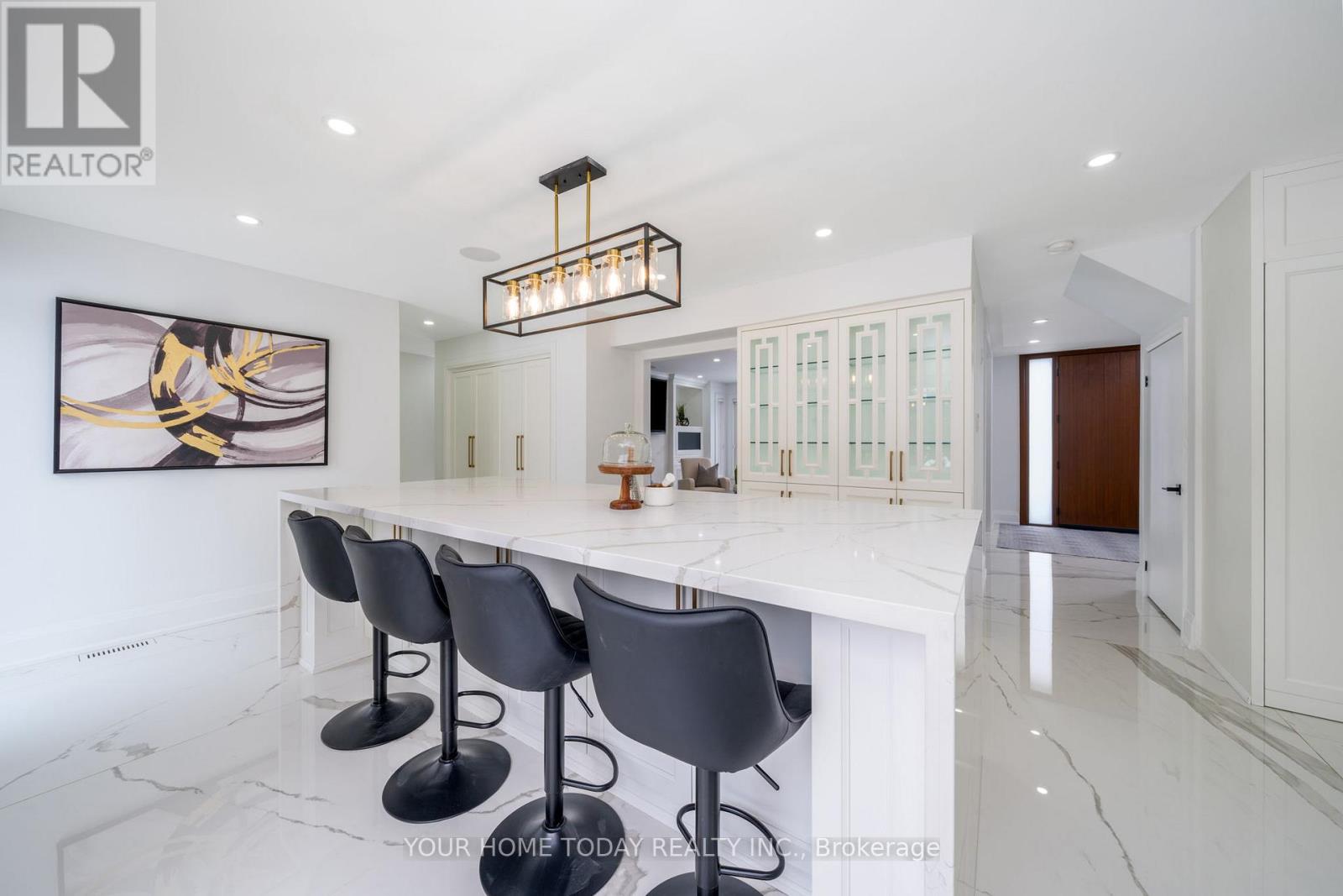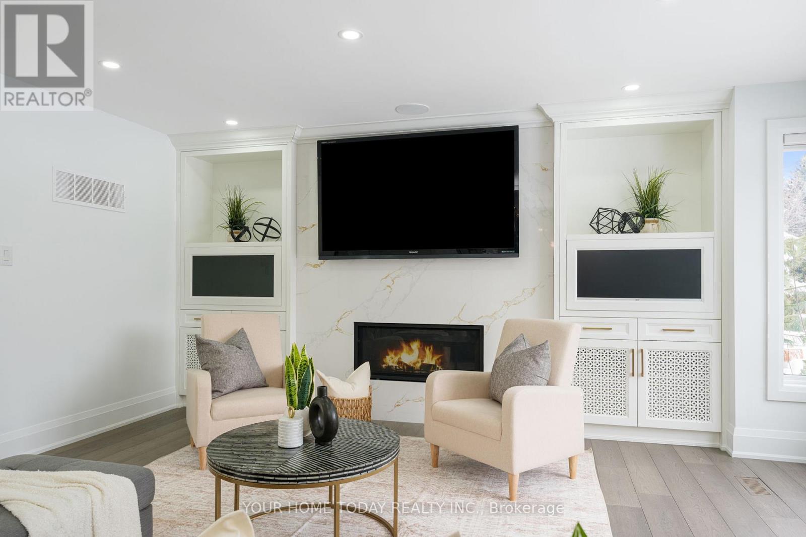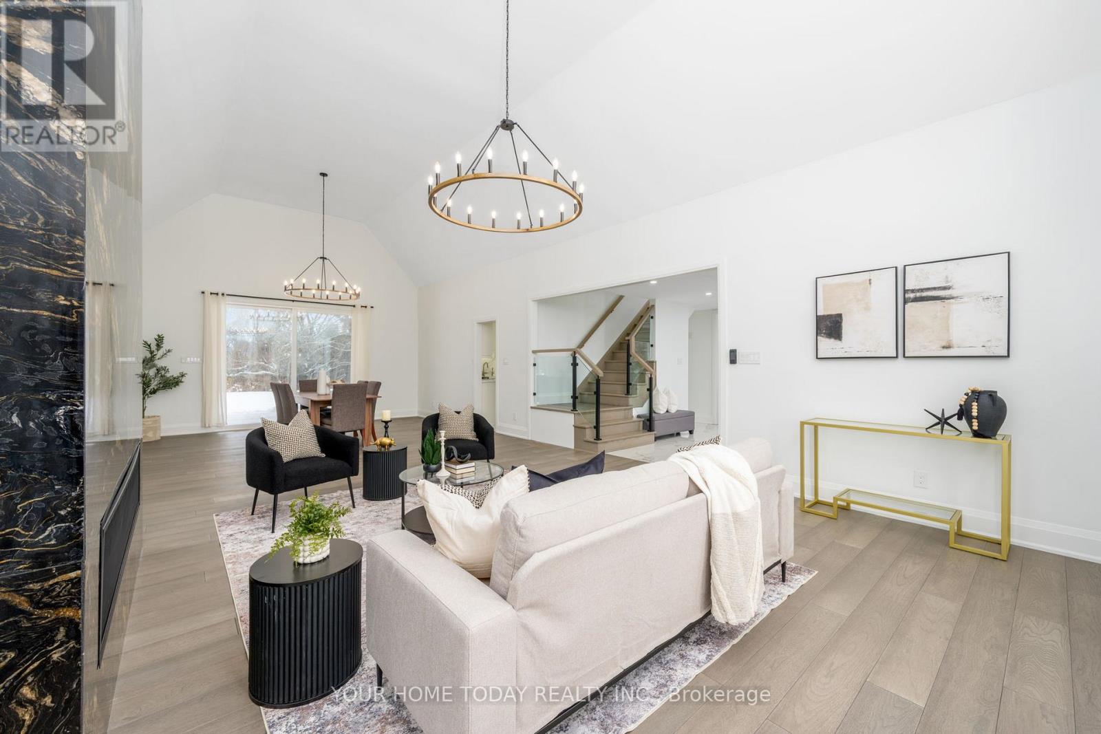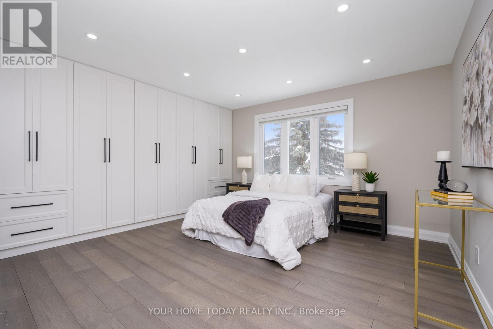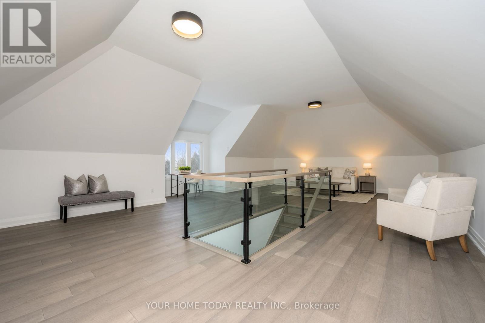 Situated in a quiet executive enclave and set well back from the road on a private and breathtaking, 1.5 acre lot with no homes directly behind, this striking custom-built home offers classic design enhanced by exceptional modern updates. Extensively renovated over the past five years with designer flair and meticulous attention to detail, the home showcases gorgeous, engineered hardwood and ceramic flooring, abundant pot lighting and a consistent upscale aesthetic throughout. At the heart of the home is a chef-inspired kitchen featuring an oversized island with waterfall edge and seating, quartz countertops and premium appliances. Floor-to-ceiling cabinetry with glass accents and a walkout to the patio complete this stunning space. The inviting family room offers a toasty fireplace framed by custom built-in shelving, while the combined living and dining rooms impress with vaulted ceilings, expansive windows, and a striking fireplace set against an eye-catching feature wall. A sleek glass-railed staircase leads to the upper level where four generously sized bedrooms and a loft await. The upper foyer is both stylish and functional, featuring built-in organizers for added storage and a large window that fills the space with natural light. The primary retreat includes a walk-in closet with custom organizers, a decadent ensuite and access to a finished loft area above the garage - perfect as a sitting room, office or studio. A second primary suite enjoys ensuite access to another beautifully appointed bathroom and built-in closet organizers. Two additional bedrooms share a lavish main bath. The unfinished basement offers a wide-open canvas ready to be customized to suit your needs. Parking is plentiful with space for 10 vehicles in the driveway plus an attached 3 car garage. Ideally located close to schools, parks, trails, recreation centre, shopping and more with easy access to main roads for commuters. This is executive living at its finest! (id:50787)