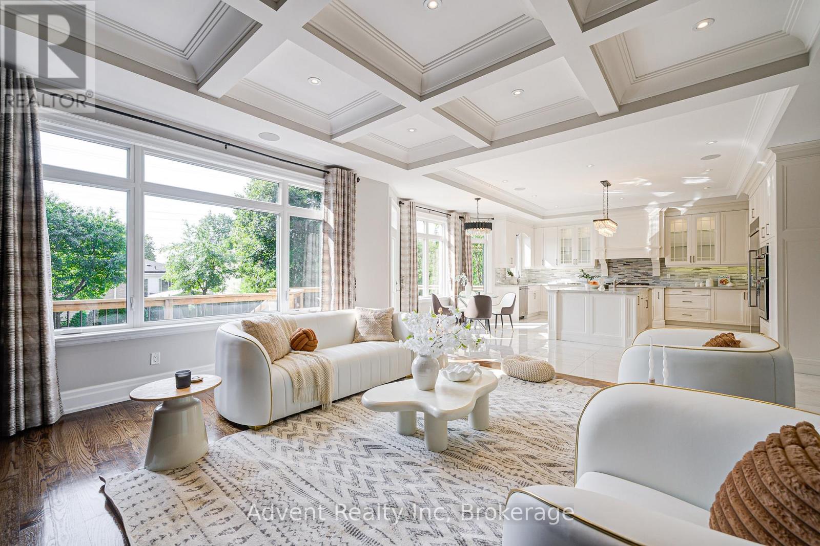 Magnificent Custom-Built Luxury Residence In Prestigious Willowdale.Set on a prime 66' x 122' south-facing lot, this exceptional estate offers over 4,300 sq. ft. above grade plus a 2,400+ sq. ft. professionally finished lower level, showcasing uncompromising craftsmanship and timeless elegance throughout. Featuring grand ceiling heights on all levels, coffered ceilings, detailed crown moulding, designer pot lighting, skylight, three fireplaces, and radiant heated floors in the lower level. The gourmet chef's kitchen is a stunning centrepiece, complete with custom cabinetry, premium stone finishes, and seamless flow to expansive living and dining areas-ideal for refined entertaining. A main-floor office provides both functionality and sophistication. The luxurious primary retreat offers a spa-inspired ensuite with indulgent finishes, while each additional bedroom features its own private ensuite for ultimate comfort and privacy. The lower level is a private, fully equipped living space with two bedrooms, full kitchen, and open-concept living and dining areas, perfect for extended family or guests. Ideally located just steps to Finch Subway, Hendon & Edithvale Parks, fine dining, boutique shopping, and top-tier amenities. A rare offering combining prestige, luxury, and exceptional location. (id:50787)