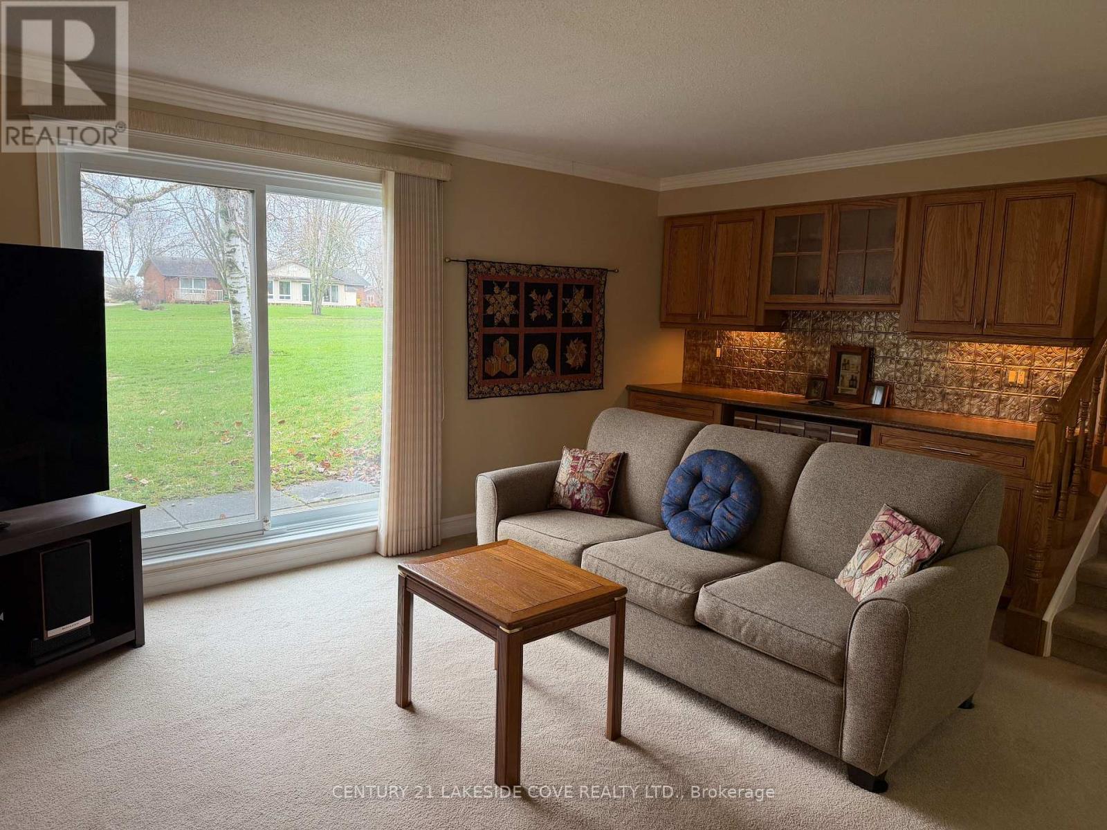 Welcome To The Quietest Street in Beautiful Bayshore Village. This All Brick Tastefully Decorated Side Split is Well Maintained And Cared For. Enjoy Your Morning Coffee On Your Front Porch and Take in the Lake Views. This Lot is Extremely Private As Your Backyard Overlooks a Private Park With That is Short Few Steps to Lake Simcoe. This 3 Bed, 3 Bath Home has An Updated Galley Kitchen that Overlooks the Backyard. Spend Your Days Reading A book In The Year Round Sun Filled Sunroom. The Large Composite Decking Has Plenty of Room For Dining and Lounging. The Lower Level Family Room Has An Abundance Of Natural Light And A Walkout To The Backyard. Curl Up By The Cozy Propane Fireplace During Those Cooler Evenings Enjoying Movie Night With Friends & Family. The Lower Level 3 Piece Washroom Is Combined With The Laundry. There Is Also A Large Utility Room That Could Be Used As Additional Living Space. ***EXTRAS*** Extra R50 Insulation In Attic, California Shutters, Catalytic Water Softener Salt Free, New Sump Pump, New Garage Door Opener, Composite Decking, Member In Good Stand With The Bayshore Village Association. $1,100/ Year 2026, Bell Fibre Optics $42/mth for unlimited internet/tv (id:50787)