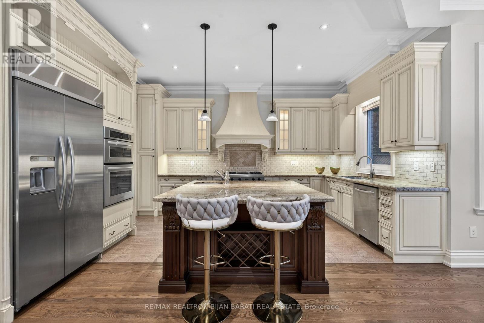 Stunning Custom-Built Home with 5+2 Bedrooms & 6 Washrooms, in the Coveted Part and the Heart of Willowdale East on A Prim Lot, Overlooking a Beautiful Park! **Top Ranked Schools >> Hollywood P.S, Bayview M.S, Earl Haig S.S**! This Home Offers: Elegant Design and Functional Layout with an Abundance of Natural Sunlight! Extensive Use of Hardwood/Limestone Flooring, Coffered Ceiling, Crown Moulding, Wainscotting, and Potlights! Main Floor Ceiling Height: 10 Feet! Large Spacious Family Room with Baywindow and Gas Fireplace, Gourmet Kitchen with Stainless Steel Appliances and Granite Countertop with a Breakfast Area Walk-Out to Patio and Fully Fenced Backyard! Warm Welcoming Foyer, Living and Dining Room. Mudroom Includes A Powder Room, Extra Closet, Side Door and Direct Access to Garages. Large Sun-Filled Office Between Main and Second Floor with Full Oak Paneled Walls and Built-In Bookcases.Open Comfortable Oak Staircase with Iron Railings and a Hexagon Skylight Above. Stunning Master Bedroom with Coffered Ceiling (10'), Sitting Area, 7 Pc Spa-Like Ensuite Includes Jacuzzi Tub, and W/I Closet. Other 4 Bedrooms with 3-Ensuite! 2nd Floor Full Laundry! Second Furnace! Professionally Finished Walk-Out Basement Includes Recreation Room with Wet Bar, A Large Bedroom, A Den, 3-PC Bath and Dry Sauna, and 2nd Laundry! Natural Stone Façade, and Brick for Sides and Back Elevation! Interlock in Driveway, and Backyard Patio. No Side Walk in Front.Convenient Location: Steps Away from Sheppard Ave, Yonge St, Ttc, Subway, Park, YMCA, and All Other Amenities. (id:50787)