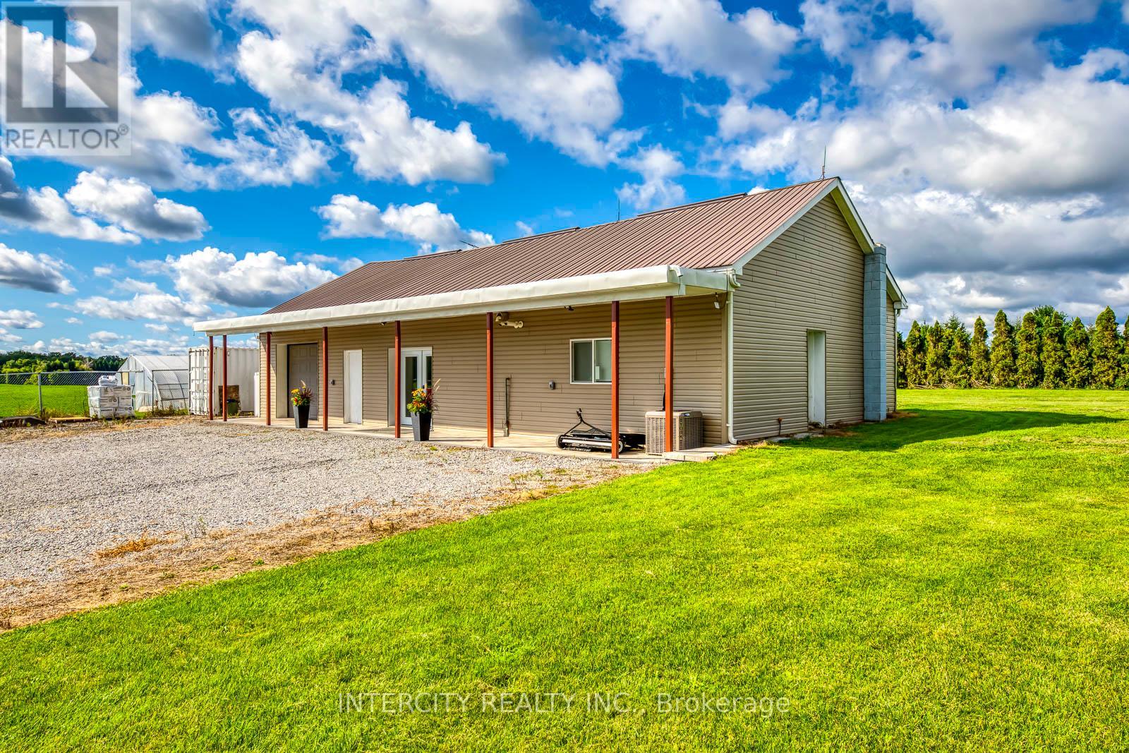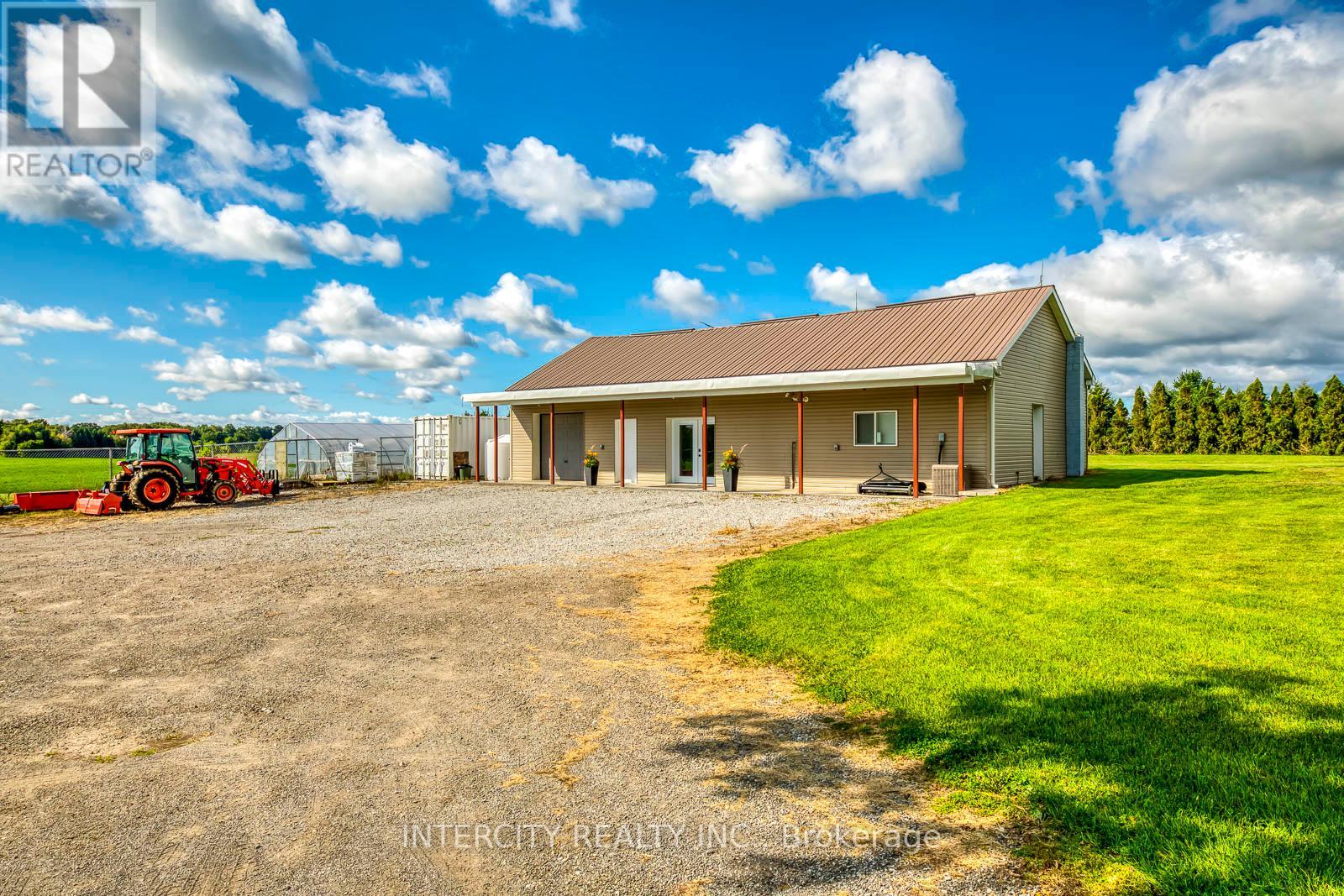 2764 Governors Road Prime Mixed-Use Live/Work Property : Positioned along the highly visible main artery of Governors Road, this exceptional 2.486-acreproperty offers unmatched exposure and versatility. Combining a solid, high-quality residence with professional-grade commercial facilities, it presents a rare opportunity for live/work convenience, entrepreneurial ventures, or agricultural-related operations. Residential Highlights : 3 spacious bedrooms and 2 full bathrooms Family room, living room, office, and sunroom with large windows for abundant natural light Hardwood floors and stairs throughout, supported by a strong, durable foundation Modern kitchen with light quartz countertops Expansive patios overlooking beautifully landscaped gardens Natural gas utilities for efficient and reliable service . Commercial & Professional Facilities Warehouse: Approximately 3,200 sq. ft. with cooler, preparation room, office, reception area, washroom, and second-floor storage. Ideal for produce storage, fruit/vegetable processing, or other professional agricultural uses. Features include separate hydro meter, cistern, newer furnace, air-conditioning, and septic system for independent operation. Office Building: Approximately 1,600 sq. ft., fully insulated and recently renovated with new furnace, hot water tank, and air-conditioning. Includes cooler, storage, and restroom facilities, making it move-in ready for business use. Additional Amenities : Two 500 sq. ft. pull-up greenhouses, perfect for farming projects or hobby cultivation Fenced yard suitable for logistics, storage, or hosting events This unique property seamlessly blends residential comfort with commercial practicality. Whether for farming-related processing, entrepreneurial ventures, or those seeking a spacious live/work environment, 2764 Governors Road delivers flexibility, visibility, and long-term value. Additional Leasing Options: Clients may also choose to lease the entire property or part of property. (id:50787)