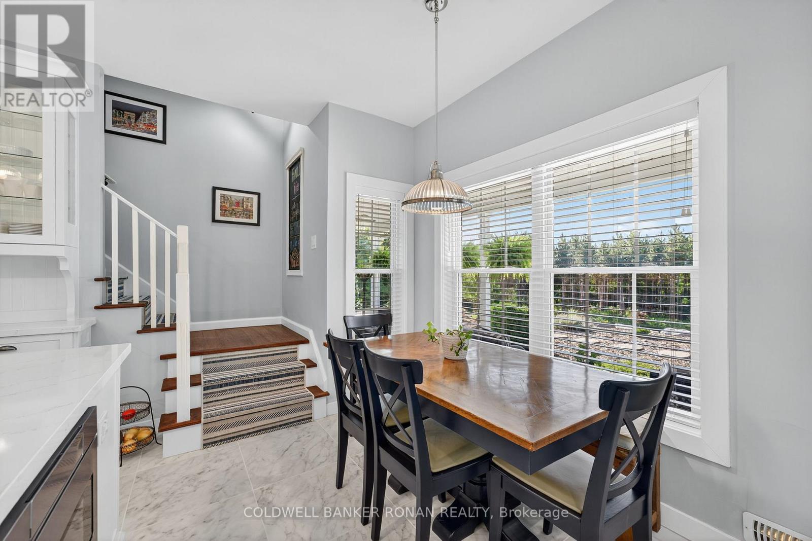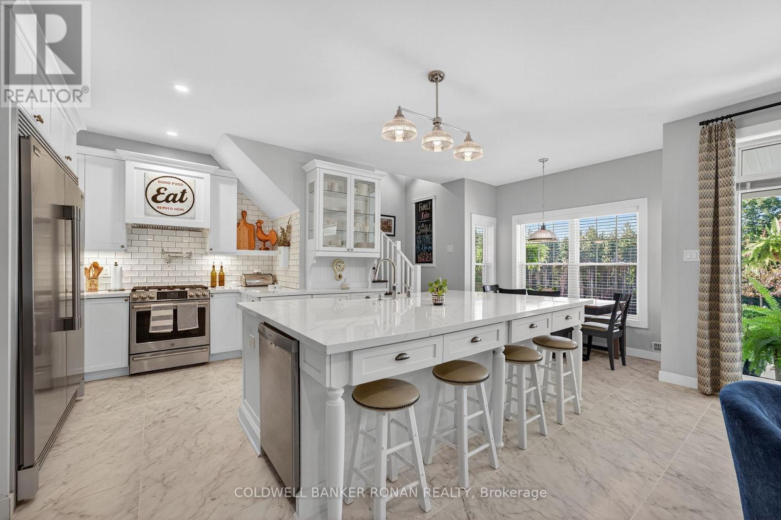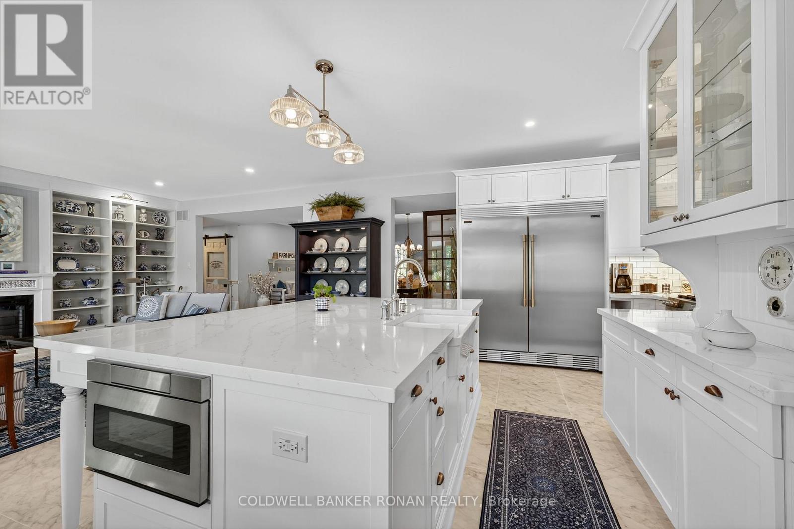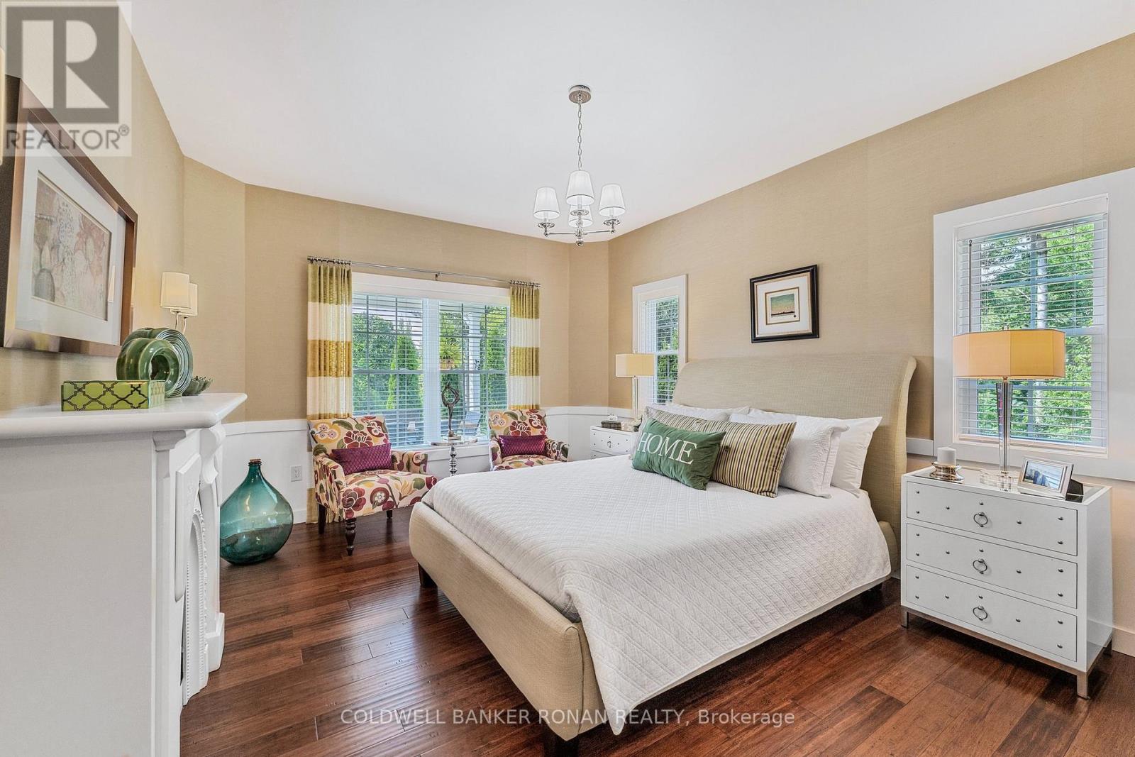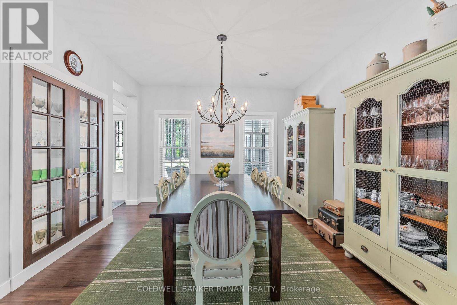 Sophisticated country living! Custom-built in 2018 and set on 2.7 acres of meticulously landscaped grounds in sought-after Tiny Township, this 3,000+ sq. ft. home offers a rare balance of architectural detail, functionality, and effortless style-just moments from Georgian Bay and Midland. The exterior's clean lines and custom details set the tone, while inside, a curated palette of textures and finishes creates warmth throughout. The heart of the home is a sun-filled, open-concept kitchen and living space designed for both intimate moments and entertaining, anchored by a statement fireplace and custom built-ins. Thoughtful details-from the walk-through pantry to the custom mudroom-elevate everyday living. A rare and valuable feature, the finished workshop (converted from one bay of the 3-car garage) offers exceptional flexibility for creative pursuits, home business, or refined storage. The primary suite is a private retreat, complete with a spa-inspired ensuite, walk-in closet, and seamless access to laundry. Additional bedrooms, each with convenient bath access, are complemented by a versatile den with a wet bar and an upper-level bonus space-ideal for guests, a media room, or a fourth bedroom. Seamless indoor-outdoor living unfolds through garden doors to a 58-foot covered porch with ceiling fans, overlooking manicured grounds, mature gardens, and a stone fire pit, designed for relaxed evenings and an effortless cottage lifestyle. An offering defined by intention, craftsmanship, and lifestyle-tailored for those who value space, privacy, and understated luxury. (id:50787)