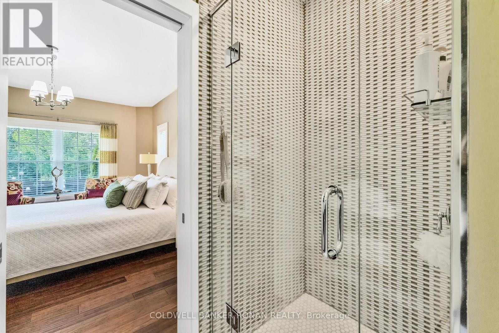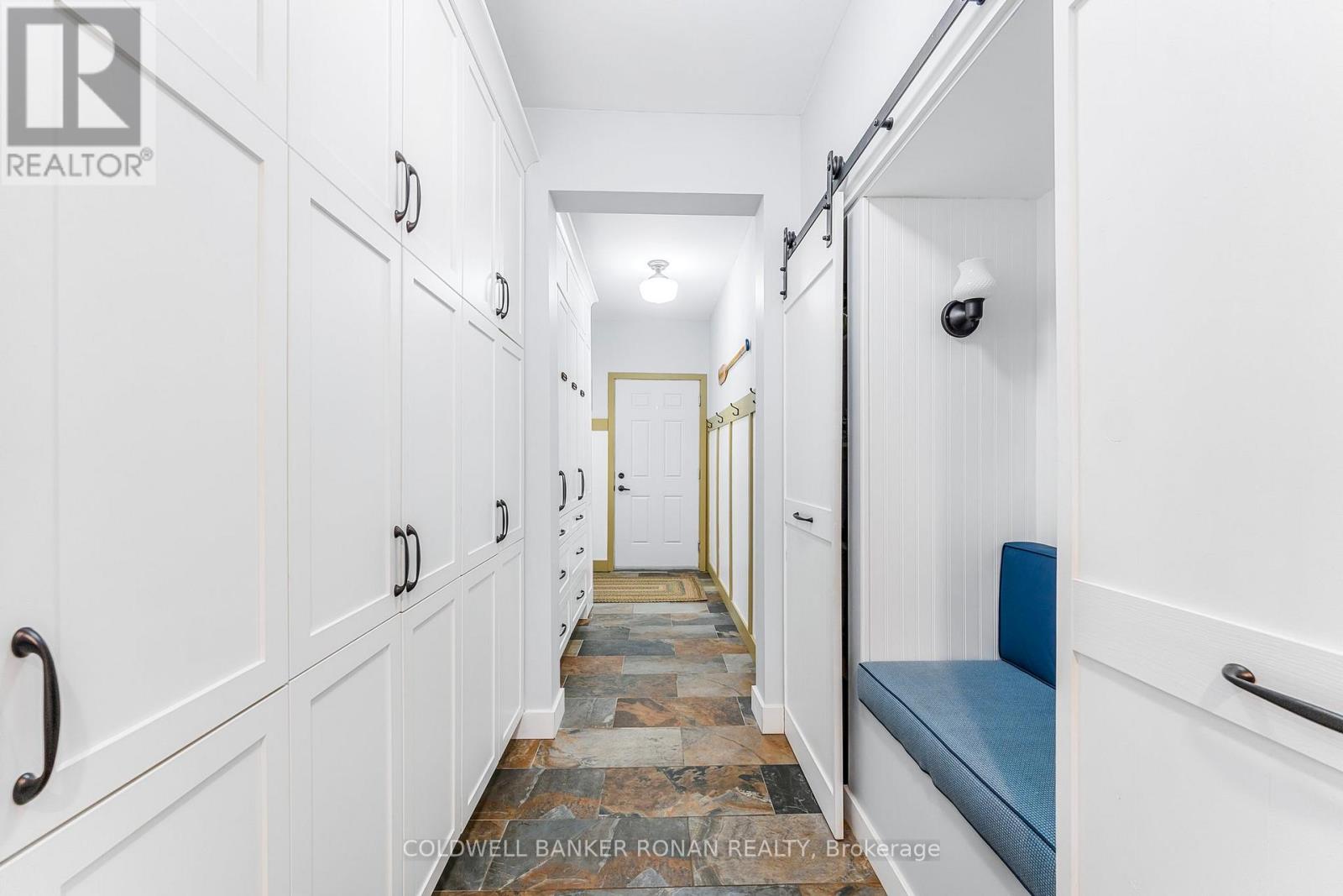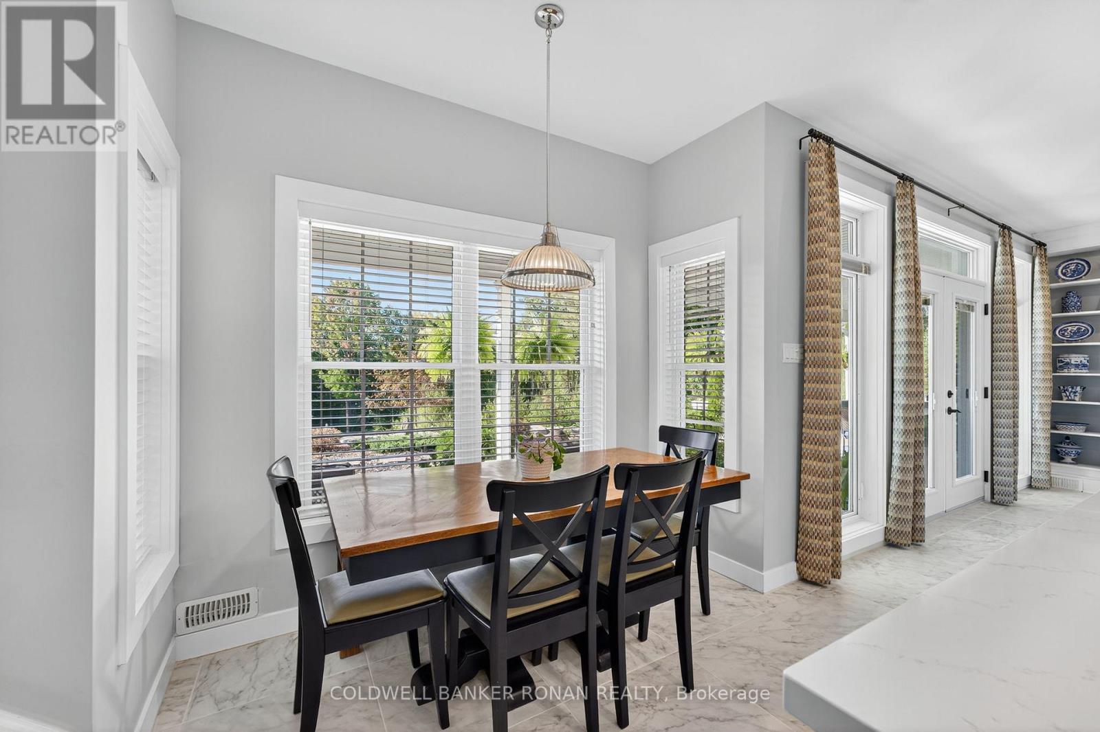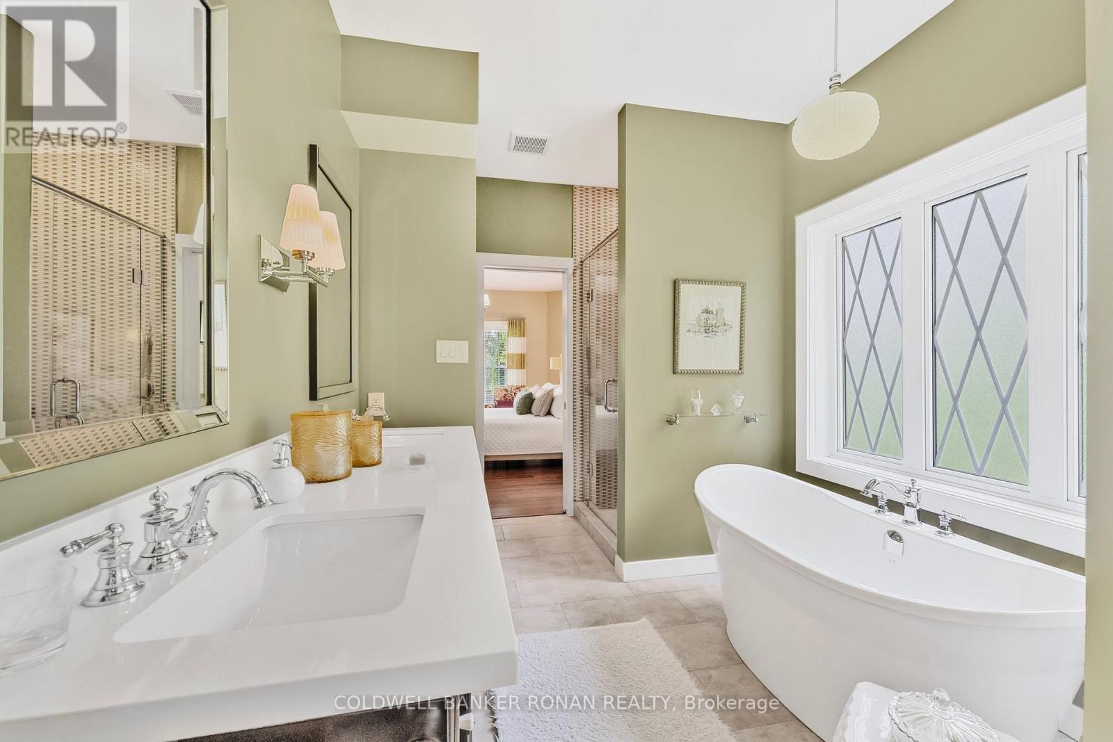 Sophisticated country living! Custom-built in 2018 and set on 2.7 acres of meticulously landscaped grounds in sought-after Tiny Township, this 3,000+ sq. ft. home offers a rare balance of architectural detail, functionality, and effortless style-just moments from Georgian Bay and Midland. The exterior's clean lines and custom details set the tone, while inside, a curated palette of textures and finishes creates warmth throughout. The heart of the home is a sun-filled, open-concept kitchen and living space designed for both intimate moments and entertaining, anchored by a statement fireplace and custom built-ins. Thoughtful details-from the walk-through pantry to the custom mudroom-elevate everyday living. A rare and valuable feature, the finished workshop (converted from one bay of the 3-car garage) offers exceptional flexibility for creative pursuits, home business, or refined storage. The primary suite is a private retreat, complete with a spa-inspired ensuite, walk-in closet, and seamless access to laundry. Additional bedrooms, each with convenient bath access, are complemented by a versatile den with a wet bar and an upper-level bonus space-ideal for guests, a media room, or a fourth bedroom. Seamless indoor-outdoor living unfolds through garden doors to a 58-foot covered porch with ceiling fans, overlooking manicured grounds, mature gardens, and a stone fire pit, designed for relaxed evenings and an effortless cottage lifestyle. An offering defined by intention, craftsmanship, and lifestyle-tailored for those who value space, privacy, and understated luxury. (id:50787)