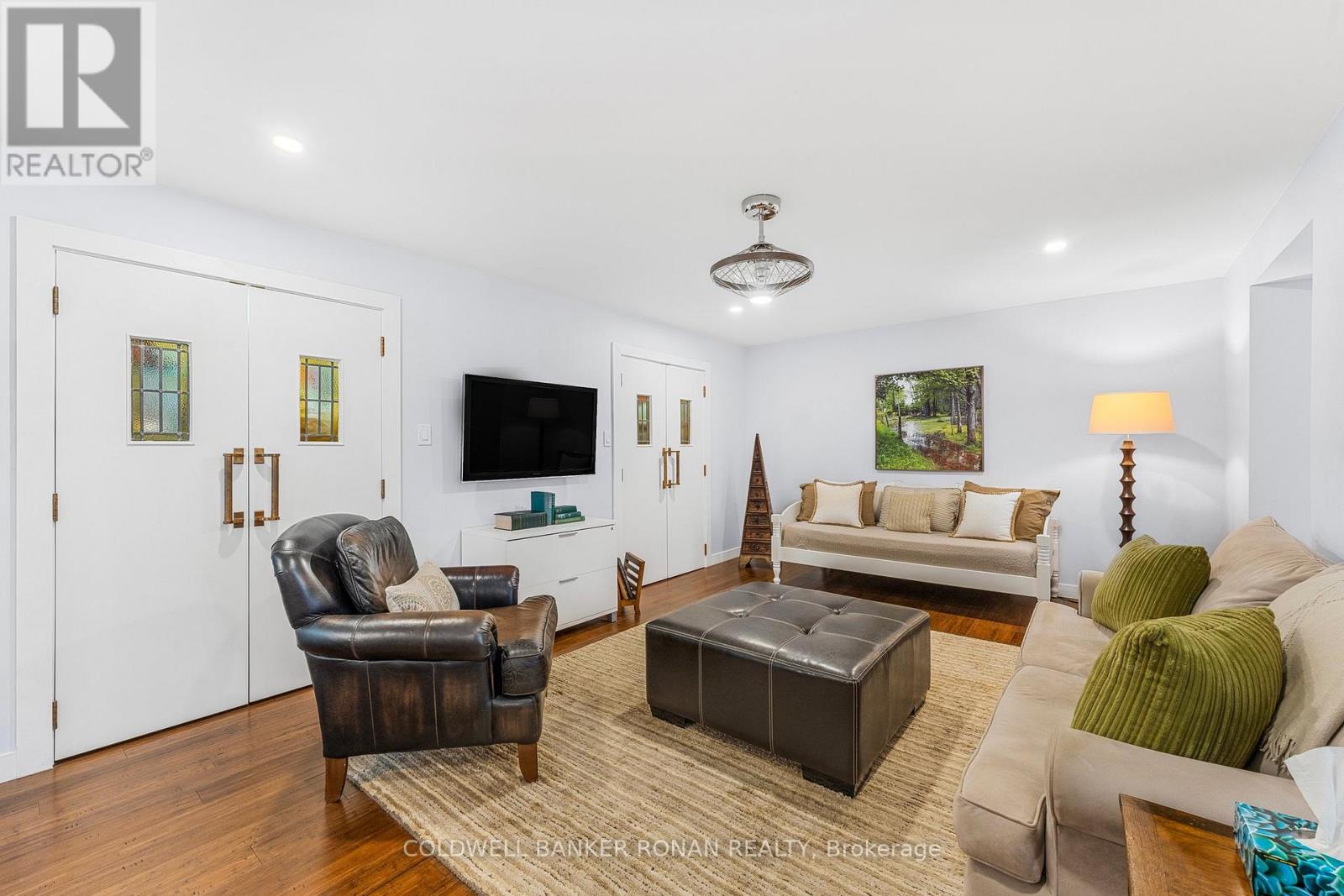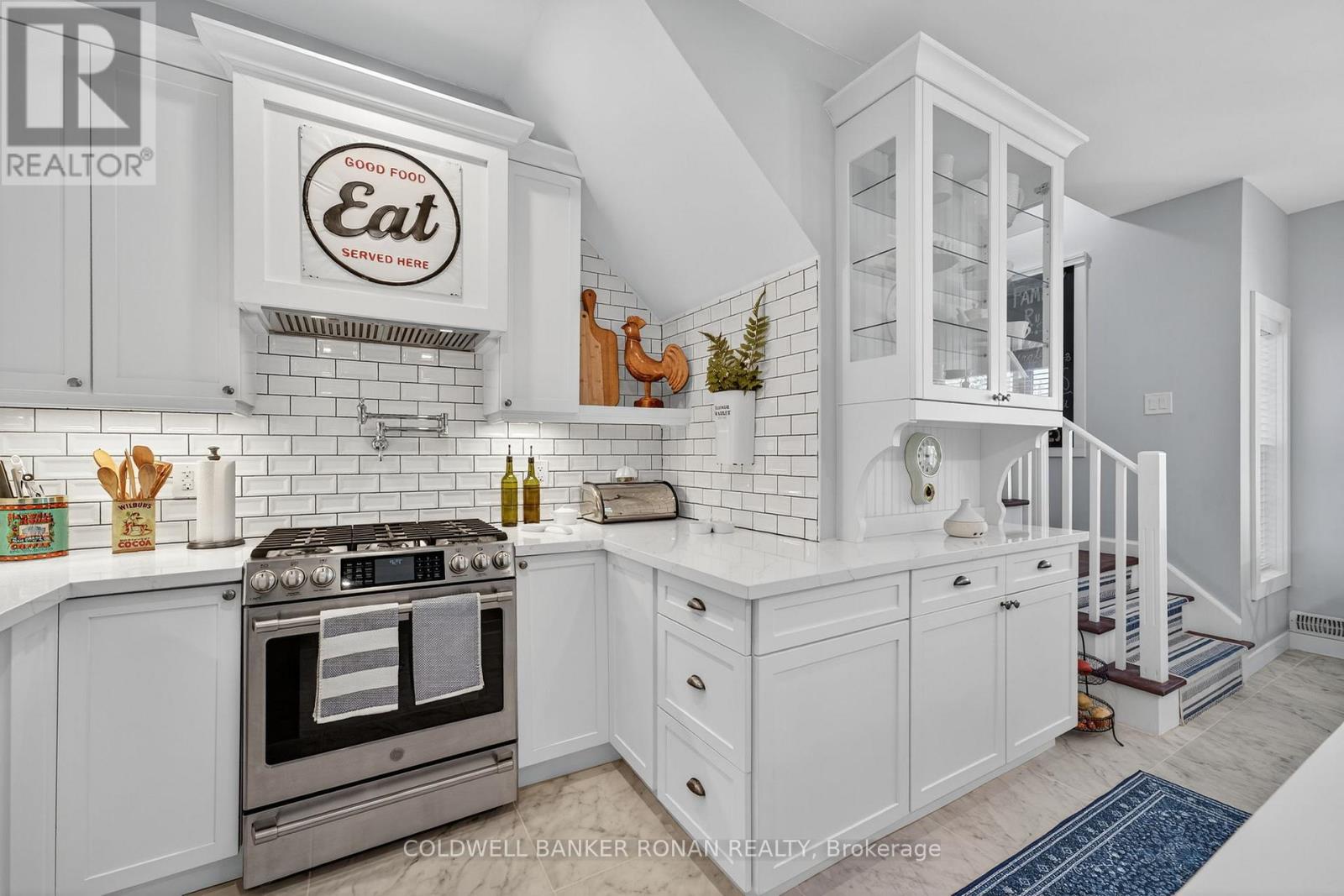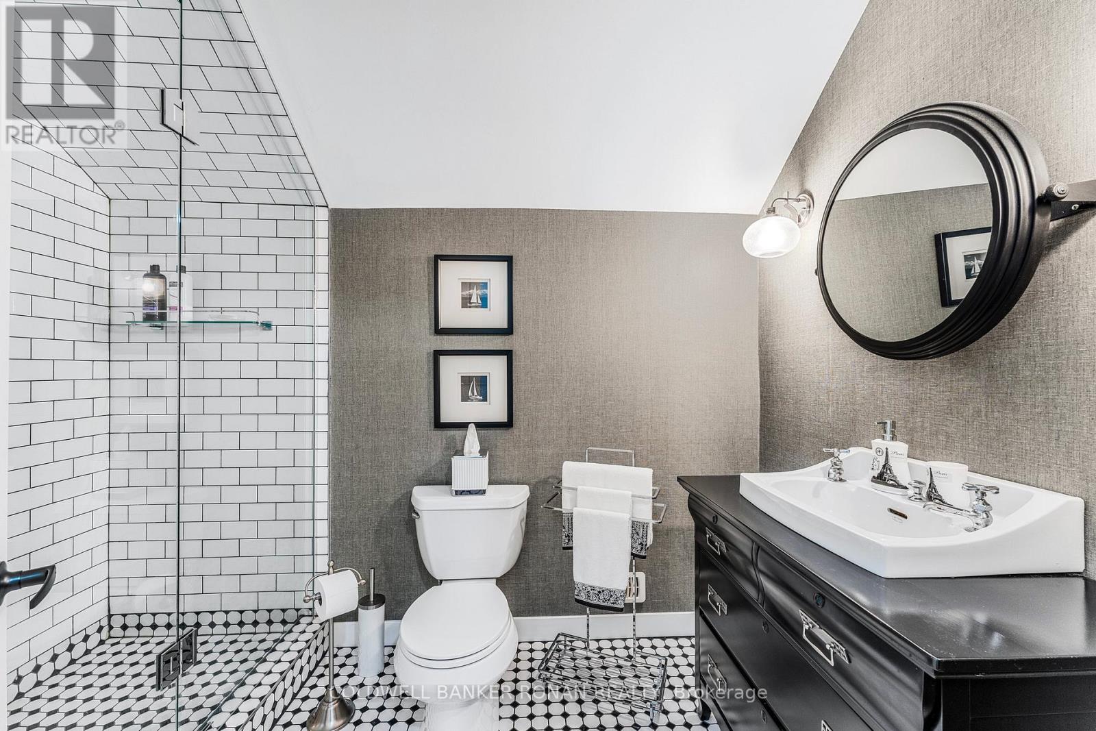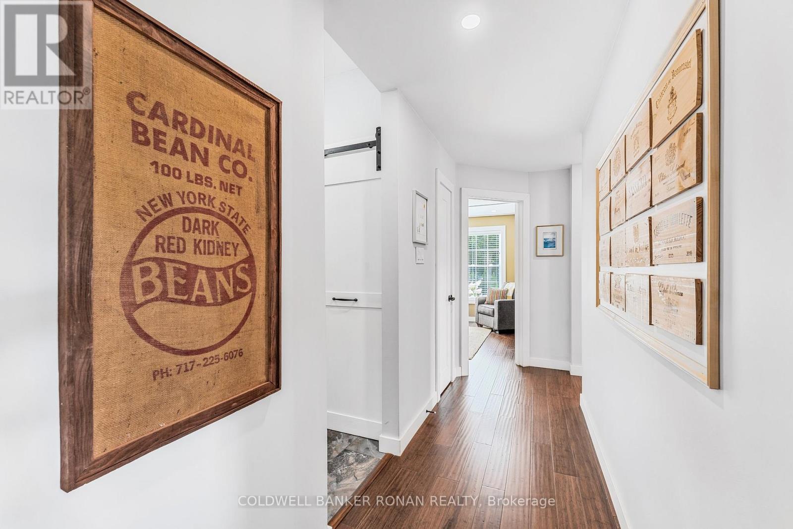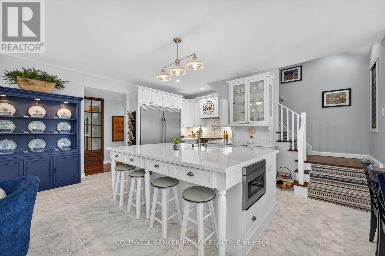 Sophisticated country living! Custom-built in 2018 and set on 2.7 acres of meticulously landscaped grounds in sought-after Tiny Township, this 3,000+ sq. ft. home offers a rare balance of architectural detail, functionality, and effortless style-just moments from Georgian Bay and Midland. The exterior's clean lines and custom details set the tone, while inside, a curated palette of textures and finishes creates warmth throughout. The heart of the home is a sun-filled, open-concept kitchen and living space designed for both intimate moments and entertaining, anchored by a statement fireplace and custom built-ins. Thoughtful details-from the walk-through pantry to the custom mudroom-elevate everyday living. A rare and valuable feature, the finished workshop (converted from one bay of the 3-car garage) offers exceptional flexibility for creative pursuits, home business, or refined storage. The primary suite is a private retreat, complete with a spa-inspired ensuite, walk-in closet, and seamless access to laundry. Additional bedrooms, each with convenient bath access, are complemented by a versatile den with a wet bar and an upper-level bonus space-ideal for guests, a media room, or a fourth bedroom. Seamless indoor-outdoor living unfolds through garden doors to a 58-foot covered porch with ceiling fans, overlooking manicured grounds, mature gardens, and a stone fire pit, designed for relaxed evenings and an effortless cottage lifestyle. An offering defined by intention, craftsmanship, and lifestyle-tailored for those who value space, privacy, and understated luxury. (id:50787)