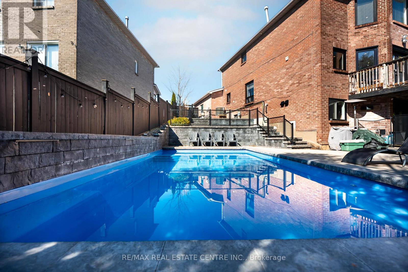 Welcome to 292 Lisa Marie Drive in Orangeville, a spacious 4+3 bedroom, 4 bath, detached home. Featuring a walk-out basement, double car garage, and a backyard that does more than check a box. The brick exterior, black-framed windows and doors, and wide driveway give the home a clean, polished first impression. Set on a pie-shaped lot with mature trees and open field views behind, this property gives you privacy, room, and an exclusive outdoor setup -- in town. The backyard is the kind of space people remember. A 15' x 30' fiberglass saltwater pool featuring LED lighting and waterfalls anchors the yard. Stonework, lounging areas, a large deck, and lower covered space give you options for summer dinners, pool days, and quiet evenings outside. Inside, the home feels bright and open, with large windows, plenty of natural light, a formal dining room, a comfortable family room with a fireplace, and a living room with French doors that works well as a sitting room, office, or play space. The kitchen has a clean, updated feel with white cabinetry, backsplash, peninsula seating, and walkout to the deck. Upstairs, you'll find four bedrooms, including a generous primary bedroom with a walk-in closet and a large private ensuite with a freestanding tub and separate shower. The finished walk-out basement adds three additional bedrooms, a bathroom, and extra living space, making it a strong fit for larger families, multi-generational living, guests, work-from-home needs or potential for a separate apartment. Main floor laundry with garage access adds everyday convenience. You are also walking distance to parks, schools, shopping, restaurants, groceries, and everyday services, with Orangeville's downtown, recreation centres, trails, and big-box amenities just minutes away. Quick access to Highways 9 and 10 keeps commuting practical while still giving you a quiet residential setting. (id:50787)