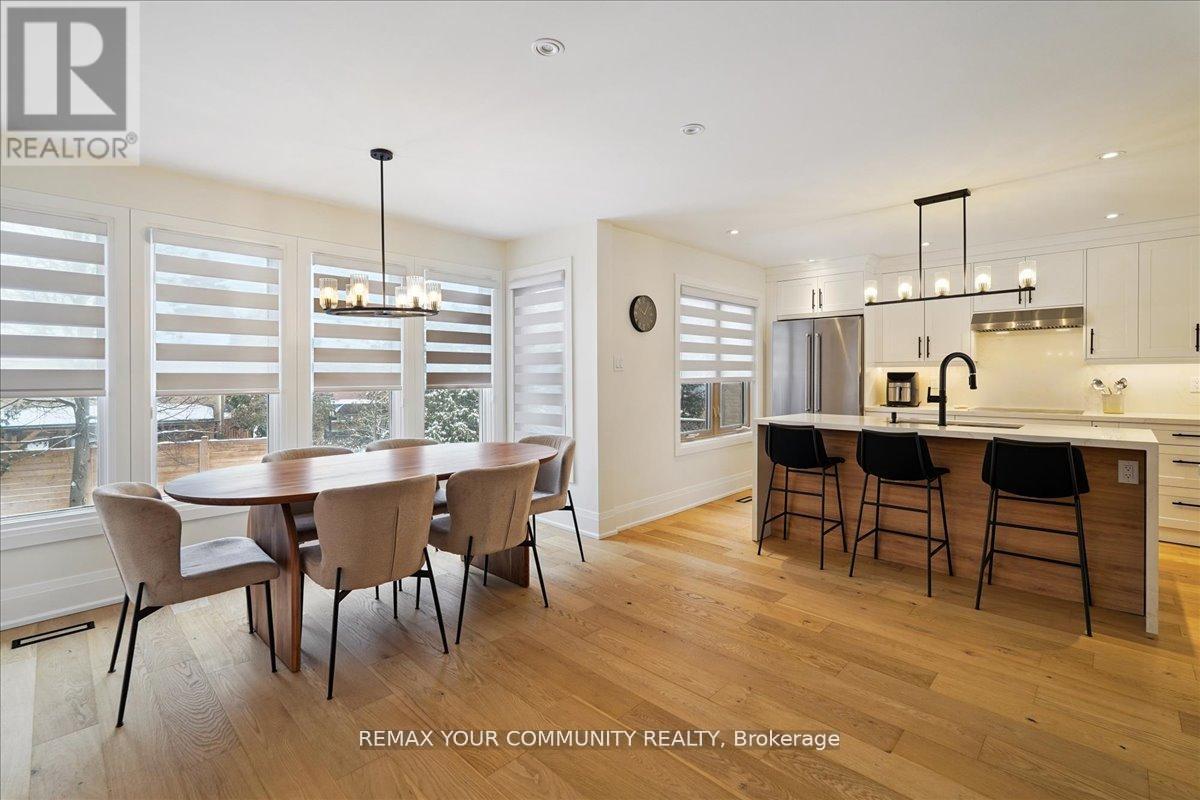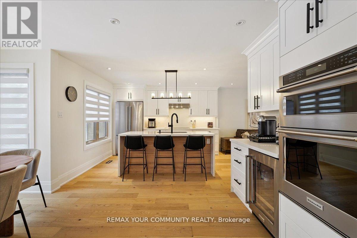 Welcome to this beautifully fully renovated 4+1 bedroom home on prestigious Burford Street - one of Newmarket's most desirable streets. With over $230,000 invested in top to bottom renovations, this 2000 sqft detached home has been completely transformed with high-end finishes and exceptional attention to detail. Situated on a pool-sized 50 x 115 ft lot with mature trees, a welcoming front porch, parking for four vehicles, and a double-car garage, this turnkey home blends modern luxury with timeless charm in an unbeatable location. Step inside to find wide-plank engineered hardwood flooring throughout, oversized, 8-inch baseboards, and an abundance of potlights that create a bright, modern feel. The stunning new open concept kitchen is truly the heart of the home featuring oversized quartz cabinetry, a stylish coffee bar to enjoy your morning cappuccino, and brand-new stainless steel appliances including a double-door fridge, double wall oven, electric cooktop, and dishwasher. The statement waterfall island makes it the perfect space for entertaining. All bathrooms have been fully upgraded, and each spacious bedroom includes custom closet organizers for practical, elevated living. The inviting living room is anchored by a charming wood-burning fireplace and the beautifully redesigned staircase includes elegant iron railings. A main-floor laundry room with built-in cabinetry and zebra blinds throughout complete the home's sophisticated upgrades. The finished walkout basement offers incredible flexibility with a fifth bedroom and potential for a future in-law or income suite. Strategically located less than five minutes from Downtown Newmarket - home to charming coffee shops, pet boutiques, and the renowned The Postmark Hotel - and just 5 minutes to Upper Canada Mall, Newmarket GO Station and major highways. (id:50787)