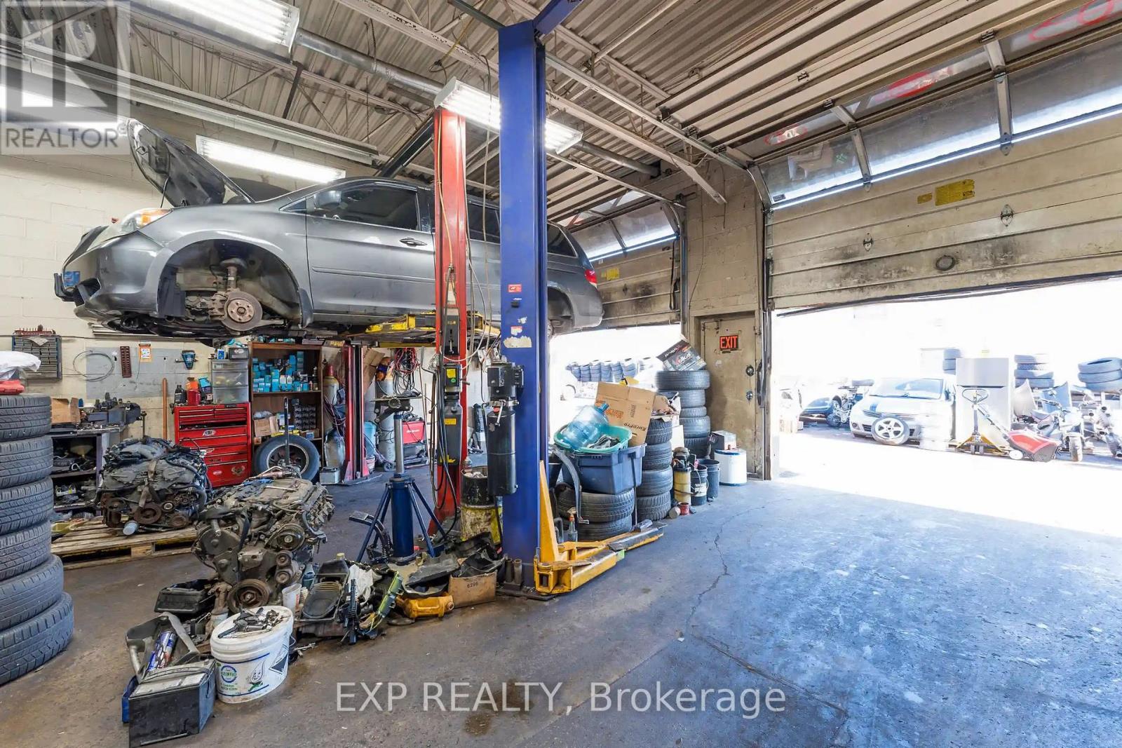 LOCATION, LOCATION, LOCATION! AN INCREDIBLE OPPORTUNITY TO OWN A FULLY EQUIPPED, TURNKEY AUTO MECHANIC SHOP IN ONE OF TORONTO'S BUSIEST AND MOST ESTABLISHED AUTOMOTIVE HUBS. THIS HIGH-VISIBILITY, HIGH-TRAFFIC LOCATION COMES WITH A STRONG LOYAL CLIENT BASE AND AN EXCELLENT REPUTATION FOR PROFESSIONAL SERVICE. THE SPACE FEATURES 4 OUTDOOR PARKING SPOTS AND 4 INDOOR SERVICE BAYS, PERFECT FOR EFFICIENT OPERATIONS AND MAXIMUM CUSTOMER CONVENIENCE. THIS IS A TRUE PLUG-AND-PLAY BUSINESS WITH MOST CHATTELS, FIXTURES, AND EQUIPMENT INCLUDED (EXCLUDING TOOLBOX AND COMPUTER), SUCH AS TWO HOISTS (9,000 LB & 10,000 LB), TIRE CHANGER, TIRE BALANCER, AIR COMPRESSOR, TRANSMISSION JACK, ENGINE JACK, FLOOR JACKS, A/C MACHINE, TORCH, OIL TANK, ENGINE OIL DRAINER, HEAVY-DUTY WORK TABLE, BENCH GRINDER, BENCH VISE, AND MORE. ADDITIONAL FEATURES INCLUDE A DEDICATED OFFICE SPACE AND COFFEE STATION, ALL WITH A COMPETITIVE GROSS RENT OF JUST $4,800/MONTH-AN OUTSTANDING, READY-TO-GO BUSINESS OPPORTUNITY! (id:50787)