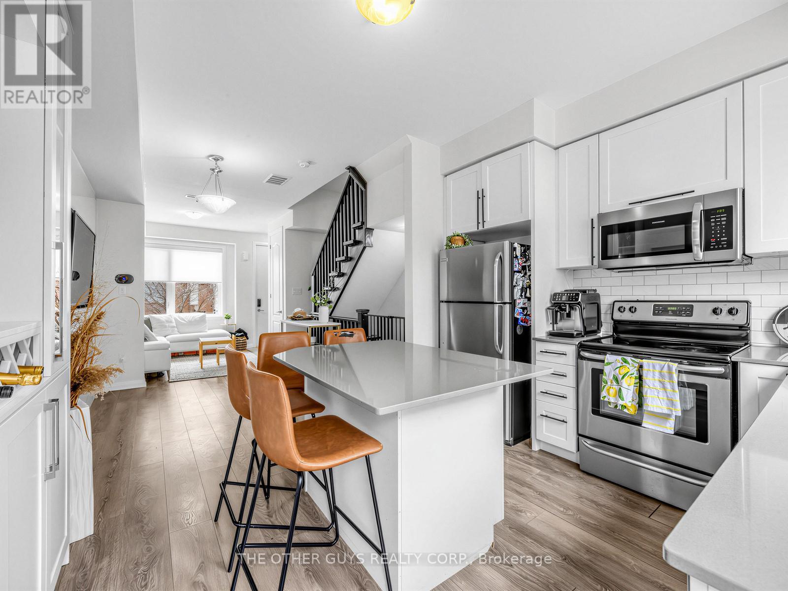 Modern 3+1 bedroom upgraded freehold townhouse by Mattamy Homes in the family-oriented Downview Park Community, steps away from one of Toronto's largest urban parks. Bright with large windows and 9-foot ceilings. The open-concept layout fills with natural light throughout. Features a sleek kitchen with quartz countertops, stainless steel appliances, extra custom cabinetry for additional storage and a large island-perfect for everyday living and entertaining. Check out the Custom built-in TV unit and other custom built-ins throughout the home. Check out the carpet-free floors, stained oak staircases, and a walk-out to a private balcony that add to the home's appeal for family and entertaining guests. 2 expansive rooftop terraces provide extra private outdoor space for summer lounging with breathtaking unobstructed views of Downsview Park. Direct private garage access with remote operation walks into to a finished rec room which can also be used as a 4th bedroom, home office, or guest suite. The entire third floor is dedicated to a luxurious primary retreat, complete with a large closet and upgraded 5-piece ensuite. Thoughtfully designed with 3+1 bedrooms and 3 bathrooms for comfortable family living. Located steps to 300-acre Downsview Park, TTC, subway, GO Transit, shopping, schools, and major highways. Designated Visitor Parking for guests staying overnight. A great opportunity to own a move-in-ready home in a vibrant, growing and family-oriented neighbourhood. (id:50787)