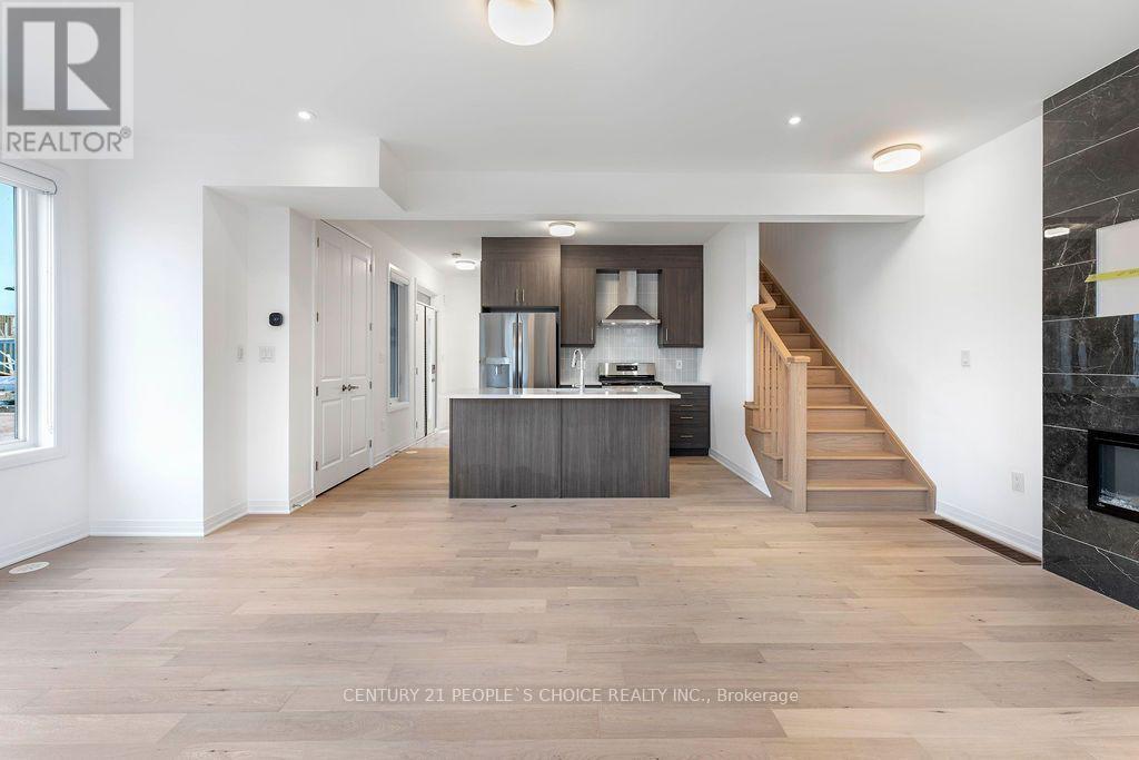 Premium luxury living with over 4,000 sq. ft. of beautifully finished space, available for immediate occupancy! This new built corner two-storey townhome offers 9-ft ceilings on both levels and a modern open-concept layout with upgraded finishes throughout, including an elegant electric fireplace in the living area. The contemporary kitchen features quartz countertops, a spacious breakfast bar, and a large pantry providing ample storage. The finished basement includes one bedroom and one full bathroom - ideal for guests or extended family. The second floor offers a versatile Media /entertainment area with walk-out to a large private balcony, easily convertible into a second oversized bedroom. The stunning primary suite boasts a luxurious ensuite bath and walk-in closet. Conveniently located just minutes from schools, parks, shopping, Trafalgar retail amenities, transit, and more. Quick access to QEW, Hwy 403, and 407 makes commuting effortless. (id:50787)