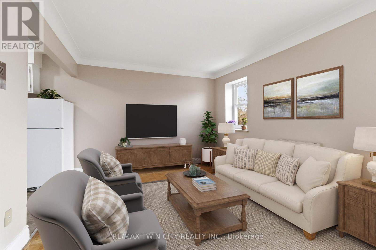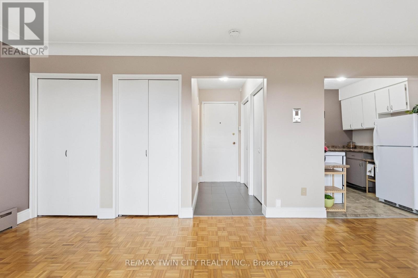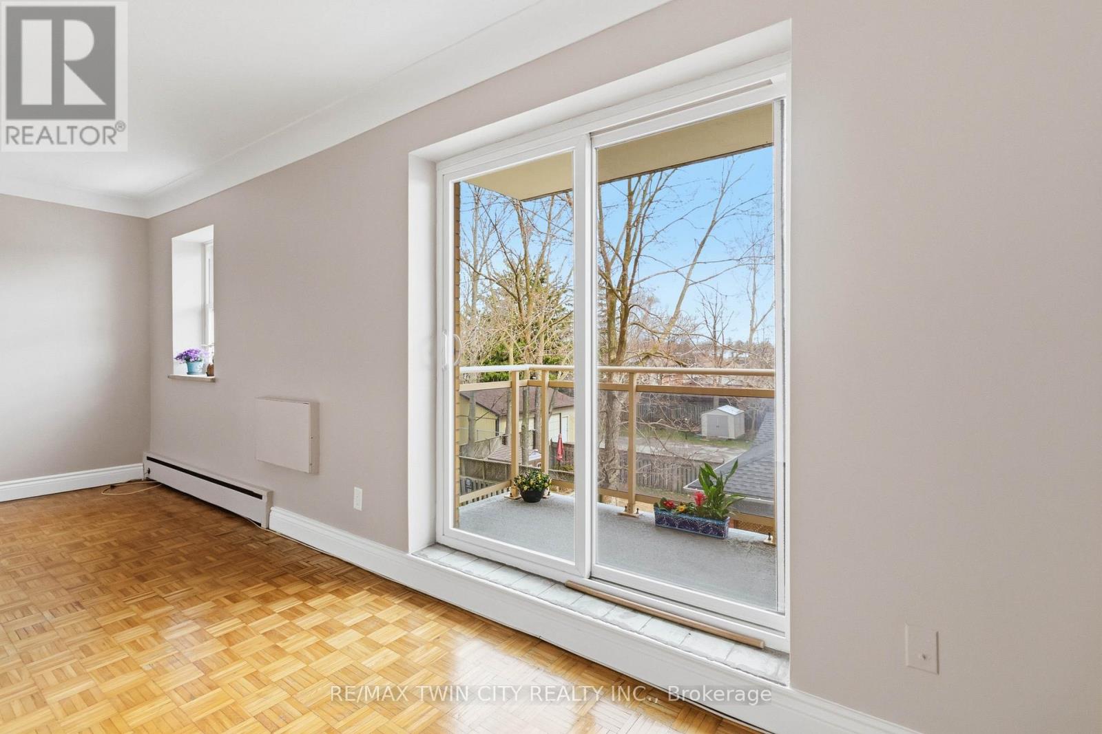 Opportunity knocks! Simplify your life and save some money in this great bachelor condo in fantastic location! Welcome home to Camelot Towers in desirable Terrace Hill. Lovely unit in quiet, friendly, well maintained building. Carpet-free unit has gleaming hardwood parquet & ceramic floors. Freshly painted throughout. Kitchen has new counter-top, new 1-1/2 sink & taps. Solid, retro-styled kitchen cabinets. Includes fridge, stove & carts. Updated 4-pc bathroom with freshly reglazed tub. 4 roomy closets plus Locker #11 for loads of storage. Balcony with roof-top view on quiet, east side of the building. Glorious morning sunshine is absolutely delicious when it streams into this unit, and afternoon shade means it won't overheat in the summer. Unit has charm and character of wide baseboards, & original plaster moldings & hand-swirled ceiling when plaster-work was an art. Building has a newer elevator, and all units were refurbished with vinyl windows, patio doors and balconies with glass balustrades. Party room, common laundry room and secured entrance (with electronic entry fob). Designated parking spot. Prime location is situated just steps from Metro grocery store & bus stop and has a great walkability score. Close to Brantford General Hospital, library, bank, dentists, restaurants, churches, shopping, Hwy 403. Ample visitor parking. Condo fees include heat & water. This unit boasts some of the lowest condo fees and property taxes in the city. Great opportunity for a first-time buyer wanting to get into the market, or a wonderful investment for parents sending their young person off to university, or just great timing for someone retired that wants to downsize and have easy access to grocery shopping. Owner is also willing to hold the mortgage for qualified buyer (which means no CMHC fees). Quick closing is available. (id:50787)