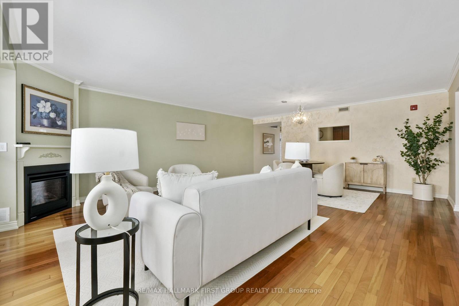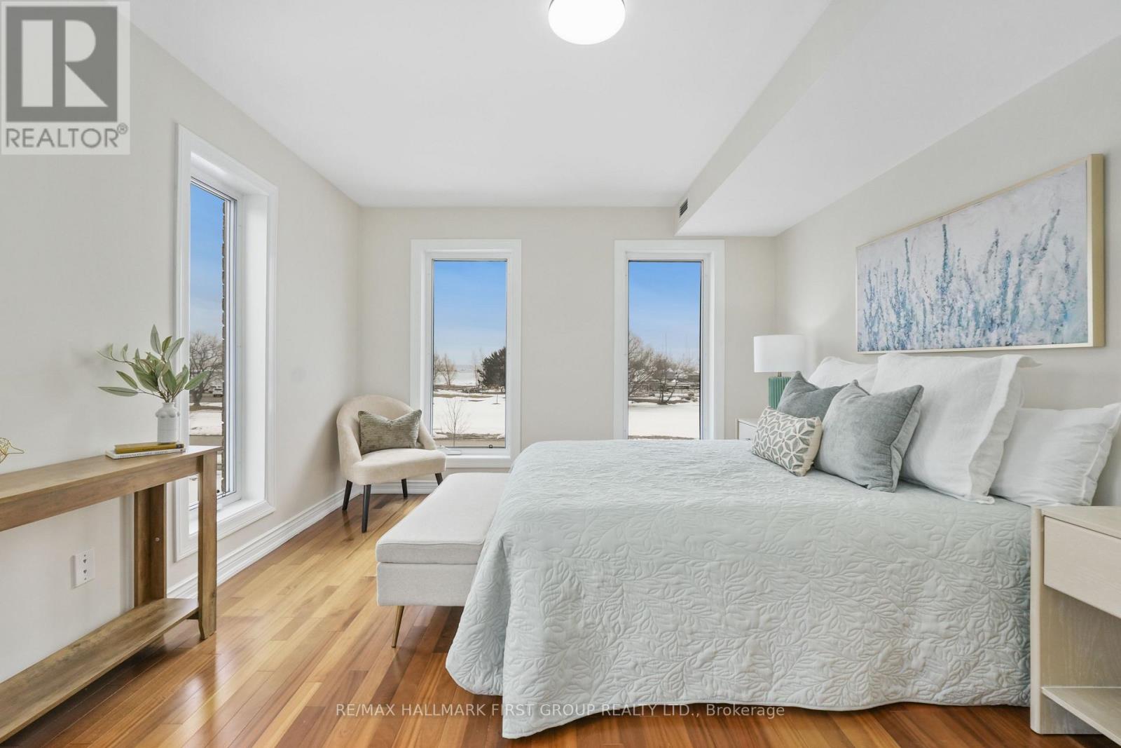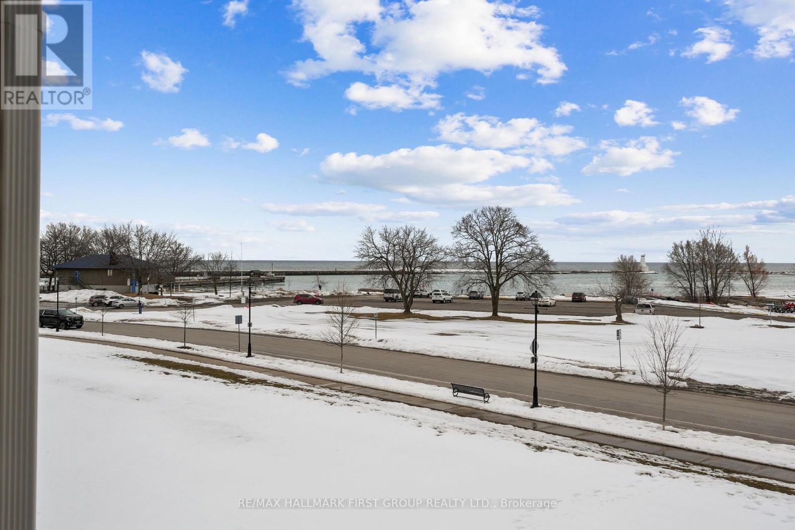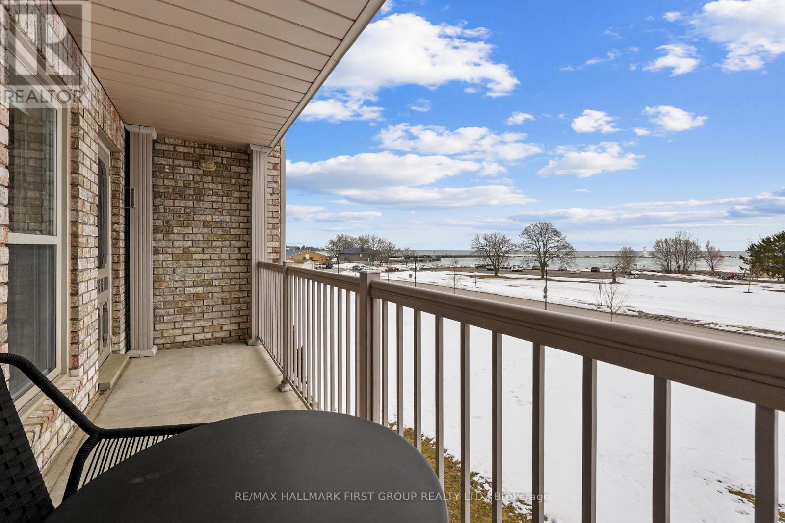 Waterfront living with breathtaking views of Lake Ontario and over 1,350 square feet of bright, comfortable space. This two-bedroom condo showcases full waterfront views and an open living and dining area featuring a carpet-free layout, crown moulding, a cozy fireplace, and a walkout to a private balcony overlooking the water. The kitchen is both functional and inviting, complete with a window over the sink, ample counter and cabinet space, and matching appliances. The spacious primary bedroom is a peaceful retreat, featuring multiple oversized windows that capture the stunning waterfront views, an incredible way to start each morning, and a private ensuite bathroom. A guest bedroom and full guest bathroom provide a comfortable space for visitors. In-suite laundry adds everyday convenience. Step outside to enjoy the patio with beautiful views of Lake Ontario. Located just steps from downtown amenities, the marina, and Cobourg Beach, with easy access to Highway 401, this condo offers stylish, carefree coastal living in an unbeatable location. (id:50787)