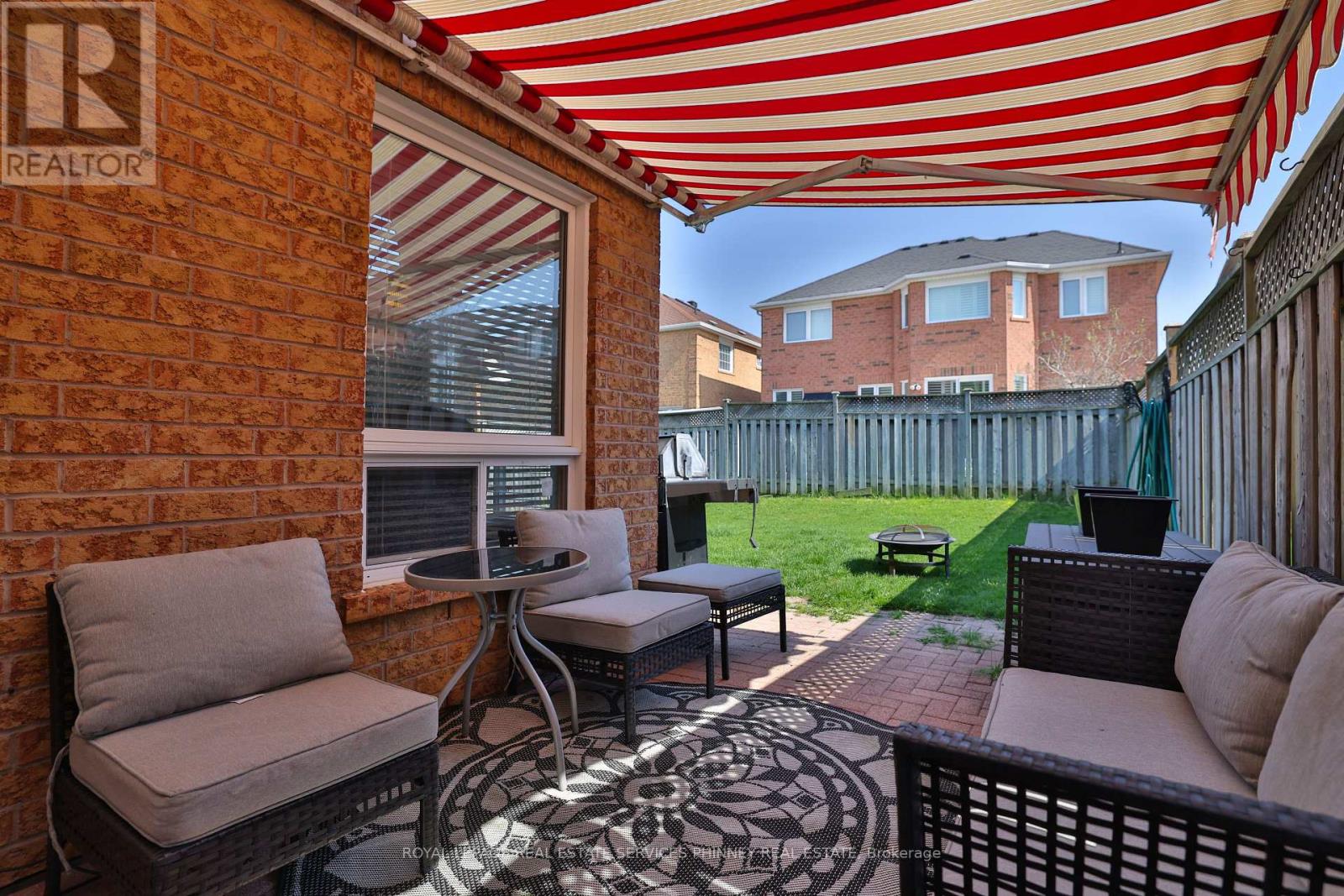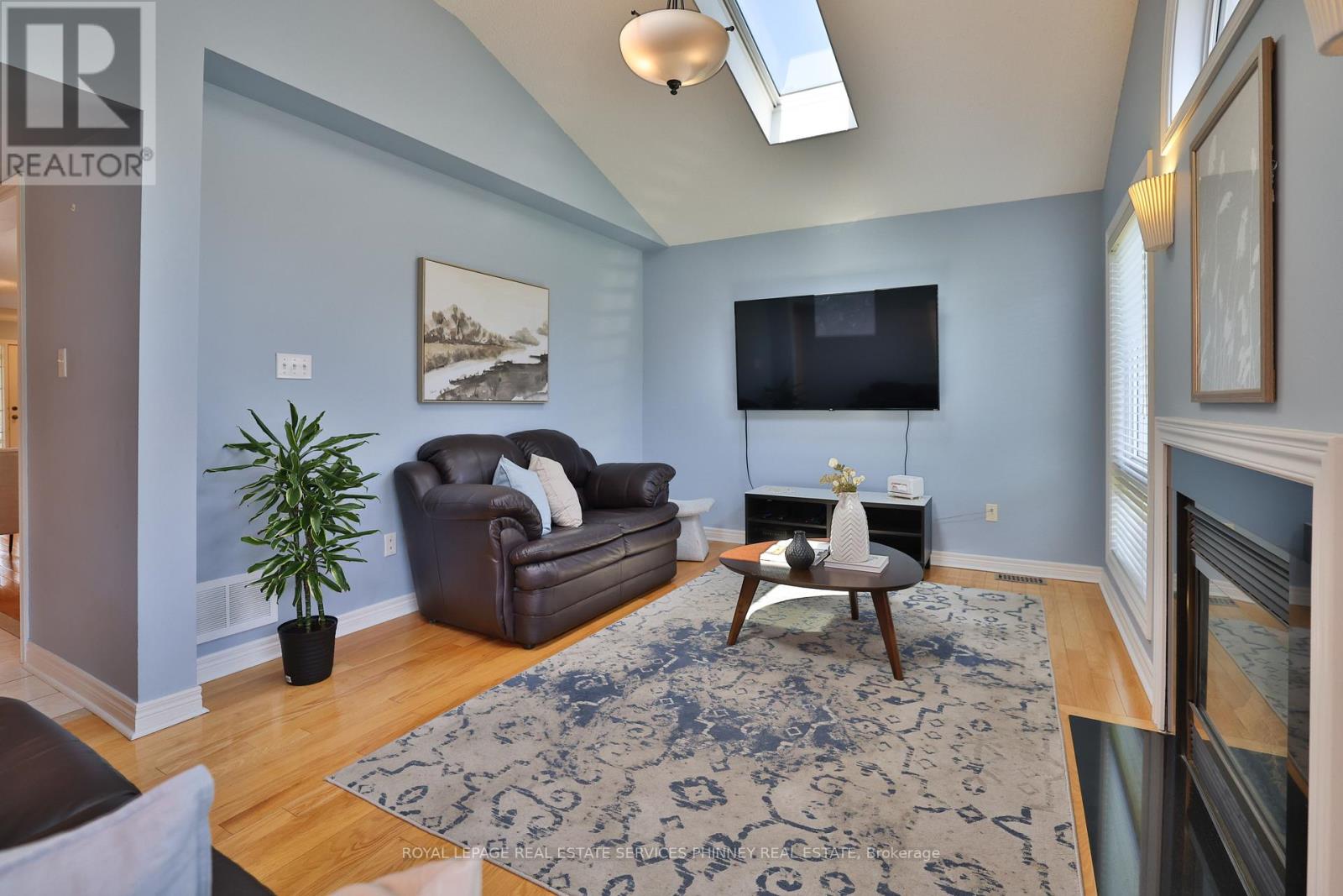 Fantastic family home offering a well-designed layout for family life. This property features a driveway accommodating four vehicles (which can be a rare find), along with a garage and convenient interior access to the home. The interior welcomes you with a bright, inviting atmosphere, highlighted by hardwood flooring throughout the formal living and dining areas-an ideal setting for both everyday living and entertaining. The cozy family room showcases hardwood floors, a gas fireplace, and a stunning vaulted ceiling with skylights, creating a warm and light-filled gathering space. The kitchen is thoughtfully designed with a spacious eat-in area, stainless steel gas stove and fridge, and walkout to a fully fenced backyard, complete with a natural gas hookup for the BBQ, patio and elegant awning-perfect for outdoor dining and summer enjoyment. Upstairs, the home offers four generously sized bedrooms plus a versatile den, ideal as a home office, study area, or additional lounge space. The primary suite features a spacious 5-piece ensuite and his-and-hers closets, providing both comfort and functionality. Enjoy peace of mind with the following updates: roof(2017), furnace and air conditioner (2017), water heater (2017). Ideally located in a highly sought-after, family-friendly neighbourhood, just minutes to parks, top-rated schools, the Churchill Meadows Community Centre, tennis courts, and a full range of everyday amenities including grocery stores, pharmacies, and restaurants (id:50787)