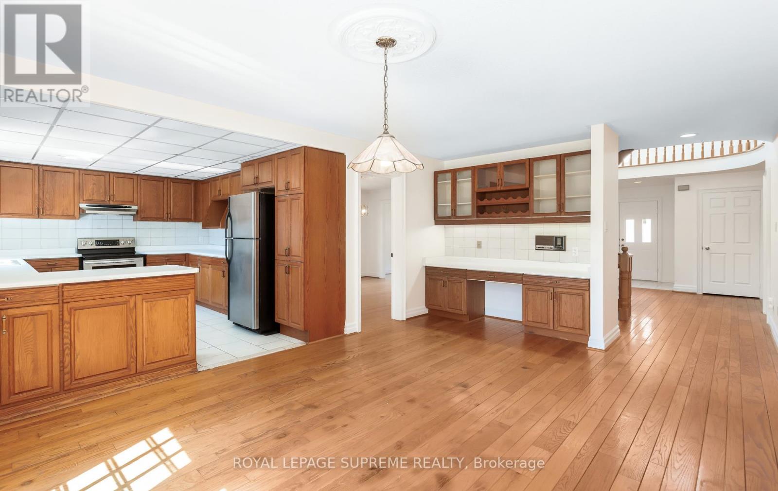 First time offered for sale, this exceptional large 2-storey residence is nestled in one of Etobicoke's most sought-after pockets. Offering approximately 3,300 sq ft above grade plus a fully finished basement, this home delivers the scale, layout, and setting today's buyers demand, an evolving street now defined by luxury custom homes and significant reinvestment. Live comfortably now, or transform into a stunning modern showpiece. A rare opportunity to step into a top-tier neighbourhood and make it your own. This home offers a highly functional layout with a blend of parquet and hardwood flooring , adding warmth and character. A skylight from the second floor fills the main foyer with natural light, creating a bright and inviting first impression. The main level features high ceilings , a combined living and dining area with large picture windows, and a spacious kitchen with ample counter space and walk-out to the deck and backyard. The family room is a standout, anchored by a beautiful fireplace and overlooking a private, treed backyard, an ideal setting to unwind or entertain. Upstairs, the spacious primary retreat includes a walk-in closet and a 4-piece ensuite. The finished walk-out basement, with impressive high ceilings and large windows, opens directly to the backyard and adds exceptional additional living space, perfect for entertaining, multigenerational living, or future customization. Ideally located steps to Glen Park, offering tennis courts, playgrounds, and vibrant year-round community events. Situated in a highly sought-after neighbourhood, just minutes to top-rated schools, transit, major highways, Toronto Pearson Airport, parks, and golf courses, everything for daily living, commuting, and recreation is effortlessly within reach. (id:50787)
