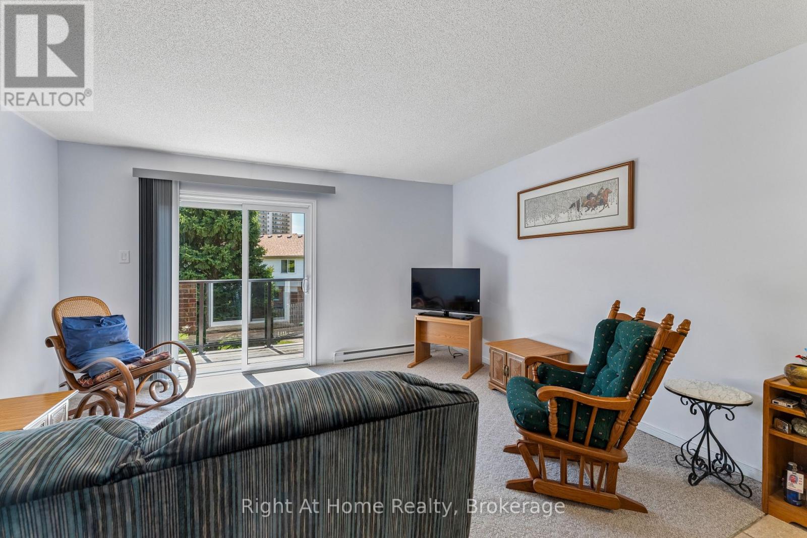 Welcome to this beautifully updated third-floor condo, offering stylish, move-in-ready living in an exceptionally convenient location. This inviting 2-bedroom unit is thoughtfully designed and ready for you to enjoy. Bright and airy, the 650 sq ft layout features a spacious living area and a charming peek-a-boo kitchen that creates an open, connected feel-perfect for both everyday living and entertaining. Step out onto your private third-floor balcony, complete with sleek glass railings and a convenient storage closet-an ideal space to relax and unwind. The unit includes a dedicated parking space, and condo fees are an affordable $307 per month. Enjoy unbeatable convenience with public transit right outside your door and a short walk to Fairview Park Mall, offering a wide range of shopping, dining, and access to Grand River Transit and LRT services. Backing onto Greenfield Park and just minutes from Highway 401, this location makes commuting and daily errands effortless. With modern updates, low fees, and exceptional accessibility, this charming condo is a fantastic opportunity. Book your private showing today. (id:50787)