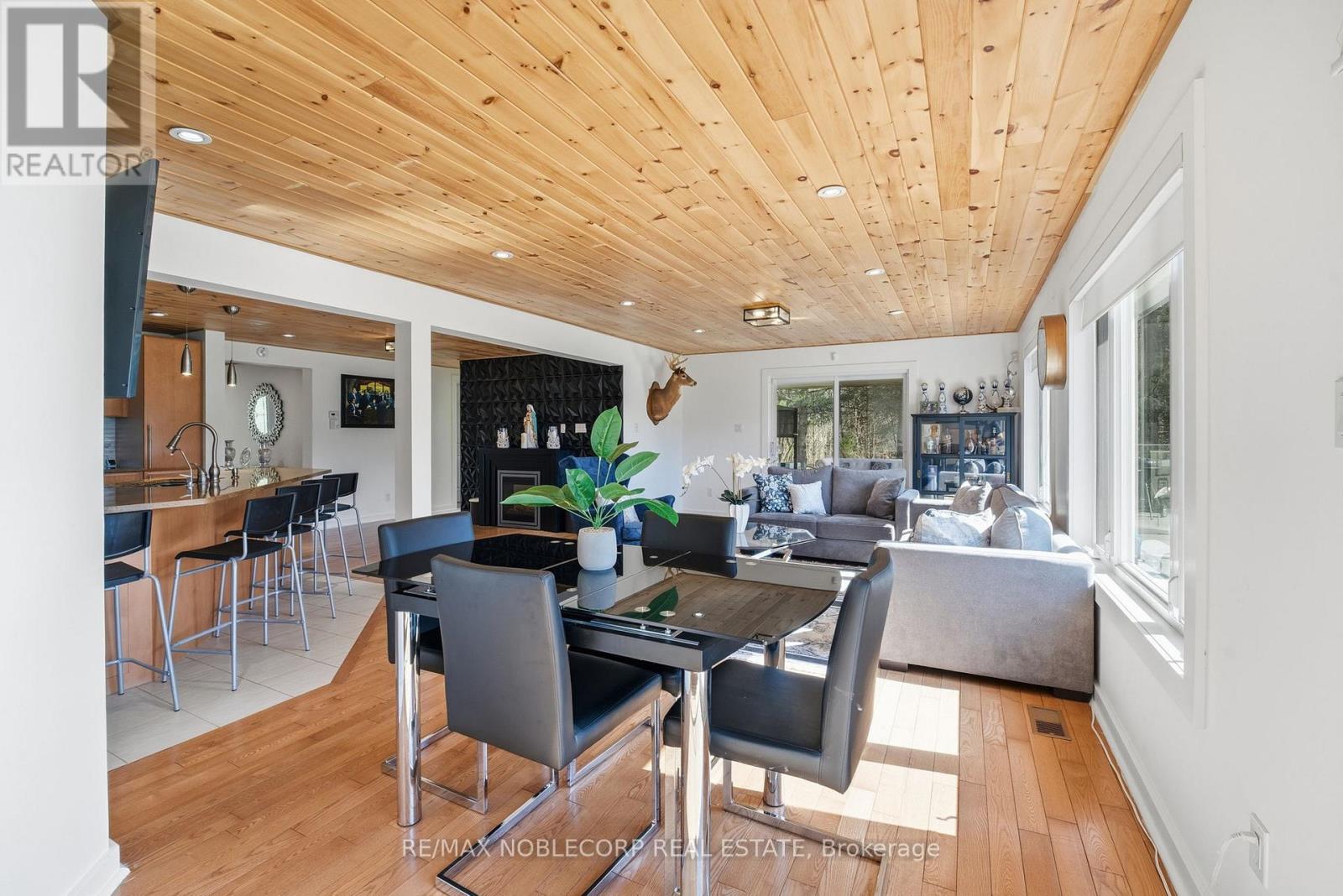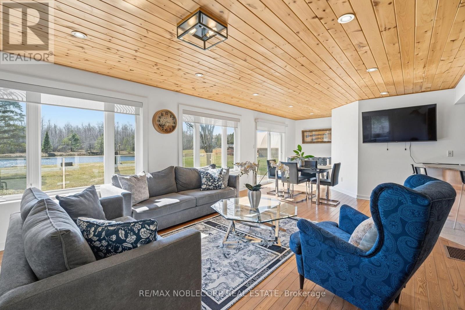 Discover your own private escape with this exceptional 59-acre estate, where nature, privacy, and lifestyle come together seamlessly. This charming bungalow offers 3 spacious bedrooms on the main level with an additional bedroom in the finished basement, providing flexibility for families, guests, or extended living. Inside, the home has been thoughtfully updated with a modern kitchen, rich hardwood flooring, custom cedar wood finishes, and elegant crown moulding. Large windows flood the space with natural light while showcasing breathtaking views of the surrounding landscape. A stunning glass sunroom adds the perfect year round retreat to relax and take in the peaceful setting. Step outside and experience everything this property has to offer. Enjoy quiet mornings Step outside and experience everything this property has to offer. Enjoy quiet mornings overlooking a serene pond, entertain around the custom interlock firepit, or explore your own private trail system through a beautiful mix of hardwood and softwood forest. The property private trail system through a beautiful mix of hardwood and softwood forest. The property also features a garage, a massive 40 by 70 outbuilding, and a separate paved driveway ideal for boats, equipment, or recreational vehicles. Over $150,000 has been invested into upgrades and improvements, including a full camera security system for both the home and barn, as well as a brand new 200 amp electrical panel. For outdoor enthusiasts and hunters, the property is equipped with 7 custom built hunting stands and is home to abundant wildlife including deer and turkey, with photo evidence showcasing the land's potential. Conveniently located just 1 minute from a main highway, 5 minutes from Weber's Charcoal Grilled Burgers, minutes to local schools, and approximately 1 hour from Toronto, this property offers the perfect balance of privacy and accessibility. The tractor currently stored in the barn is available for purchase separately. (id:50787)