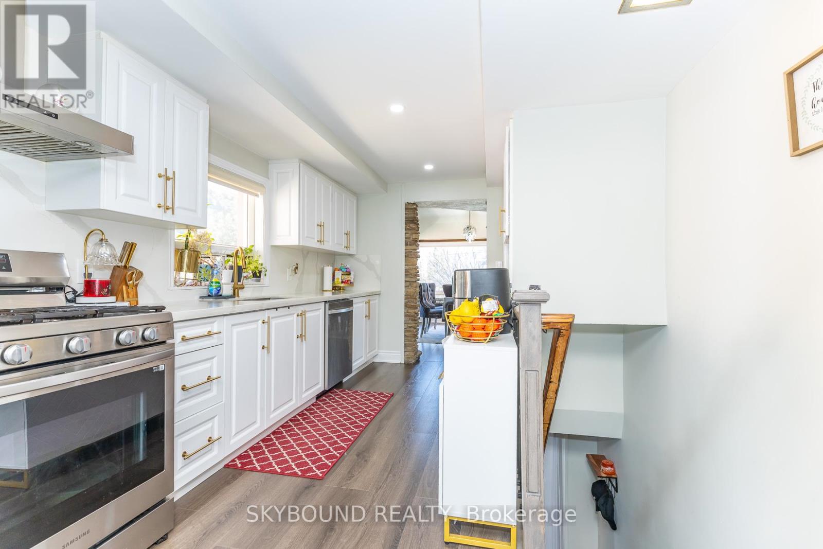 Welcome to this charming 3 bedrooms, 2 bathrooms fully renovated bungalow home with a big lot of 50x150 feet. Nestled in a sought-after, family friendly quiet area. This beautiful home offers plenty of natural light, open-concept layout. Combined living & dining room are perfect for both entertaining & family time. Kitchen provides ample space for meal preparation and entertaining with friends and family. Step outside the patio doors onto the deck and discover a spacious yard, offering endless possibilities for outdoor activities and relaxation. Finished basement includes a large rec room, laundry room, washroom & access to garage. Aluminum Roof (2018) w/ transferable 50 year warranty, Finished Basement(2016), Back Sliding Door (2022), Garage Door (2016), Main Bathroom(2022), Hot Tub. New kitchen, flooring, pot lights (2024), Freshly painted (2024), Outdoor landscaping, driveway (2025). (id:50787)